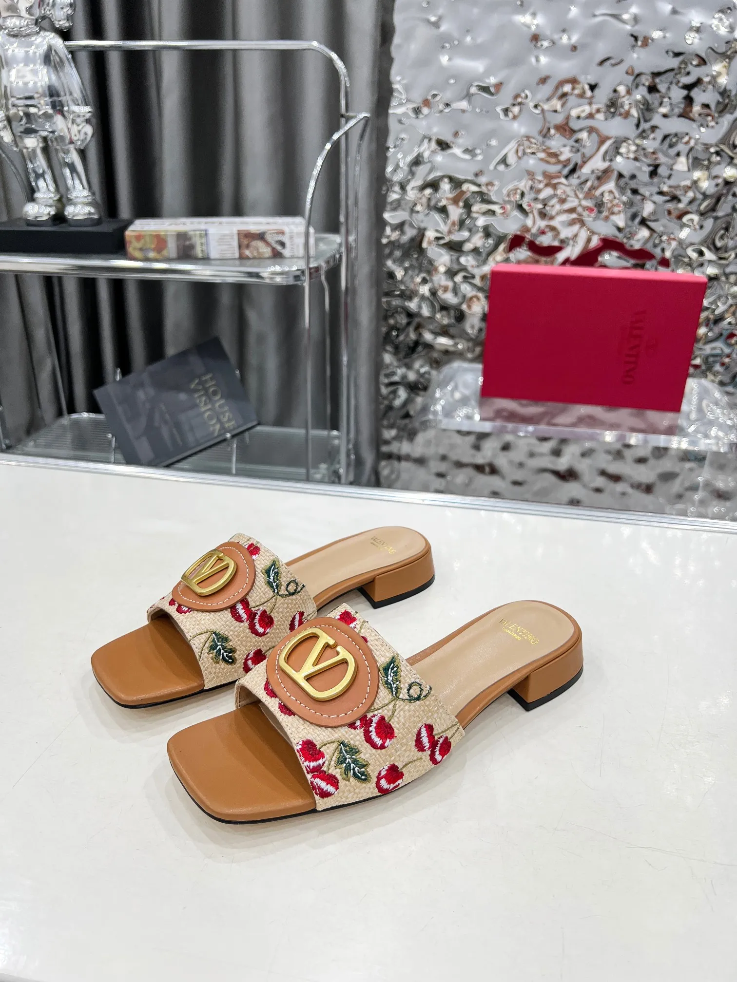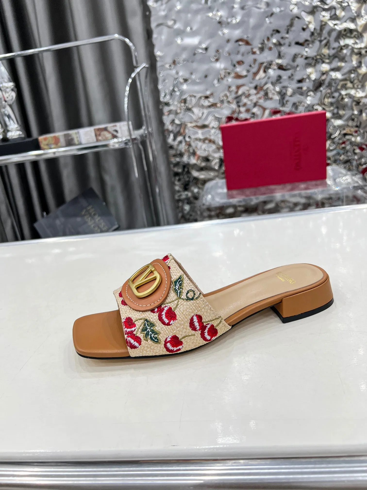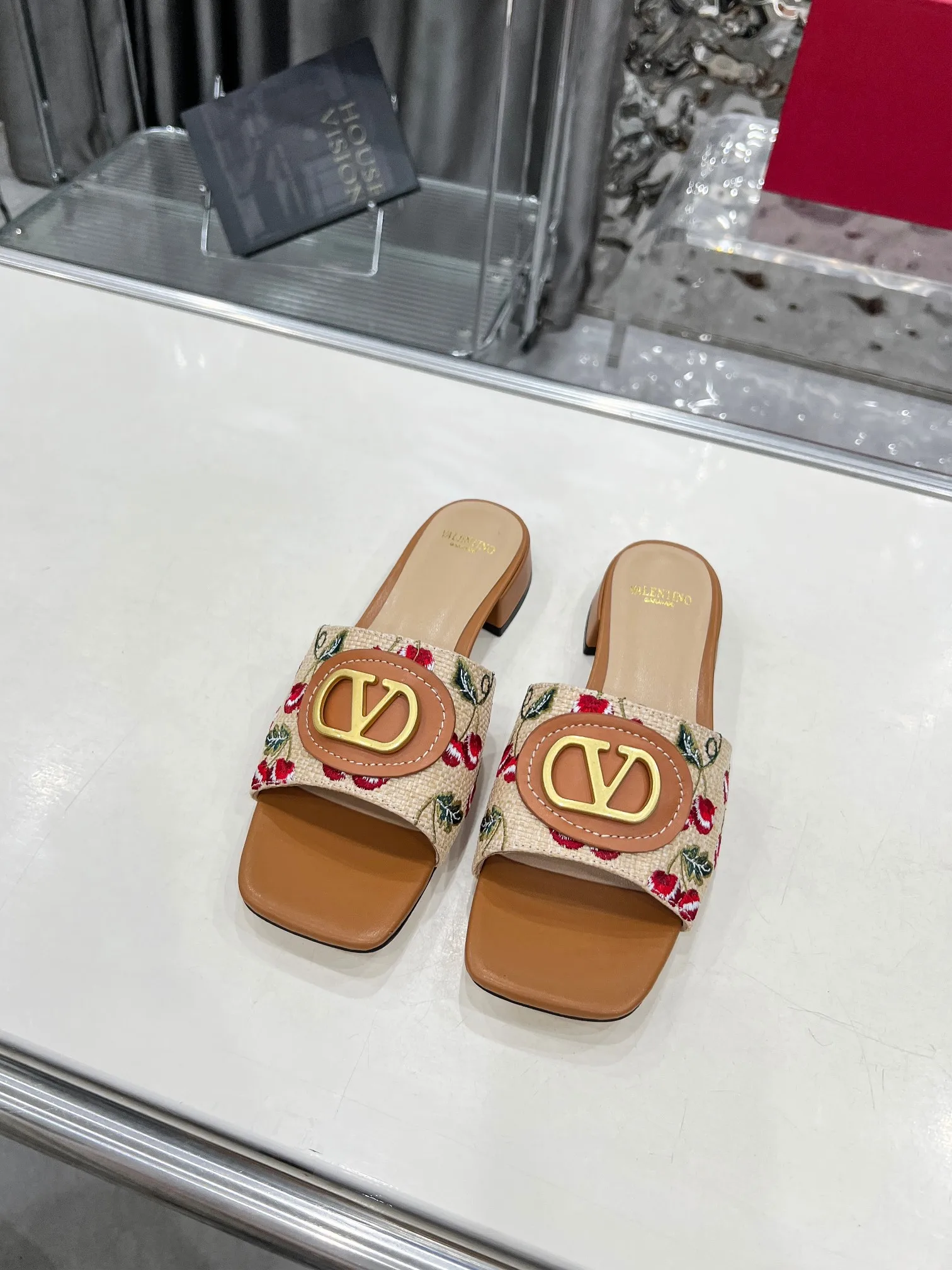 华伦天奴 2厘米粗跟新款凉拖鞋