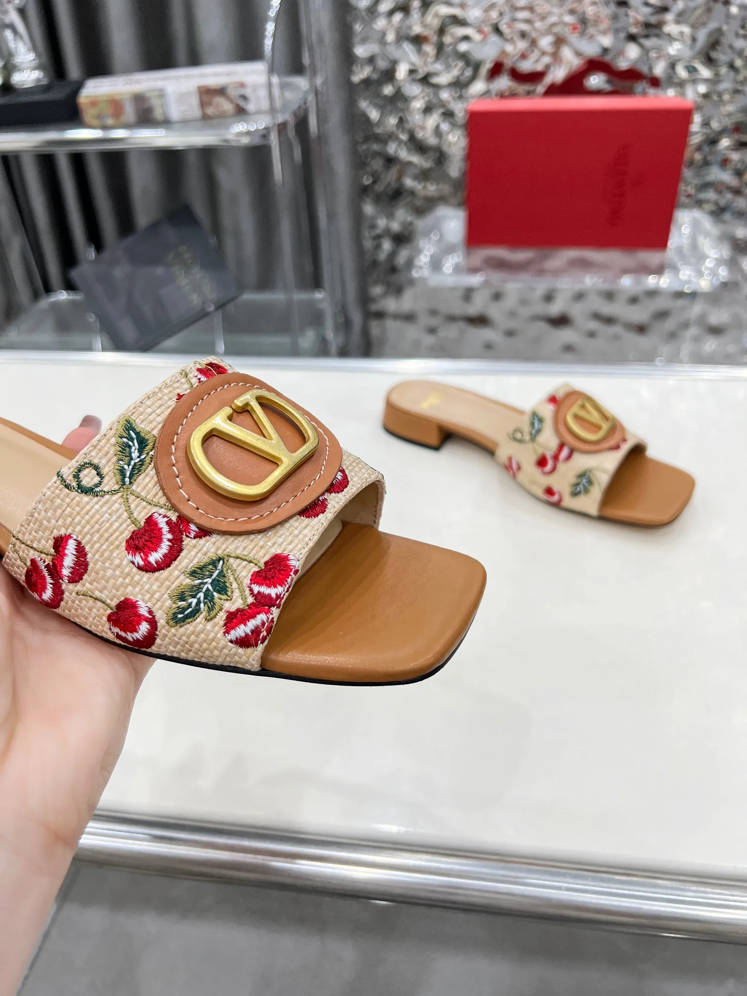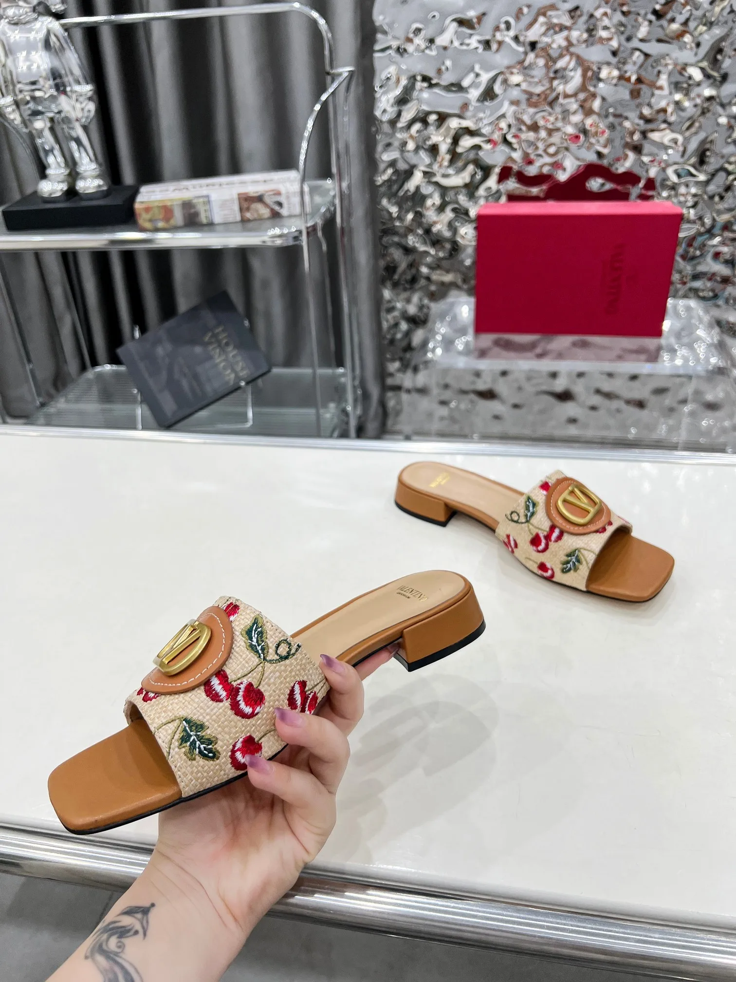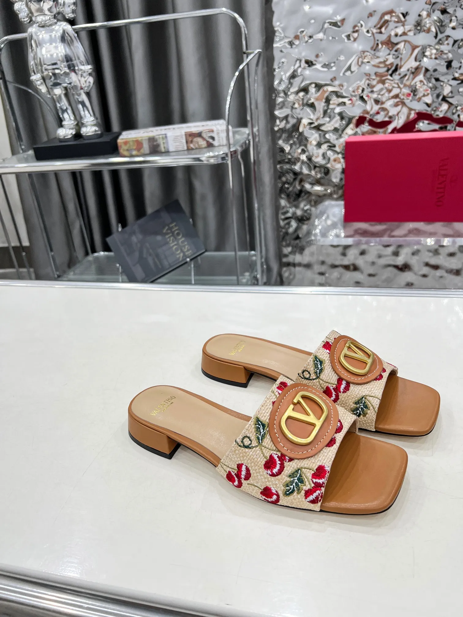 华伦天奴 2厘米粗跟新款凉拖鞋