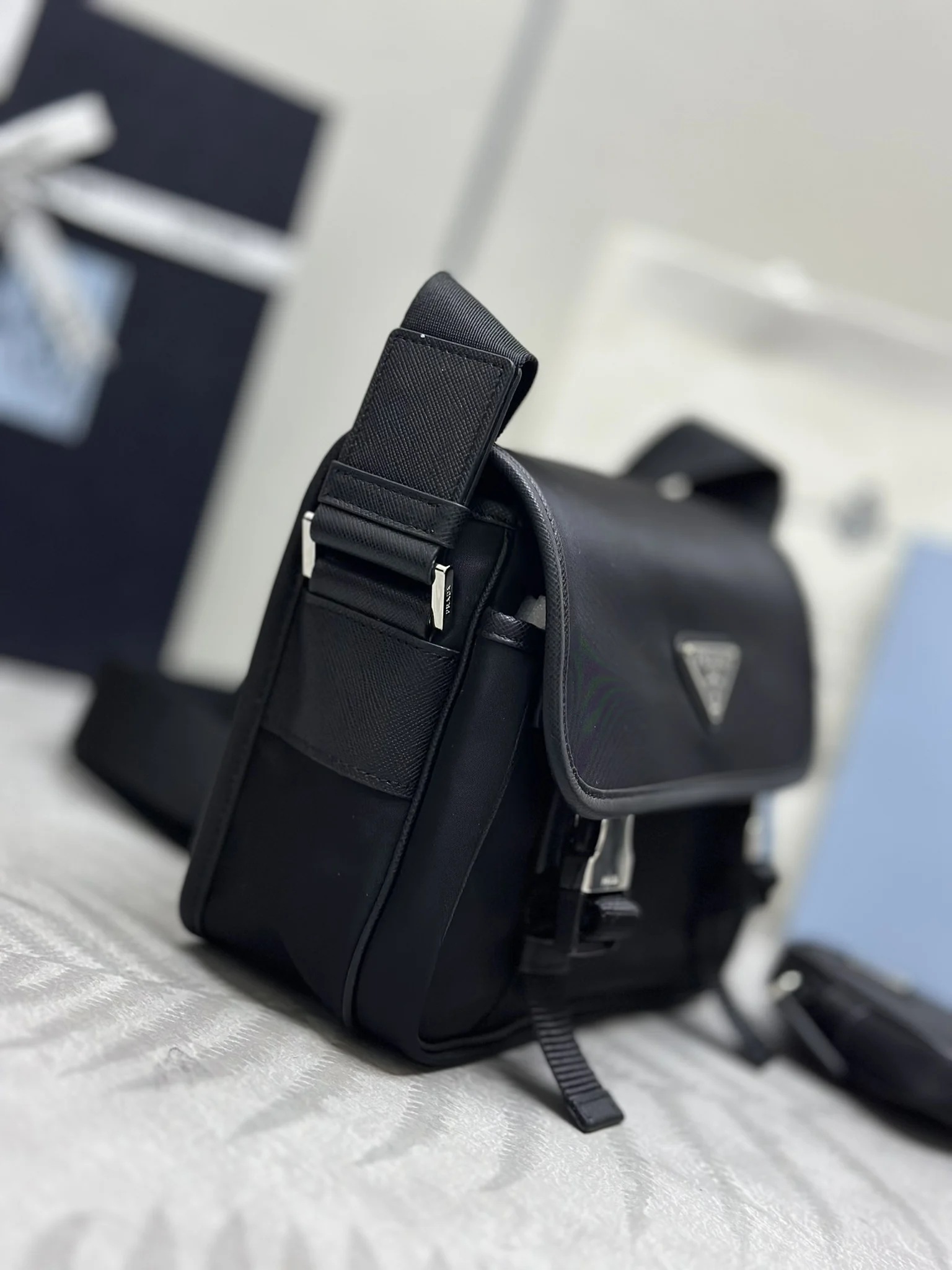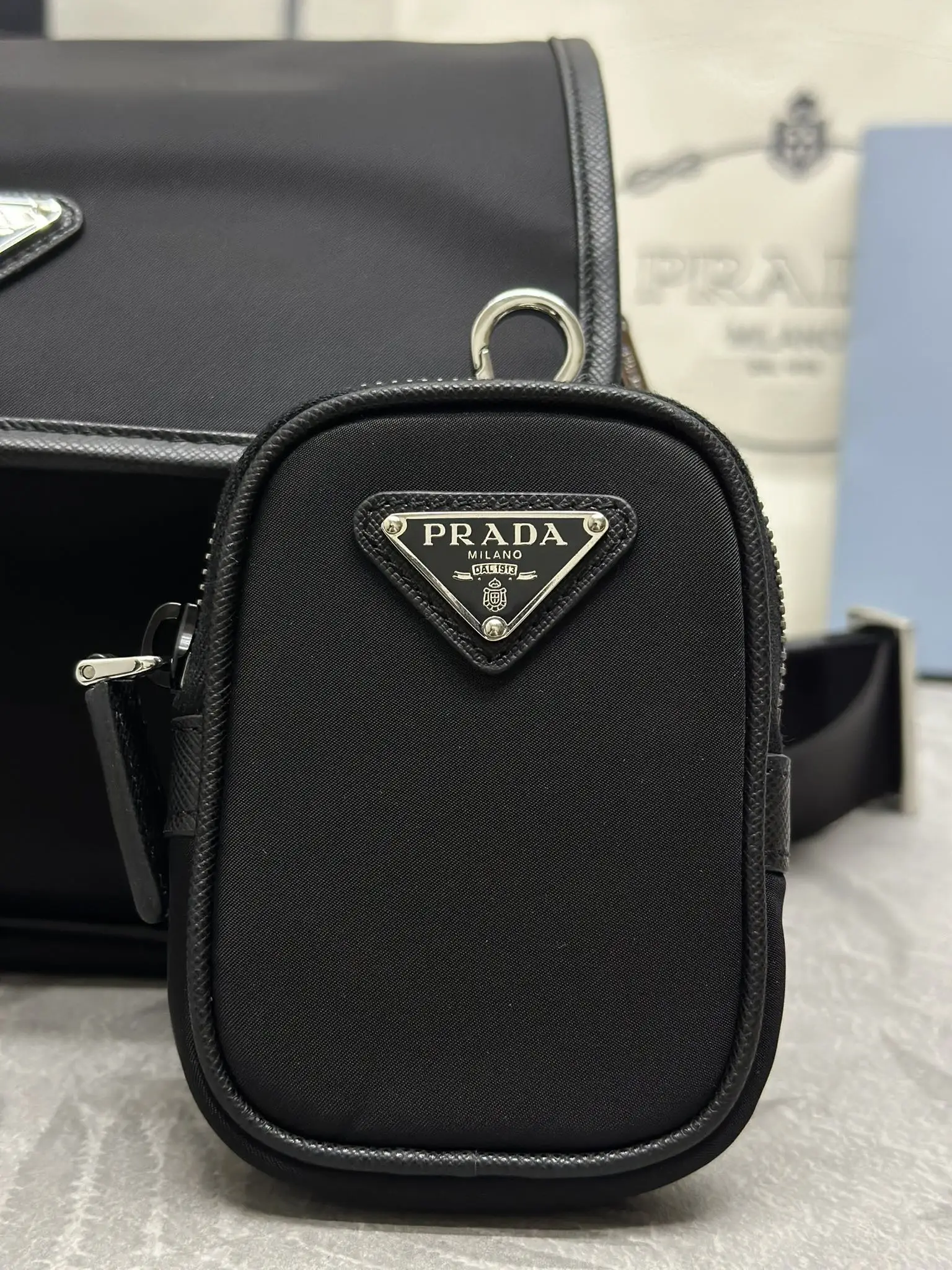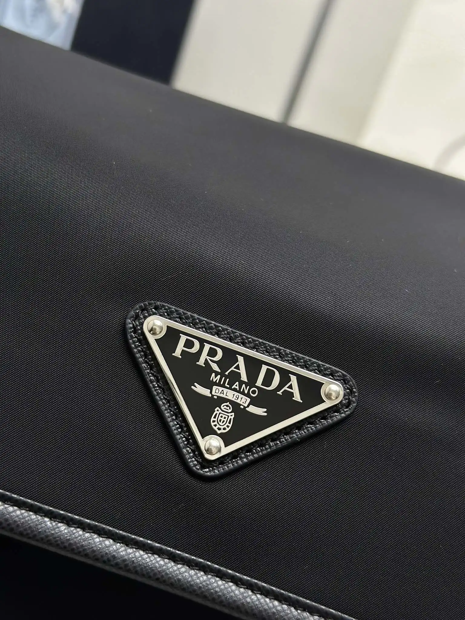 极具代表性的尼龙三角标素 简单的最新三角标装饰 而且不压缩空间 超能装同时肩带还挂着小挂饰小包 也可以把它挂在裤头当饰品呼应整体低调奢华又百搭 通勤包型可休闲可酷背起来又实用又时尚,超级有品味男女共用款