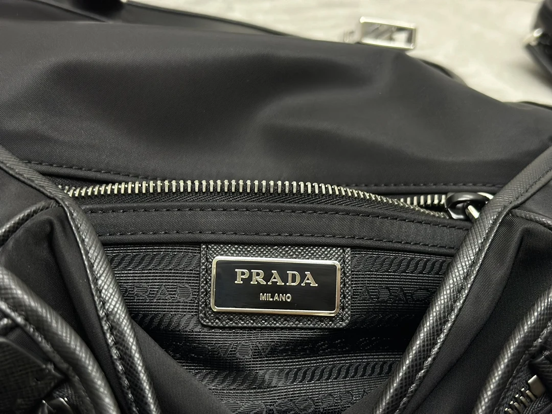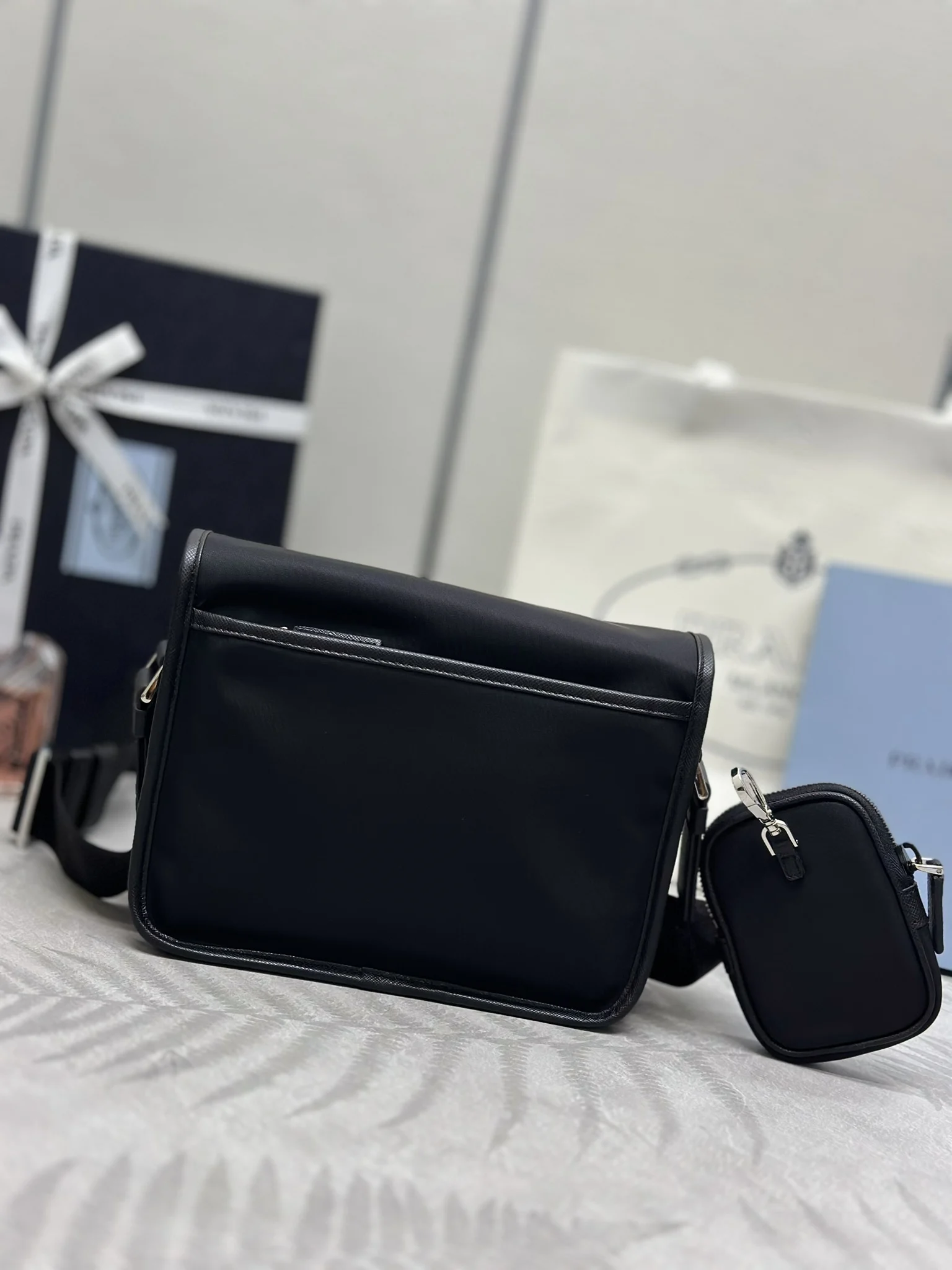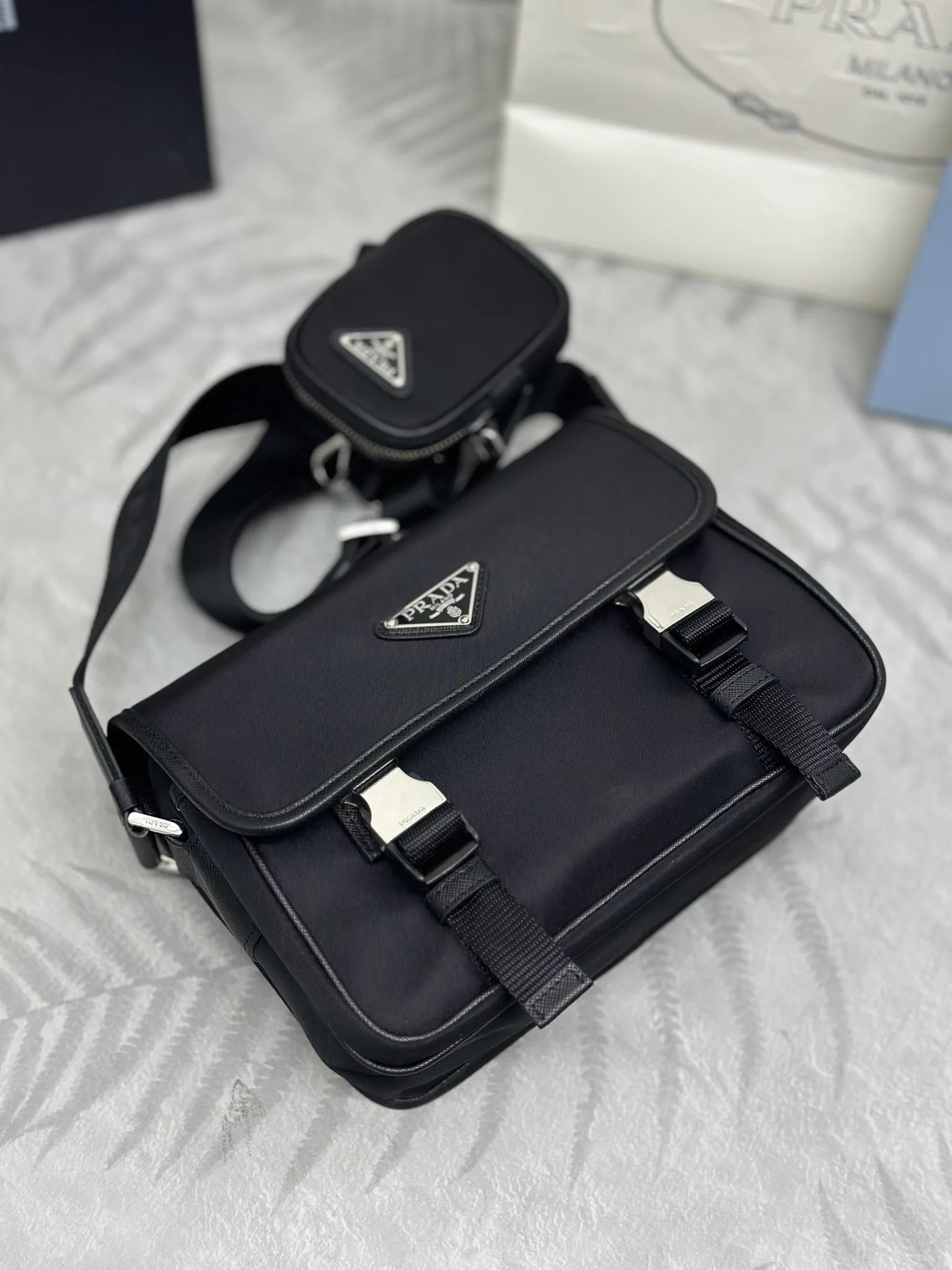 极具代表性的尼龙三角标素 简单的最新三角标装饰 而且不压缩空间 超能装同时肩带还挂着小挂饰小包 也可以把它挂在裤头当饰品呼应整体低调奢华又百搭 通勤包型可休闲可酷背起来又实用又时尚,超级有品味男女共用款