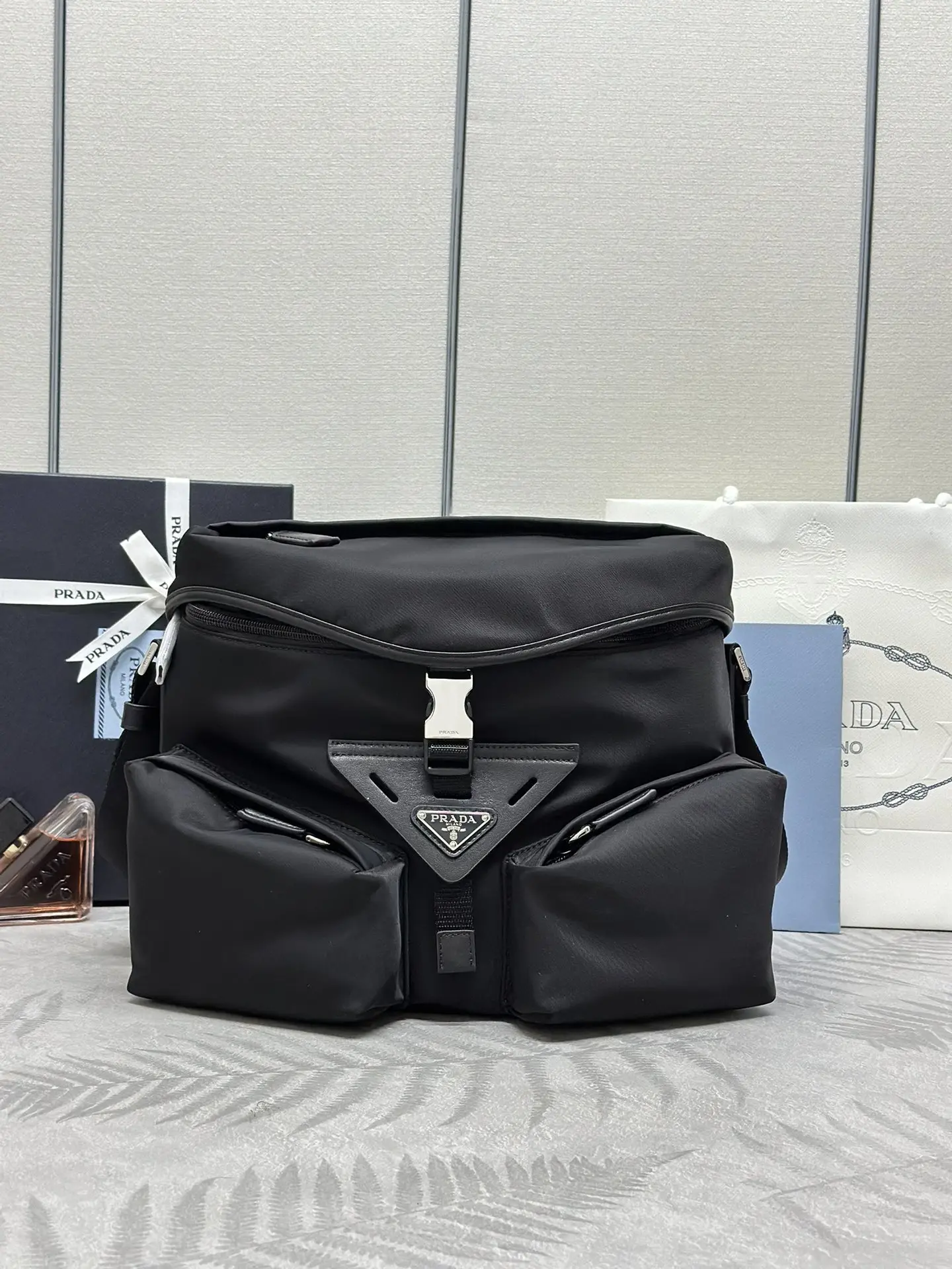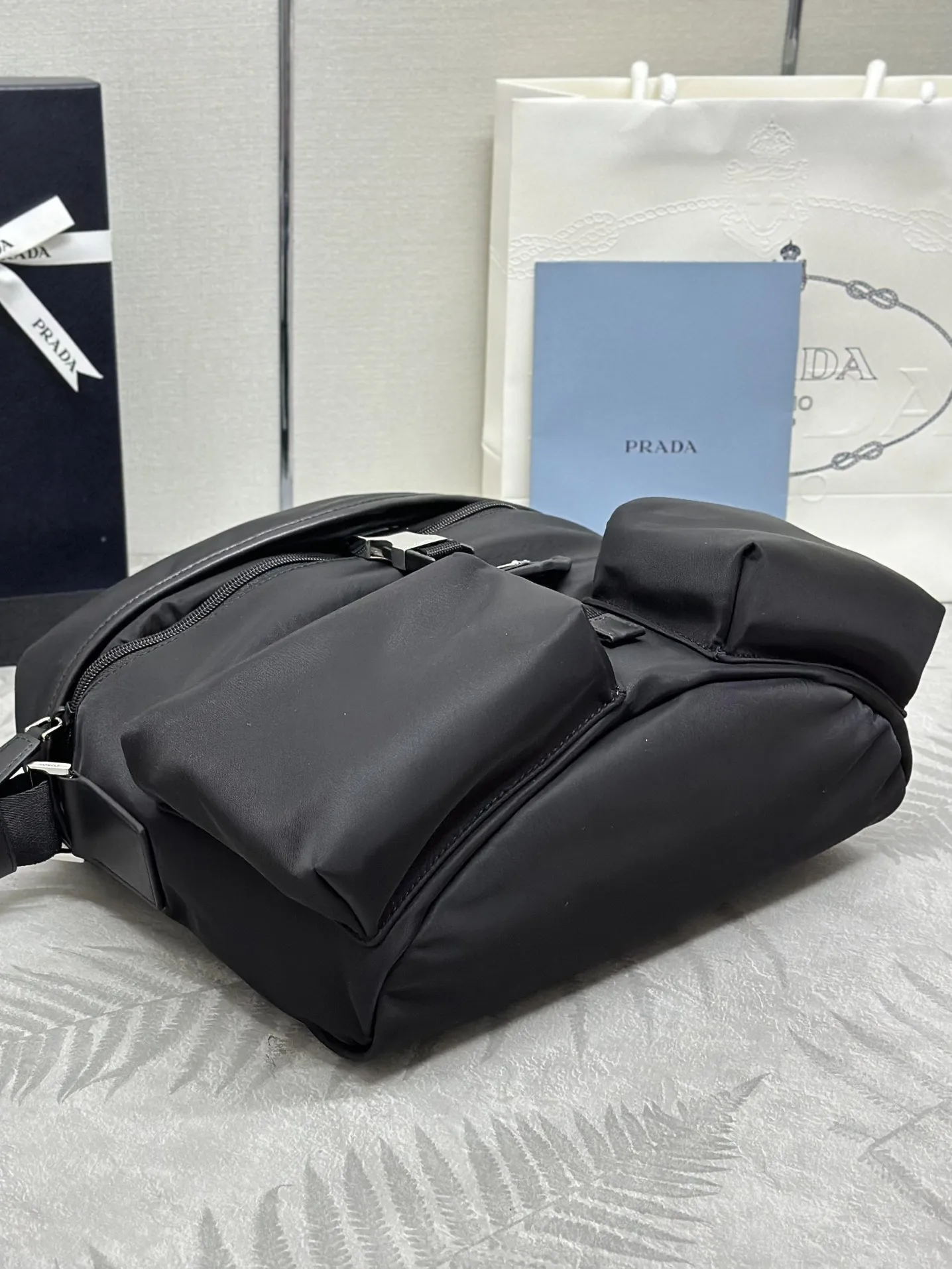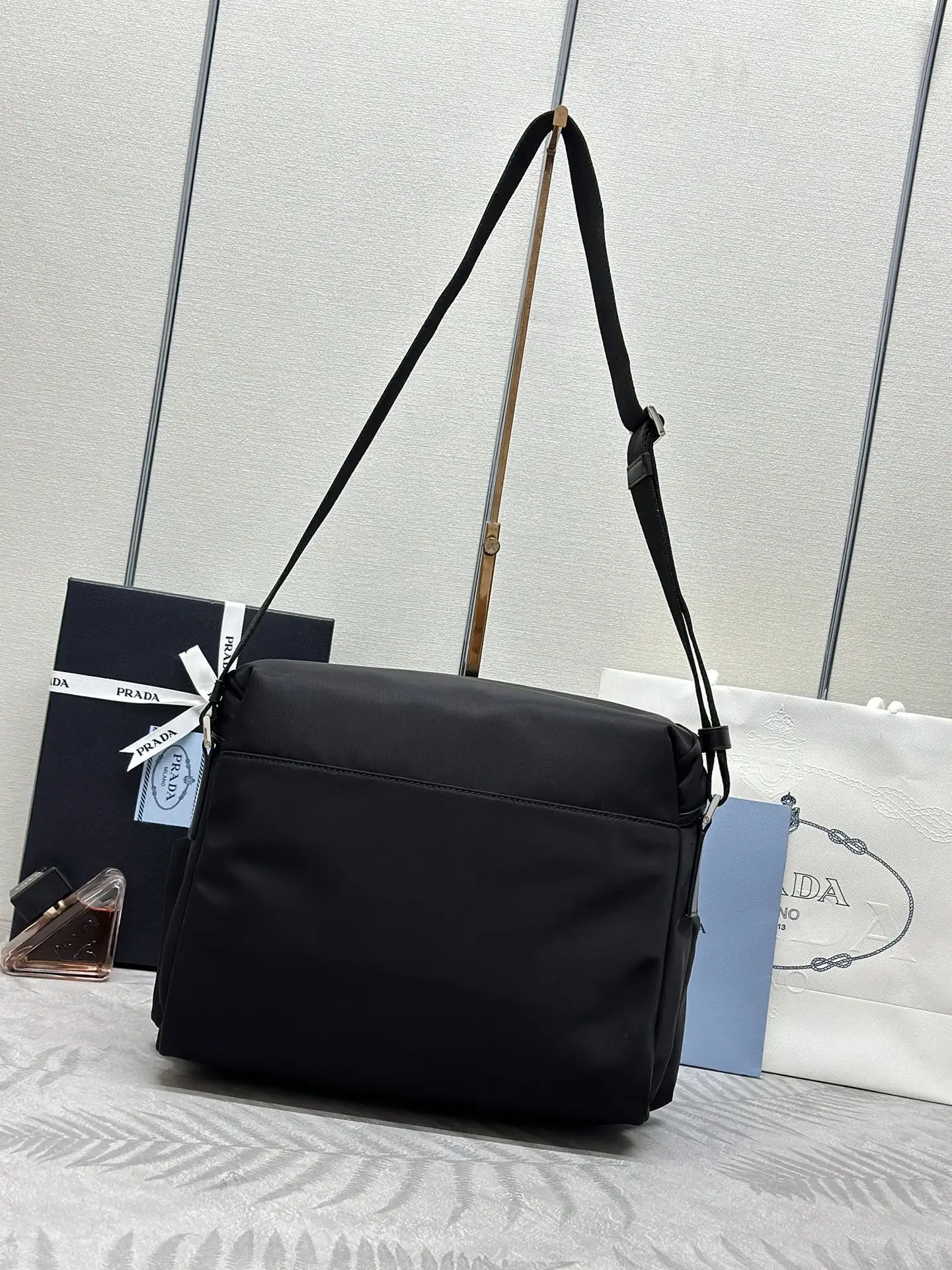 这款斜跨包采用进口尼龙面料 顶级五金 前幅2个拉链口袋设计 翻盖插扣 配有可调节的长肩带 容量空间大 格层多多 又实用又大气 赶紧入手吧 又是一款永不过时爆款