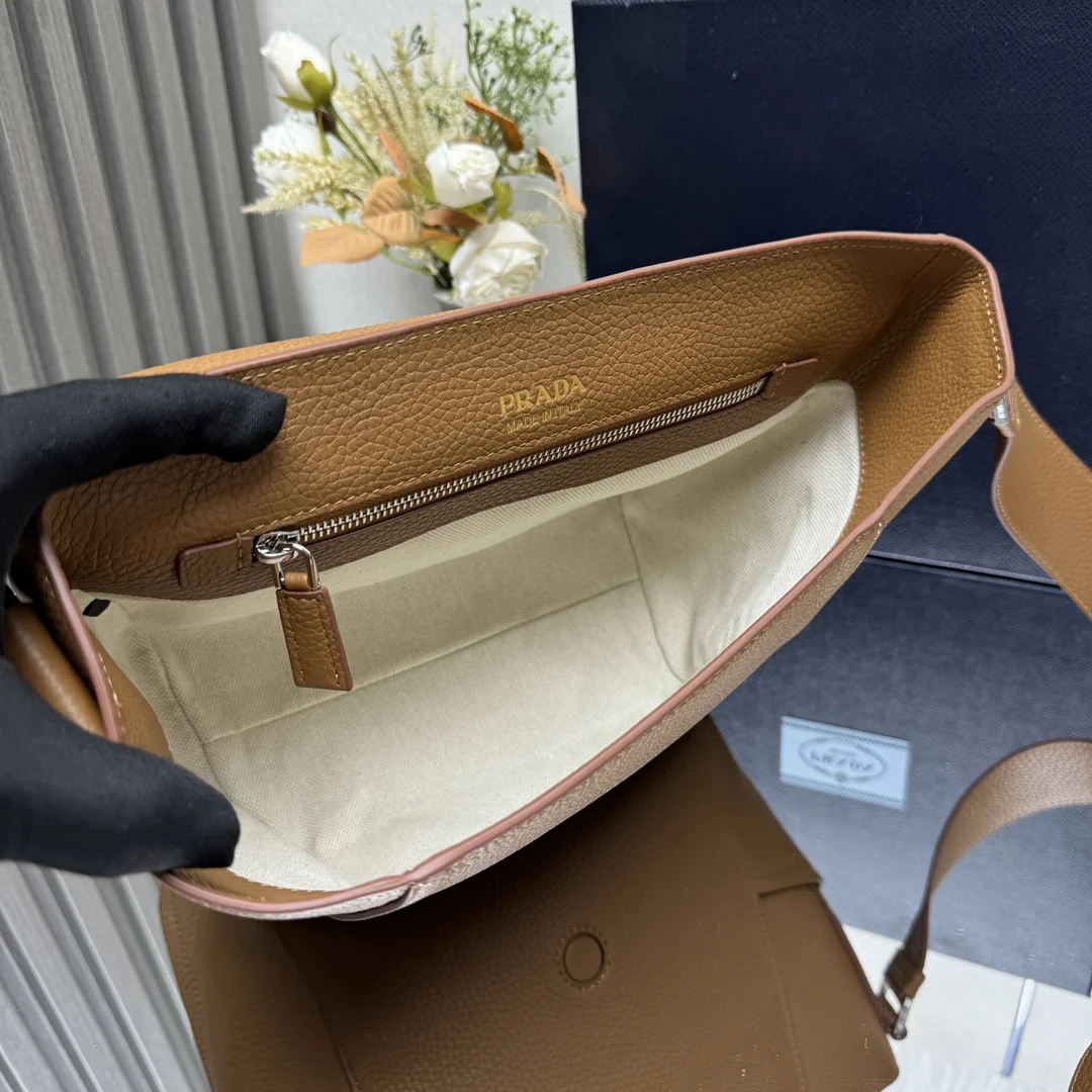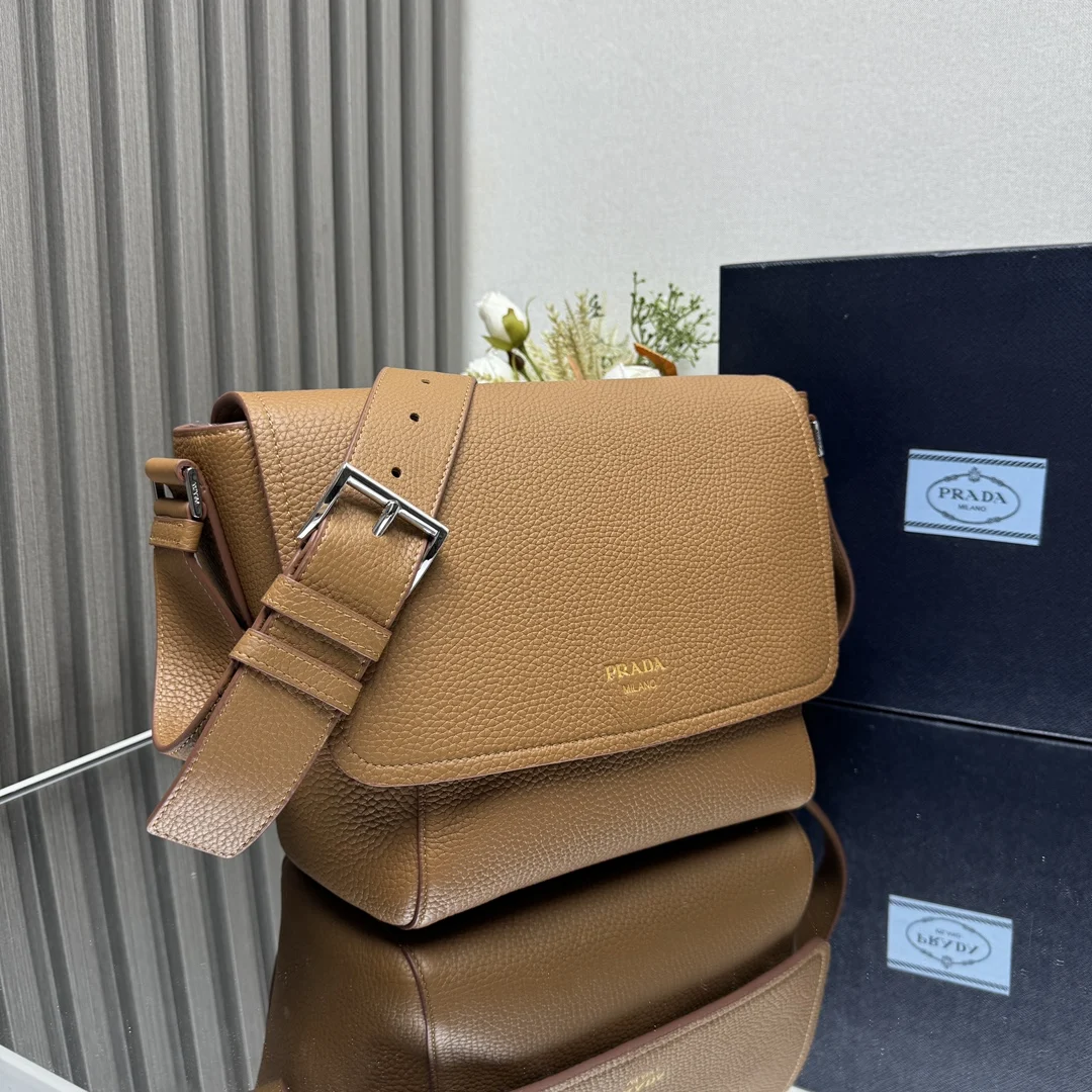 顶级原单 新款邮差包2VD069这款皮革单肩包采用进口小牛皮 彰显时尚休闲格调 精致小巧 翻盖廓形搭配可调节肩带 饰有金属五金配件和字母徽标 翻盖设计 上身效果非常酷 宝宝们 赶紧入手吧尺寸 长22x高22x底12cm