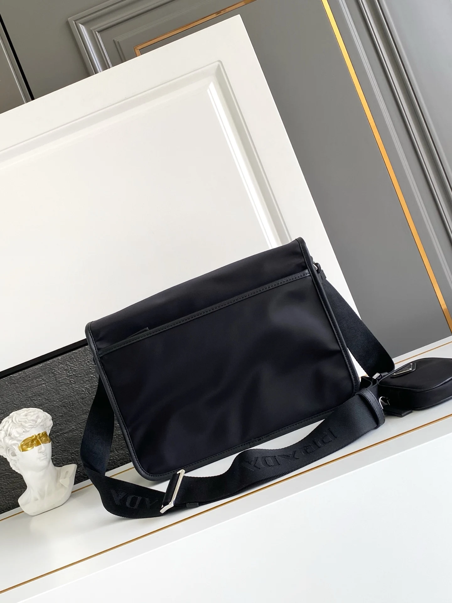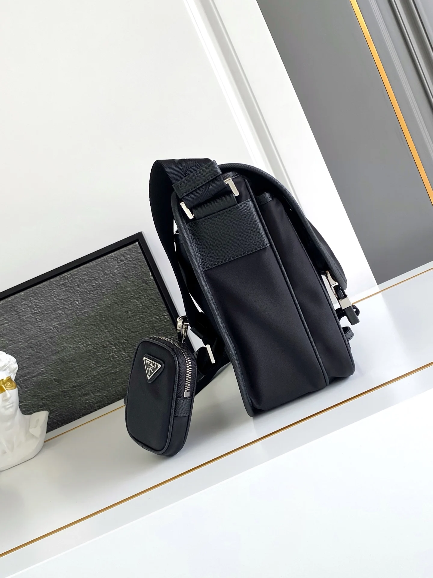 普拉达 2VD768 尼龙三角标邮差包 男士斜挎包