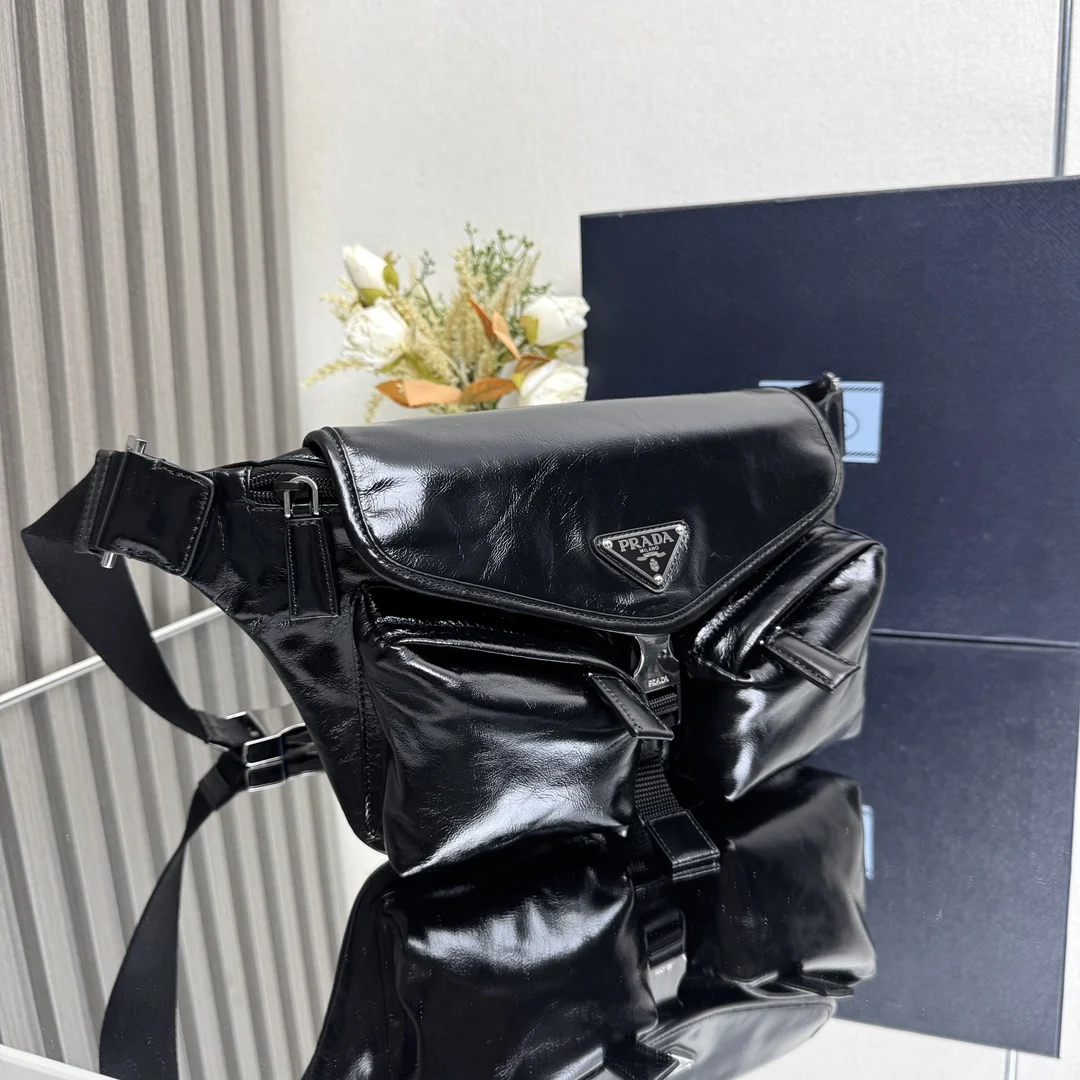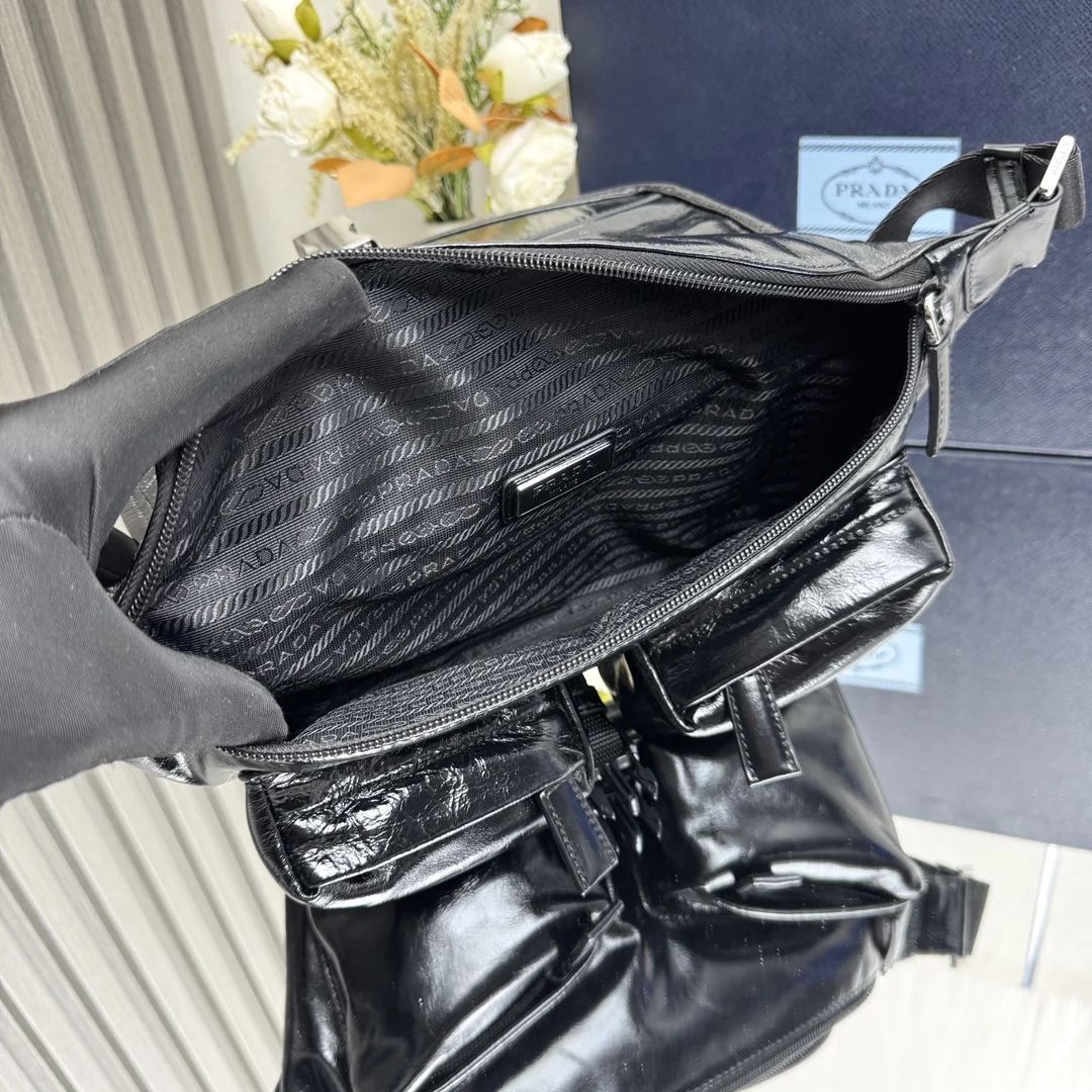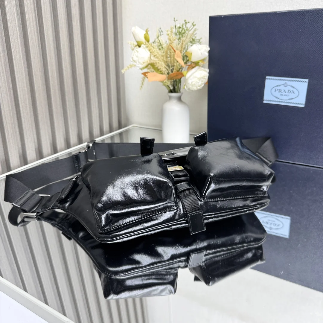 顶级原单 新款2VH174油蜡皮单肩包这款皮革单肩包采用现代几何线条设计 充满百搭时尚魅力 以柔软皮革呈现小巧款型 工装风口袋和侧插扣等细节兼具精致风范与功能性 可调节肩带方便斜挎 标志性涂珐琅三角形金属徽标彰显经典格调 赶紧入手吧尺寸 长24x高18x底5.5cm
