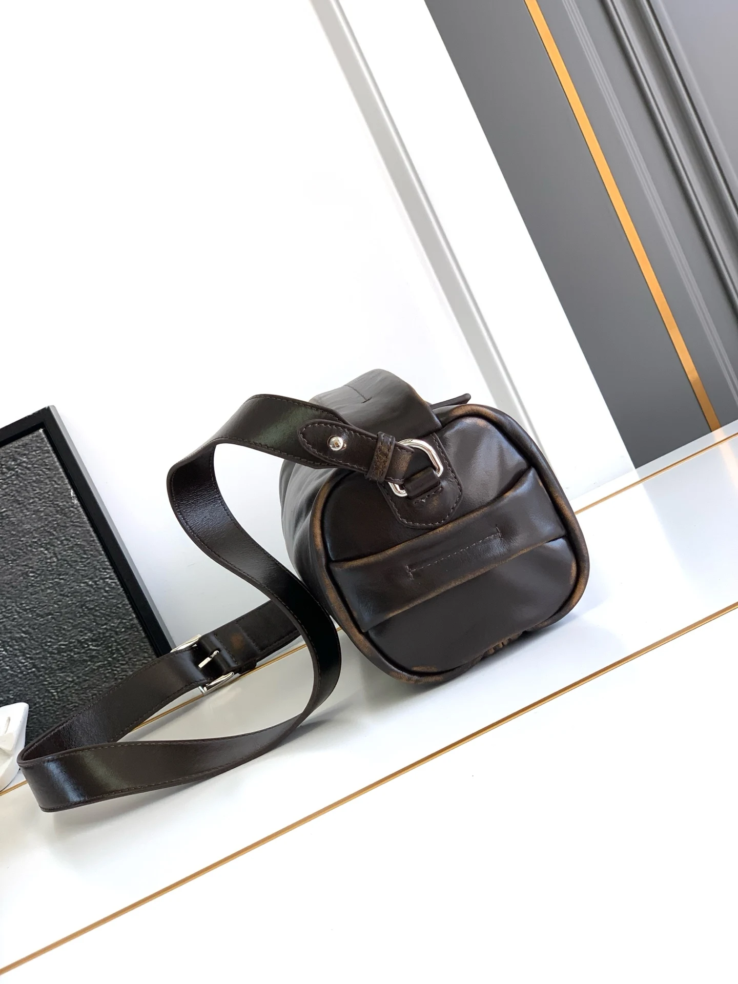 新款波士顿仿旧皮這款波士顿手袋時尚小巧 設計靈感取自復古設計及細節 納帕軟皮採用仿舊效果 使配飾呈現柔軟獨特外型 更綴以金屬字母標誌 配有一条可拆卸长肩带 容量空间大 上身效果轻便实用 宝宝们 赶紧入手吧
