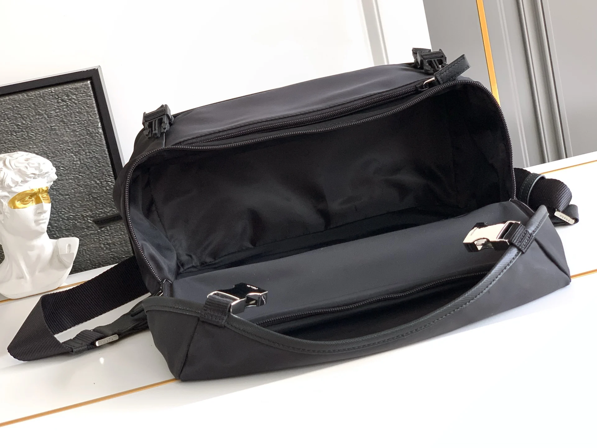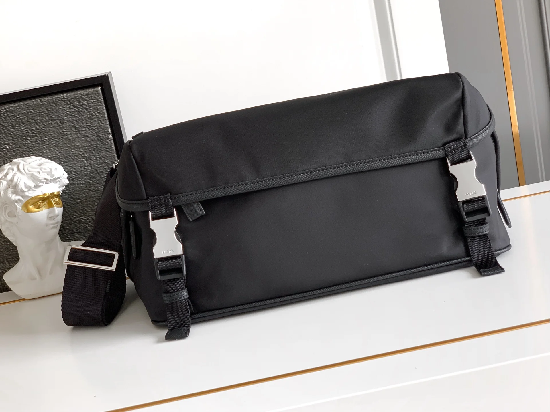 这款翻盖式单肩包采用尼龙和Saffiano皮革等标志性的P家材质制作 单肩包配有内部和外部口袋 并饰有三角形金属徽标 兼具功能性与品牌格调 上身效果非常酷 简约大气赶紧入手吧