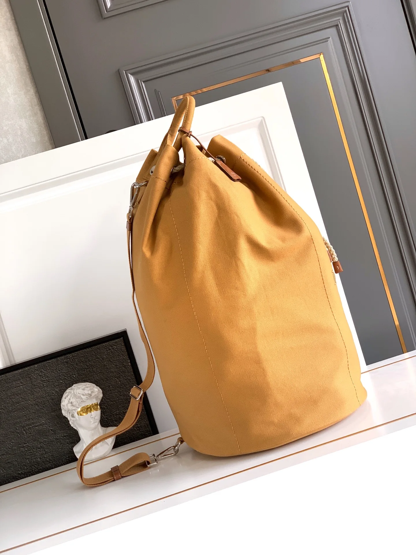 这款抽绳旅行袋诠释轻盈运动风尚 搭配条纹印花 汲取航海风格灵感 添缀可调节可拆卸肩带与皮革饰边 同色字母徽标刺绣注入独特经典格调 抽绳袋口设计 上身效果非常时尚有范 这是一款自古以来最新最潮旅行包 容易空间大 赶紧入手吧