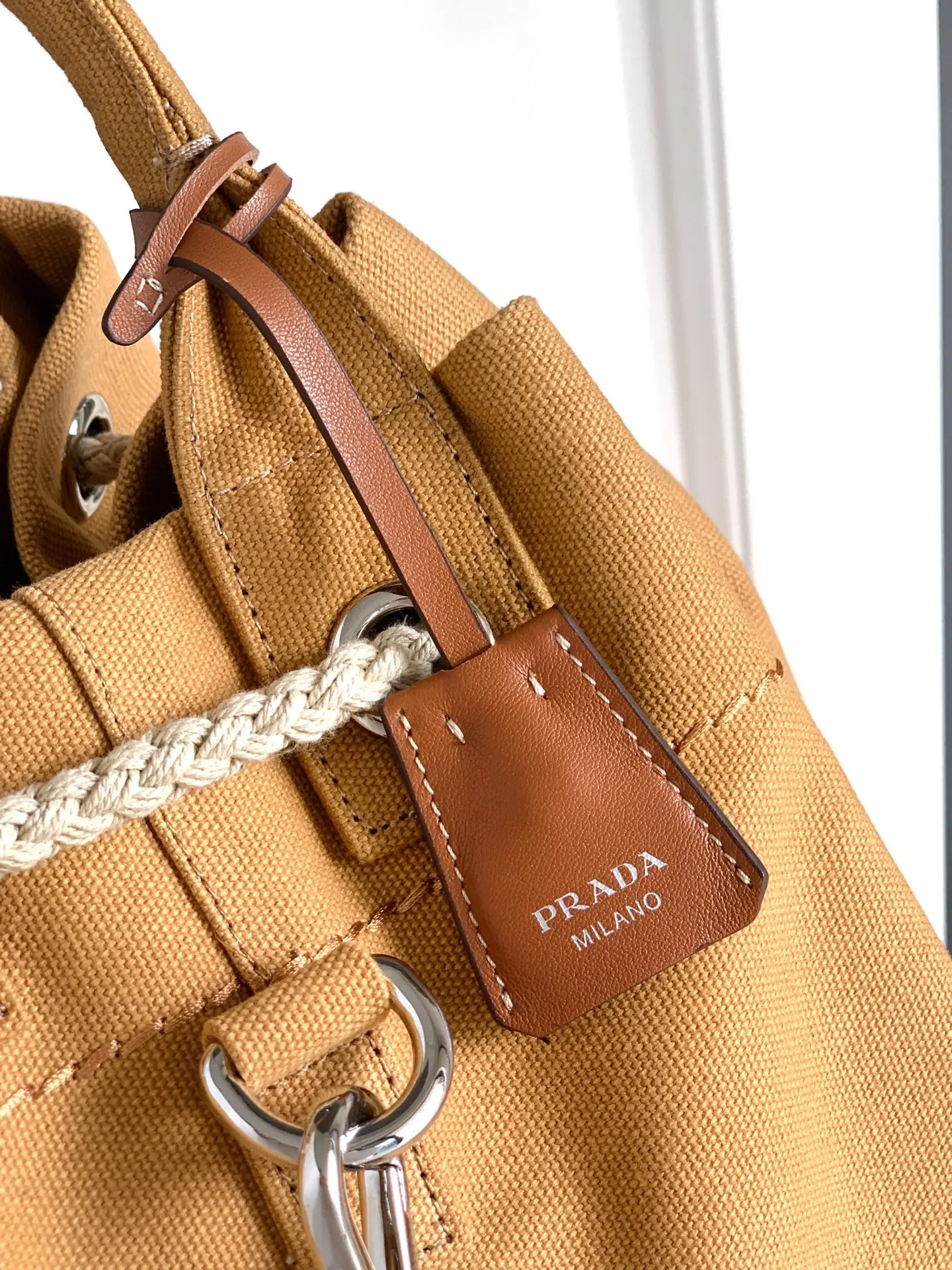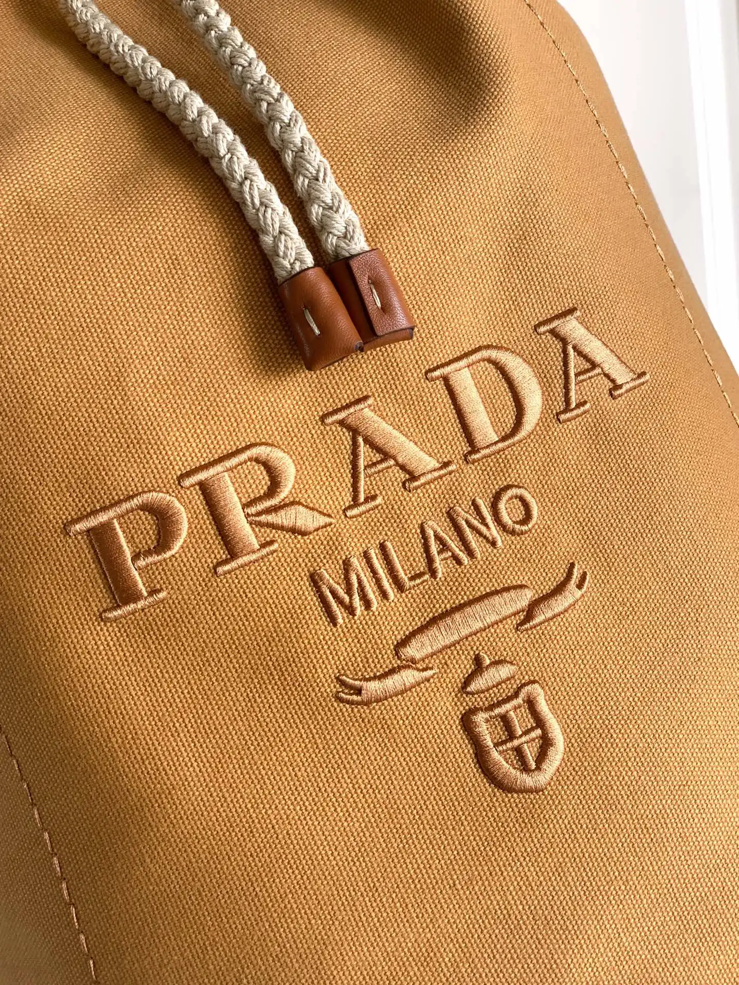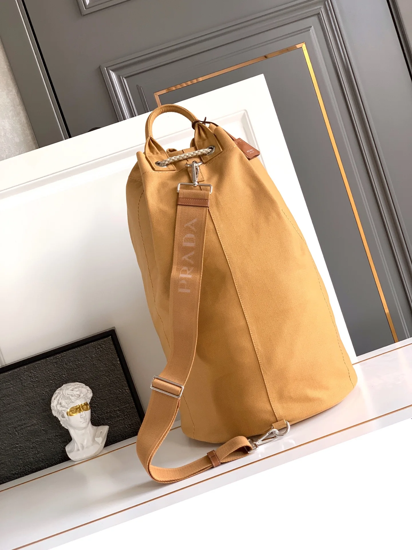 普拉达 2VY011 条纹印花抽绳旅行袋 旅行包