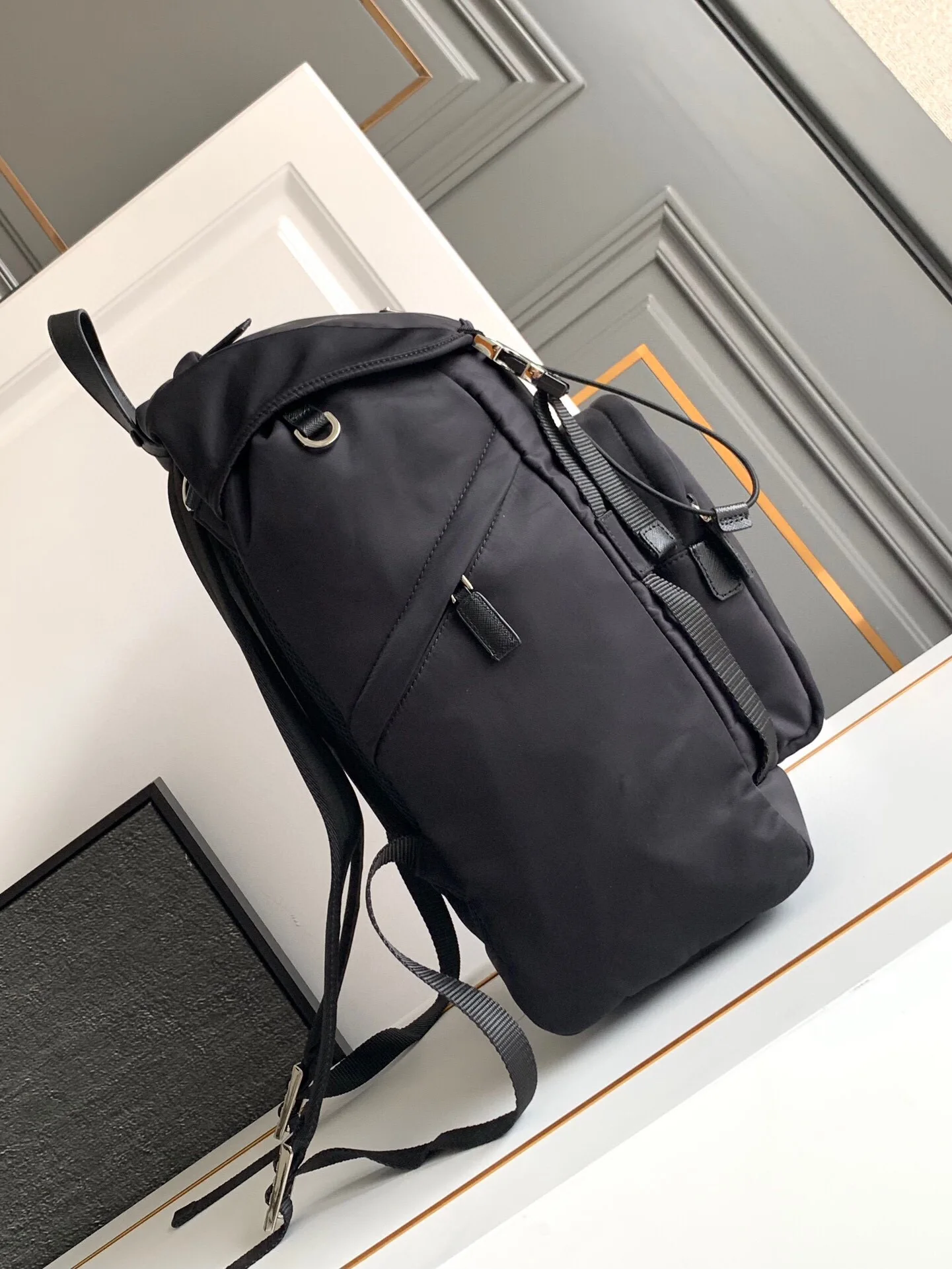 独家首发双肩背包这款尼龙背包饰有Saffiano皮革饰边 用创意与科技打造别致格调 多个口袋和科技材质加衬背面颇具设计特色 经典中的新款 时尚又大气又是一款永久不过时的经典款