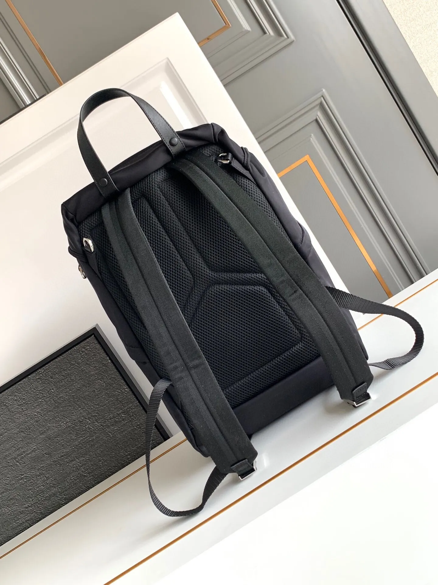 独家首发双肩背包这款尼龙背包饰有Saffiano皮革饰边 用创意与科技打造别致格调 多个口袋和科技材质加衬背面颇具设计特色 经典中的新款 时尚又大气又是一款永久不过时的经典款
