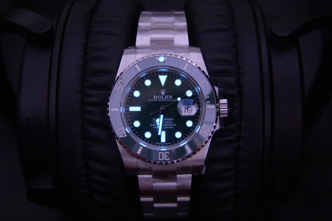 字面字体印刷无毛刺 字体边缘与字体中心点一样立体饱满有光泽 刻度用瑞士进口原液粉末矿石夜光粉末填充 瑞士超级夜光 表面呈现砂岩玻璃状 将持续为各界