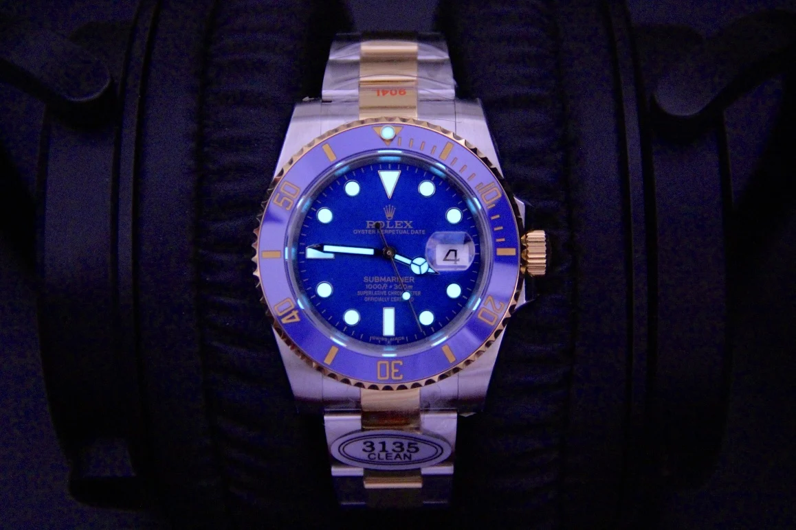 3135一体机 间金蓝水鬼 尺寸40mm 顶级做工 性价比超高Cerachrom陶瓷表圈 圈口刻度根据原版3D扫描抄数 放大看每个刻度边缘与正品一致微倒角处理