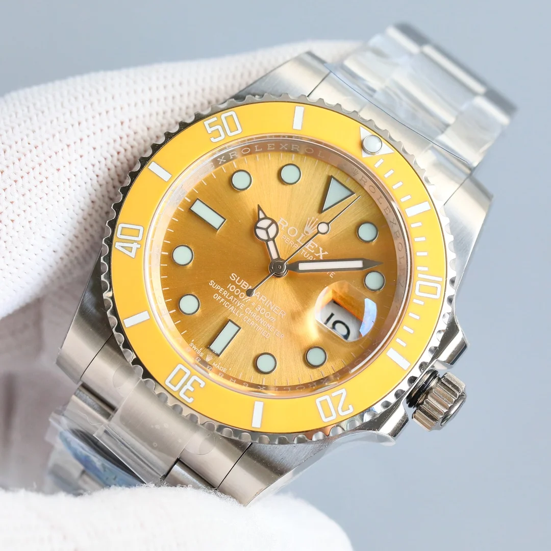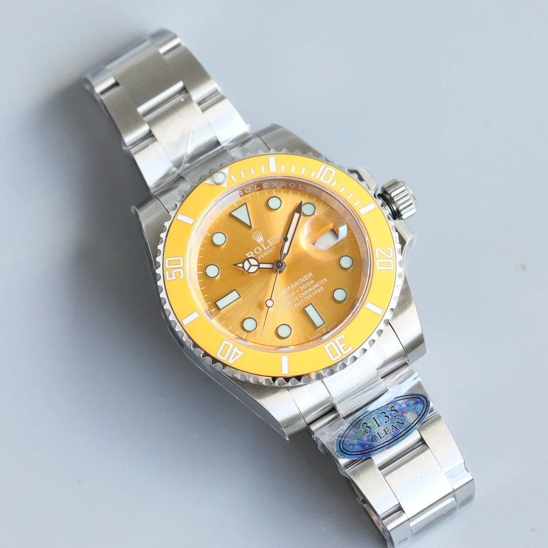 劳力士ROLEX潜航者水鬼SUB系列 最新官方蒂芙尼蓝/粉水鬼/黄水鬼腕表 纪念潜水艇人员 第70届周年纪念日 所推出的新款全新流行纪念款 1 圈口独特彩色配方和准确把控温度烧制而成 无限接近原装 蓝宝石夜光点做到极致原装闪亮 圈口刻度采用物理气相沉积技术 将铂金粉高温涂覆在字体上 使字体颜色耐久 遇水遇油不掉色 机芯搭载3135一体机 男女通用佩戴