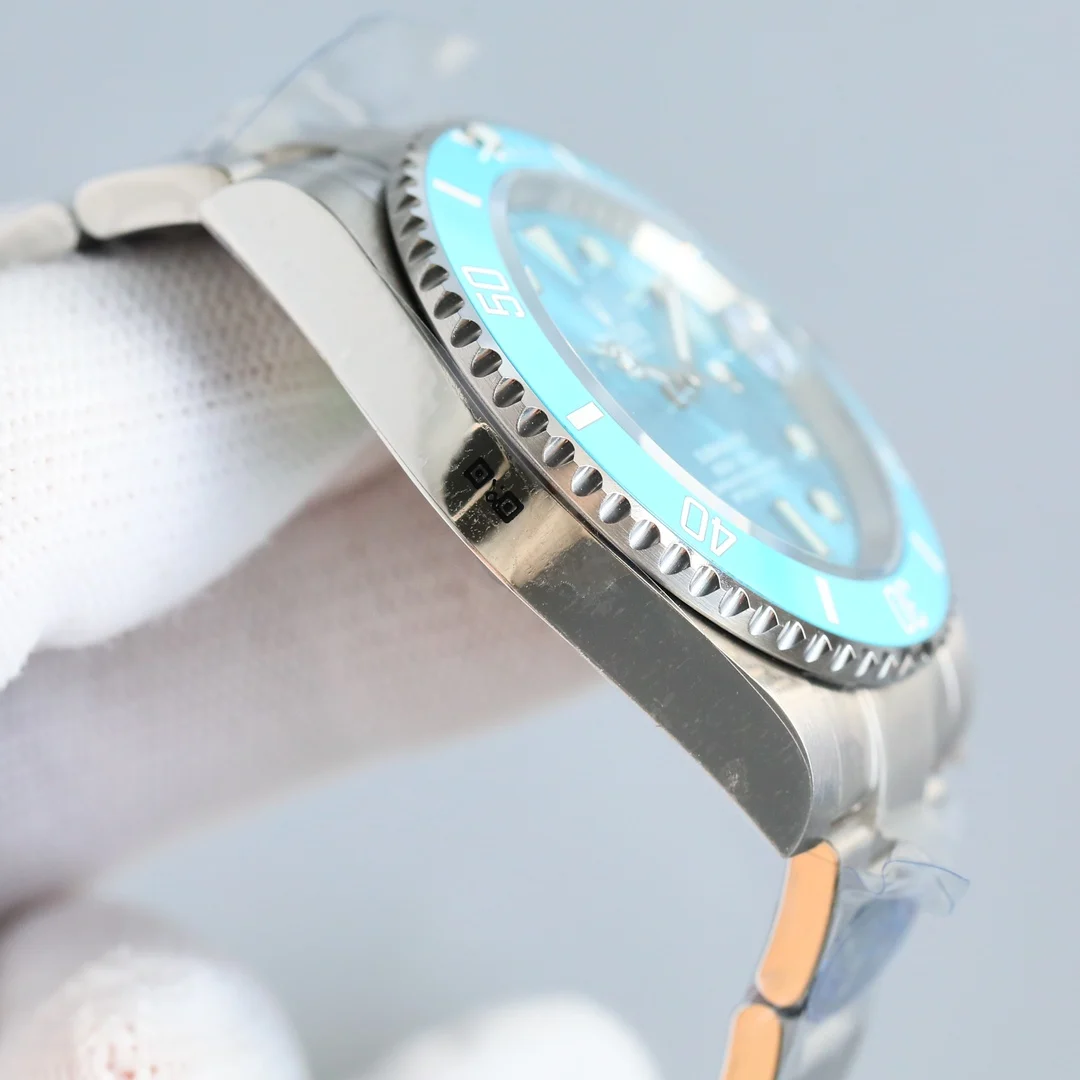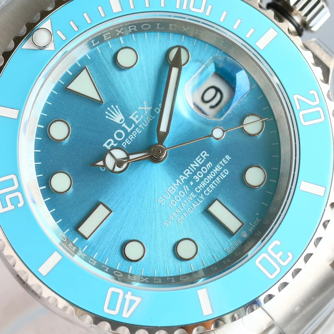 劳力士ROLEX潜航者水鬼SUB系列 最新官方蒂芙尼蓝/粉水鬼/黄水鬼腕表 纪念潜水艇人员 第70届周年纪念日 所推出的新款全新流行纪念款 1 圈口独特彩色配方和准确把控温度烧制而成 无限接近原装 蓝宝石夜光点做到极致原装闪亮 圈口刻度采用物理气相沉积技术 将铂金粉高温涂覆在字体上 使字体颜色耐久 遇水遇油不掉色 机芯搭载3135一体机 男女通用佩戴