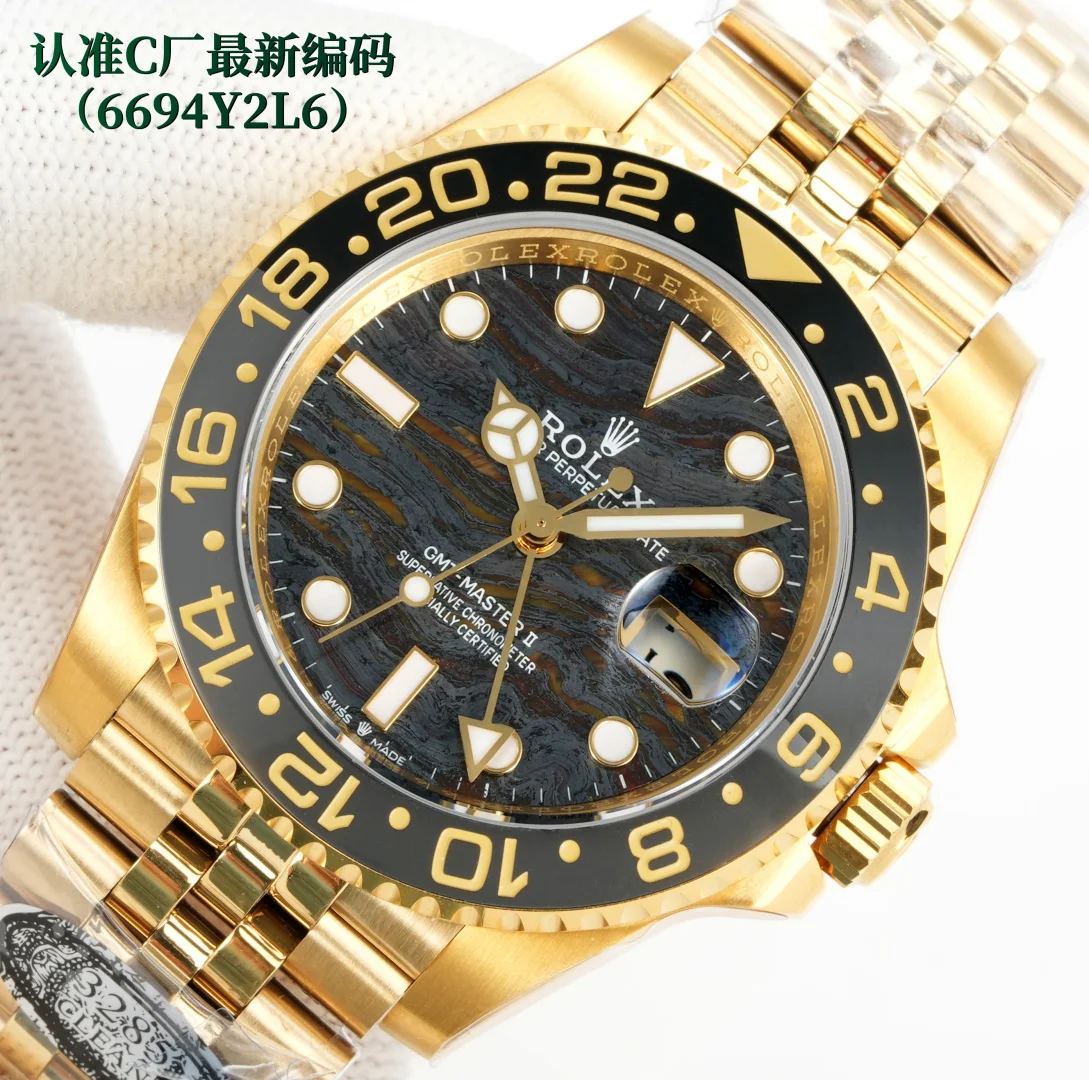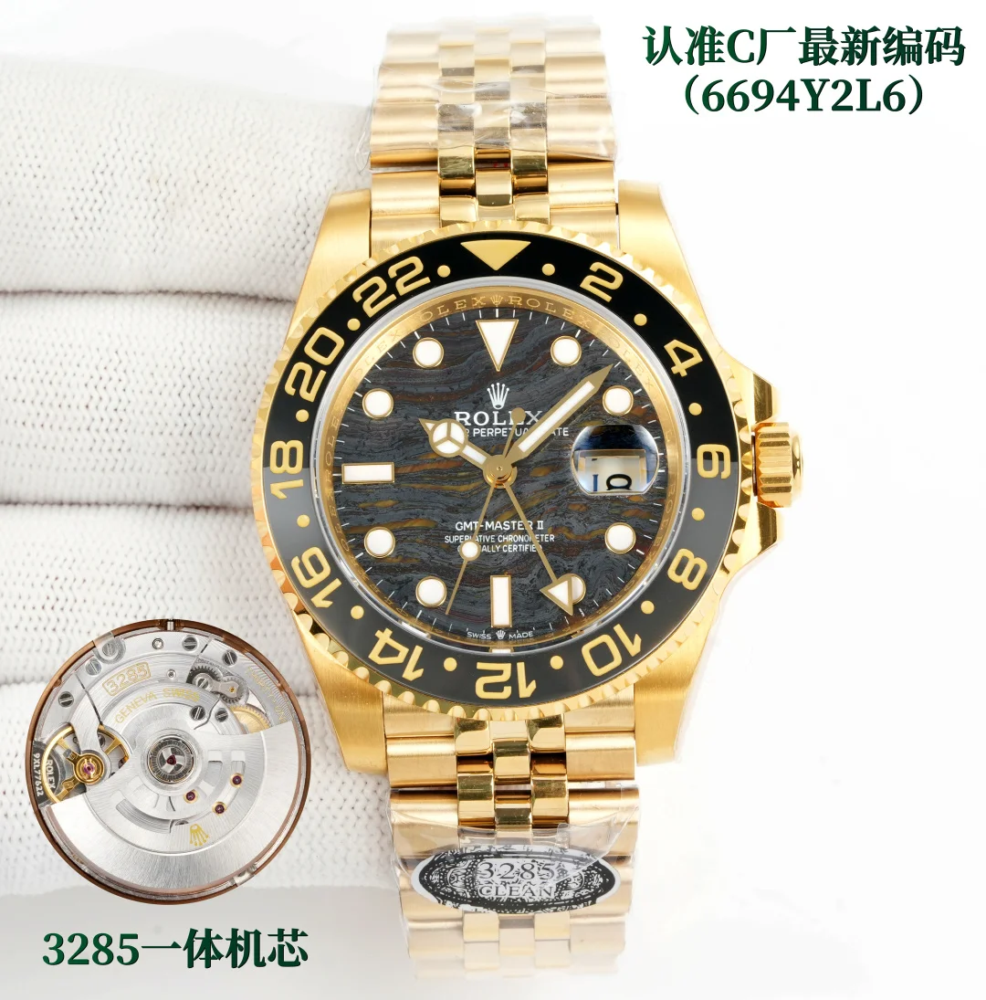C 劳力士 ROLEX CM3 配重 C厂跳码 GMT格林尼治升级版 采用正品一致904L钢材 一体成形的陶瓷白金字体圈口与正品一致 全新3285一体机芯 同步正品GMT针通过正反调时间及日历 配件通用原装 904L钢表壳表链 蓝宝石镜面 超级夜光 双向陶瓷旋转表圈 折叠表扣