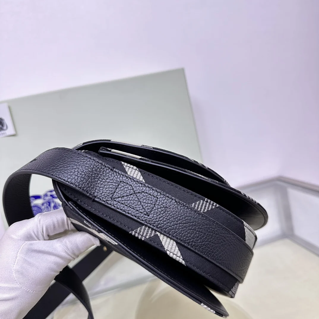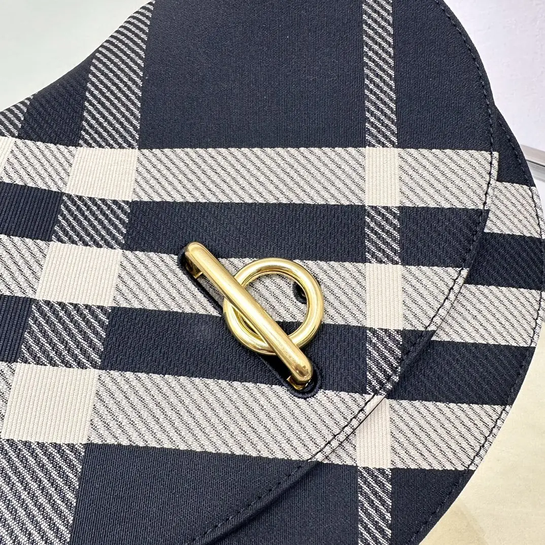 特级 B家最新羊毛立挺包款 于意大利工坊精制而成 装饰精纺 Burberry 格纹 弧形轮廓的设计灵感来自童年摇摆木马 翻盖开合设有 b 字型配件 设有皮革肩背带 可调节切换肩背包和斜背包造型