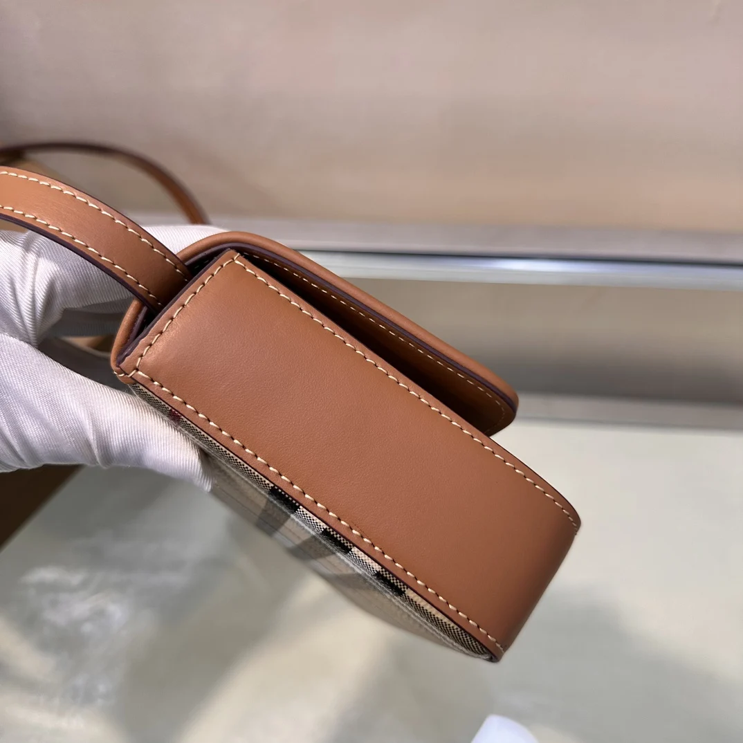 特级 B家最新精巧包款 选用光滑小牛皮材质打造 装饰Bur专属格纹 设有可拆式肩背带 可调节切换斜背包和手拿包造型