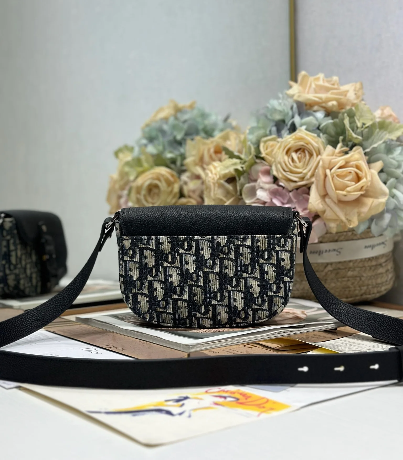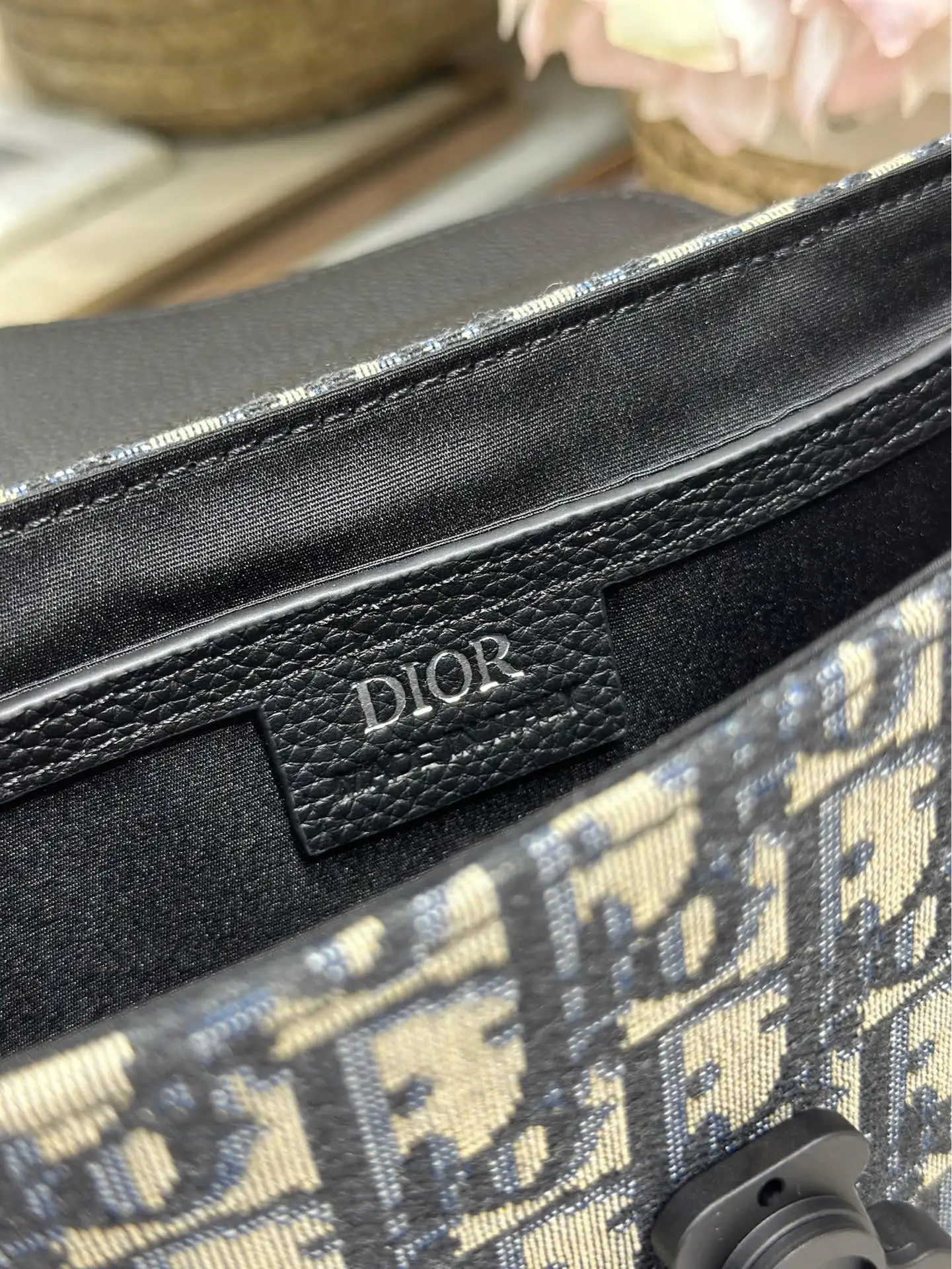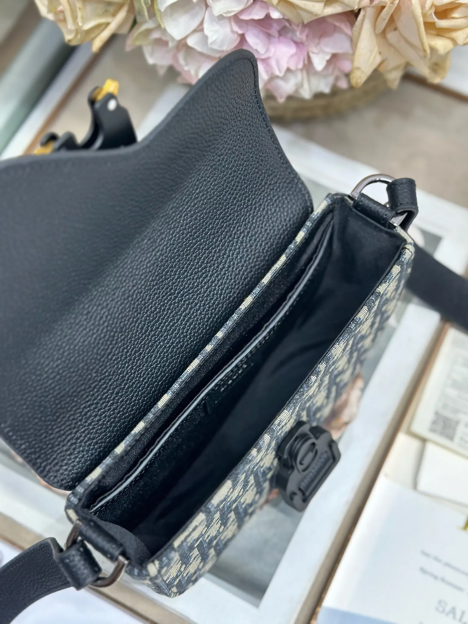 迷你马鞍信使包 蓝布 这款马鞍信使包采用时尚的设计 搭配翻盖 彰显精致的优雅气质 为马鞍系列提升格调 采用米色和黑色 Oblique 印花面料精心制作 搭配黑色粒面牛皮革马鞍翻盖和 Christian Dior 标志铝扣 型号 435尺寸 20 x 13.5 x 5.5 厘米 长 x 高 x 宽