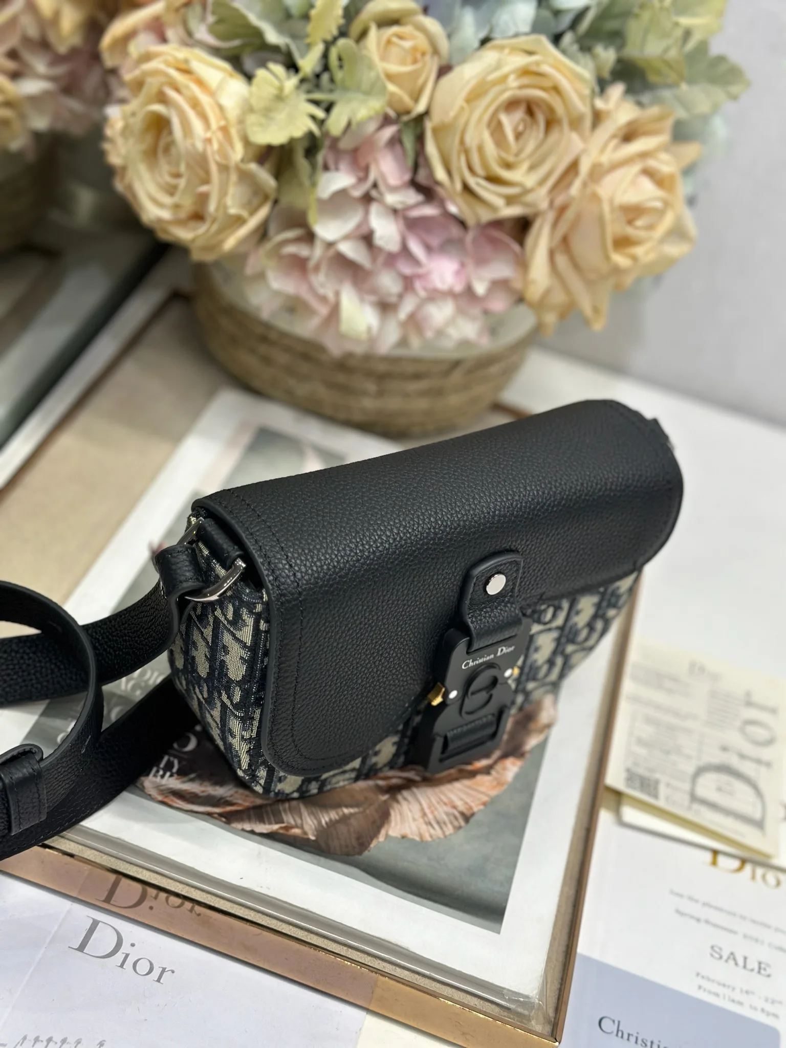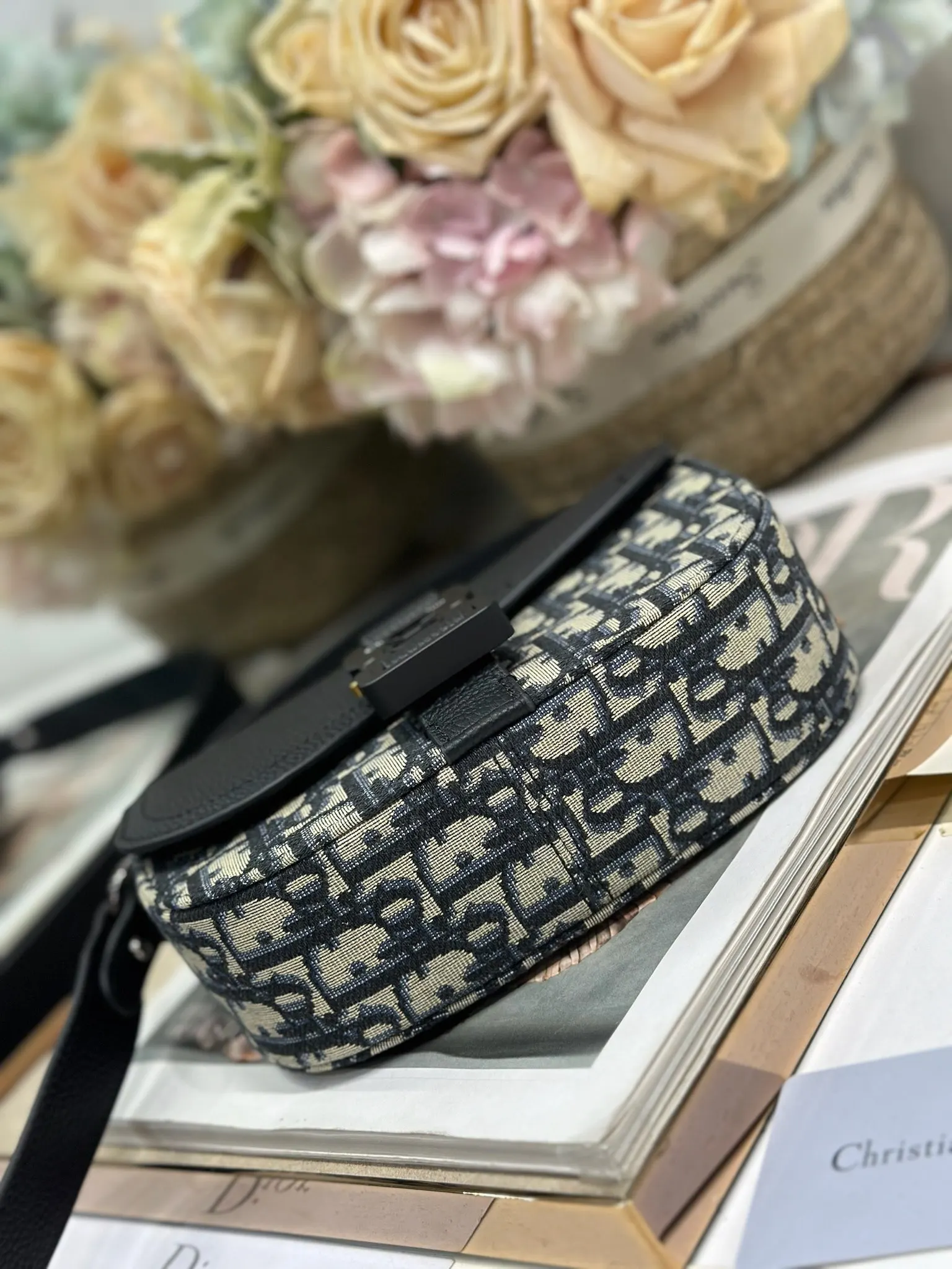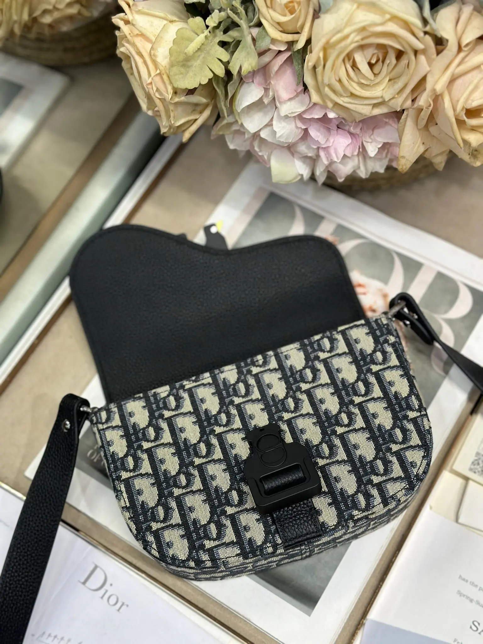 迷你马鞍信使包 蓝布 这款马鞍信使包采用时尚的设计 搭配翻盖 彰显精致的优雅气质 为马鞍系列提升格调 采用米色和黑色 Oblique 印花面料精心制作 搭配黑色粒面牛皮革马鞍翻盖和 Christian Dior 标志铝扣 型号 435尺寸 20 x 13.5 x 5.5 厘米 长 x 高 x 宽