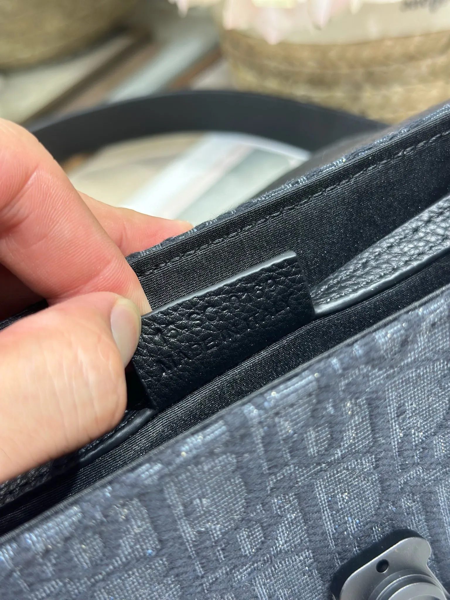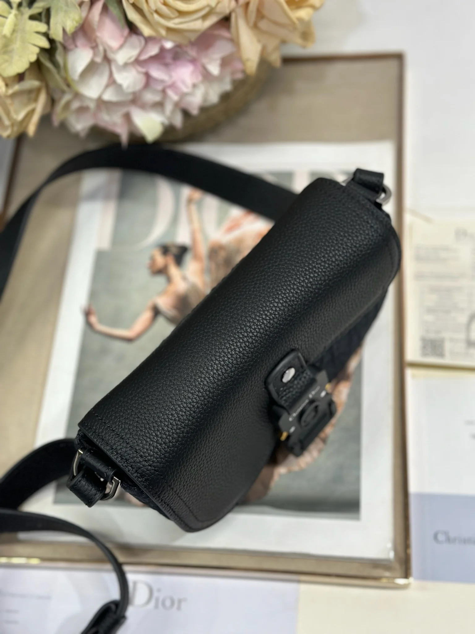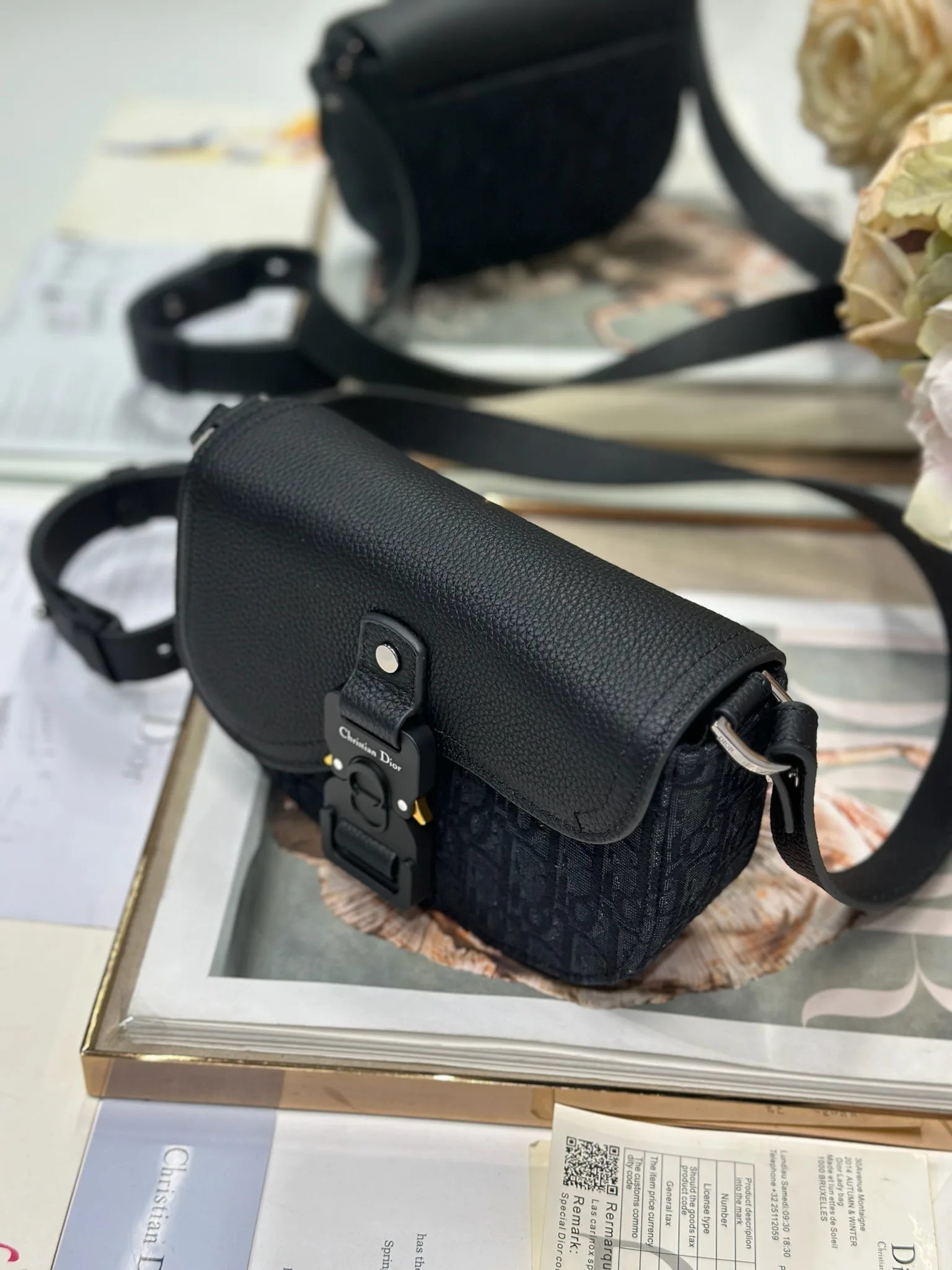 迷你马鞍信使包 黑布 这款马鞍信使包采用时尚的设计 搭配翻盖 彰显精致的优雅气质 为马鞍系列提升格调 采用黑色和黑色 Oblique 印花面料精心制作 搭配黑色粒面牛皮革马鞍翻盖和 Christian Dior 标志铝扣 型号 435尺寸 20 x 13.5 x 5.5 厘米 长 x 高 x 宽