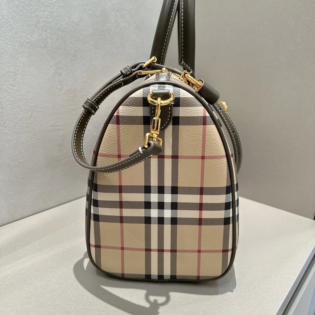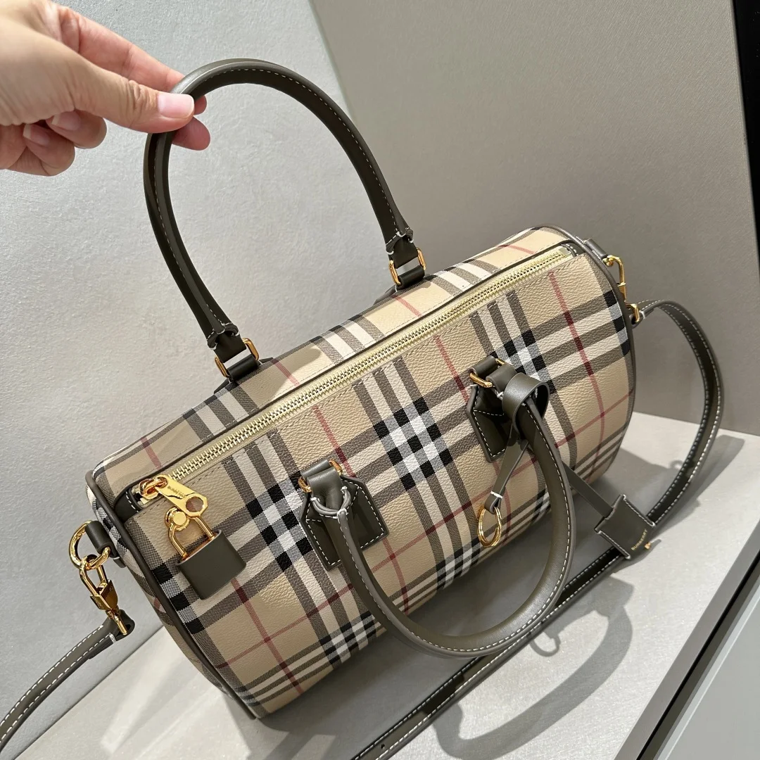 顶级 Vintage 格紋波士頓包复古时髦 手拎可愛有长肩带可斜挎-新到了大號可以選擇喔 大號容量十分心近很經典的一款包包 日常搭配也很好喔 材料是环保的防水防污帆布 上身轻便 容量大 超百搭 网红主推款今年必入款尺寸 30.15.21型号4961