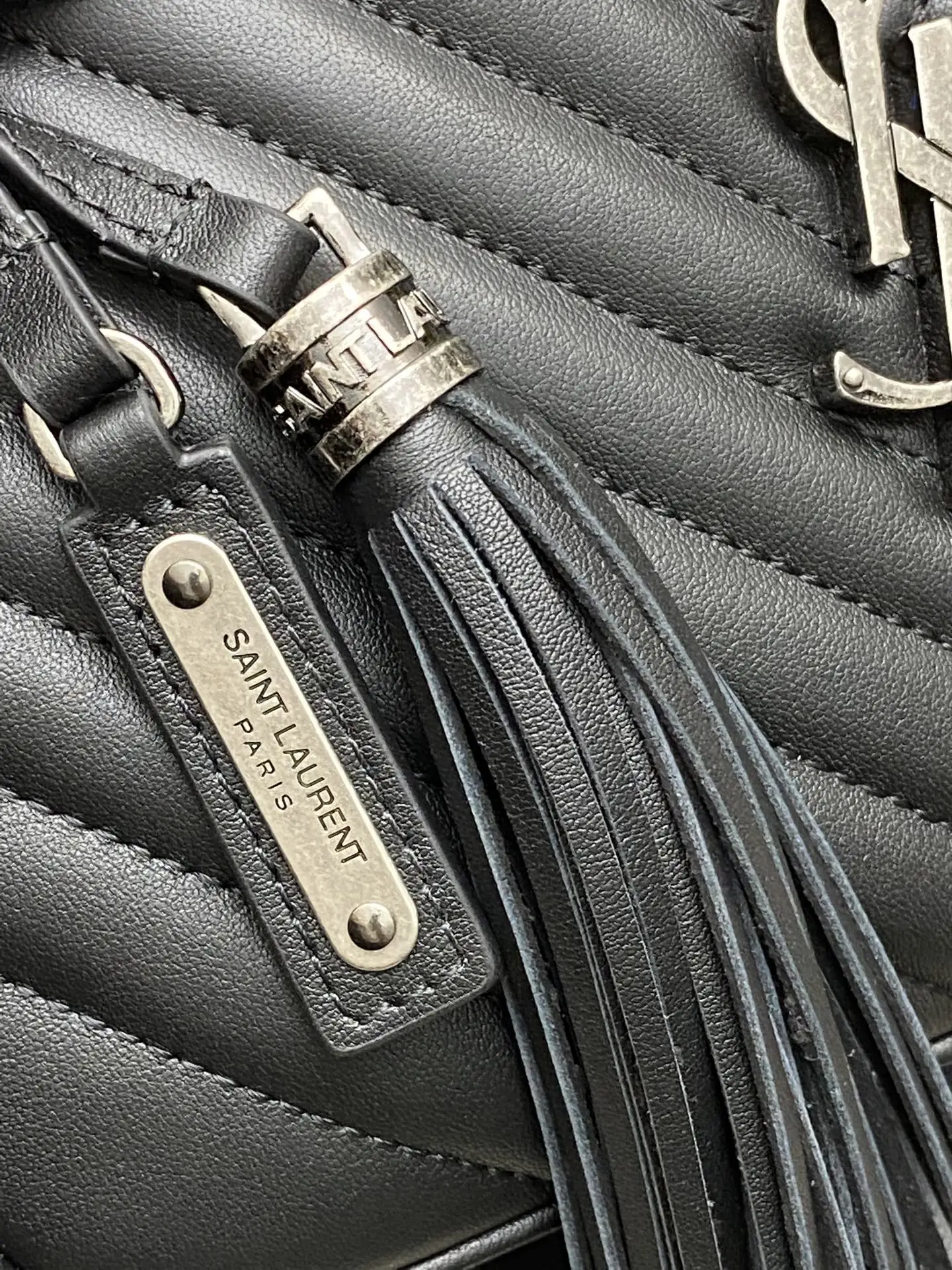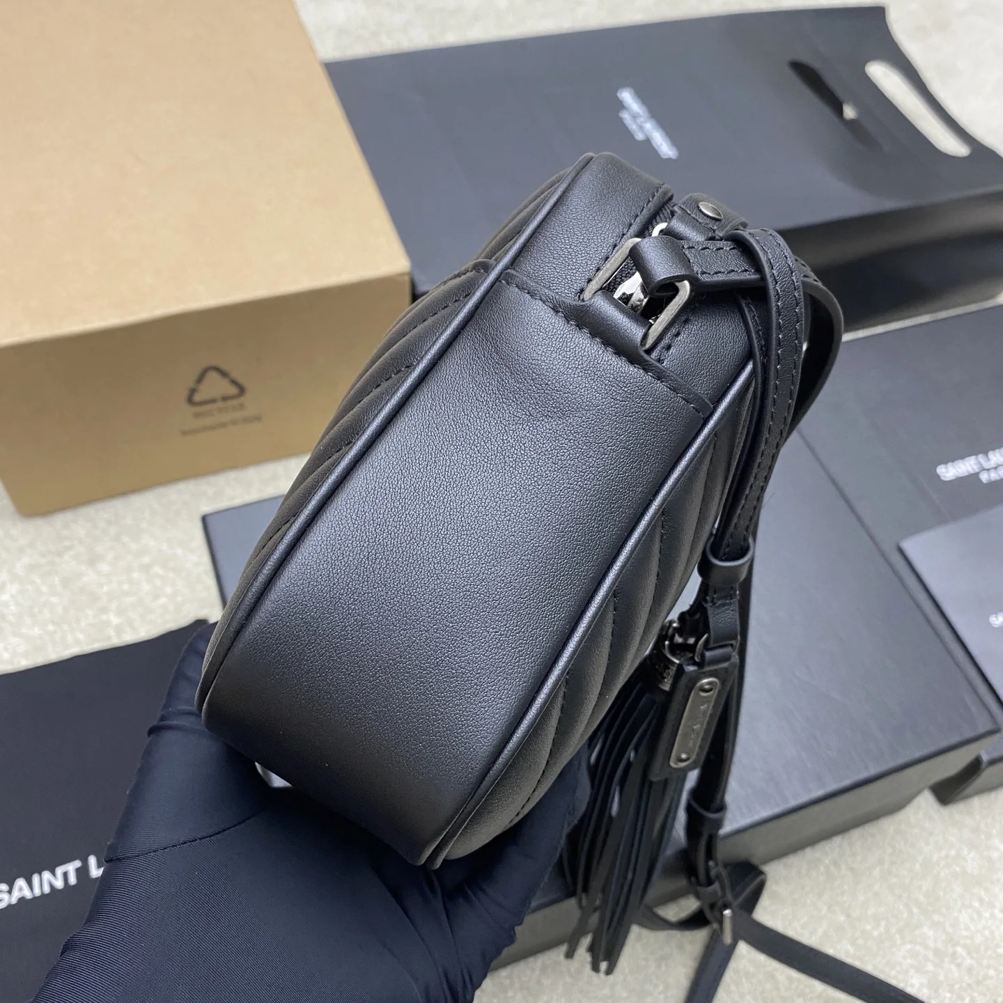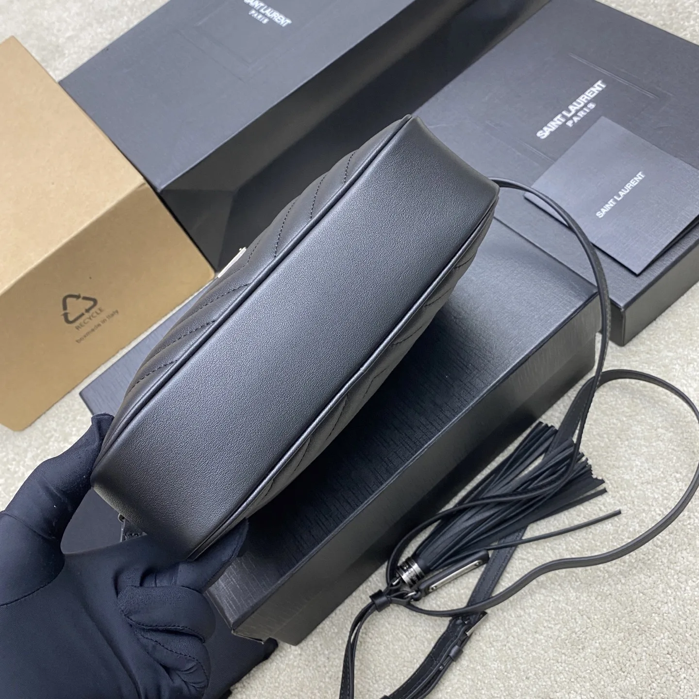 黑平纹/银全新升级版 强烈种草Y家LOU BAG爆款相机包 比老版本后面多了一个小口袋 自重超级轻巧的款式 容量惊人原厂ZP皮 细腻高级 皮质手感都超级棒简约的包身有Y家经典Logo作为点缀 肩带可以调节 流苏吊坠可以取下 轻便百搭