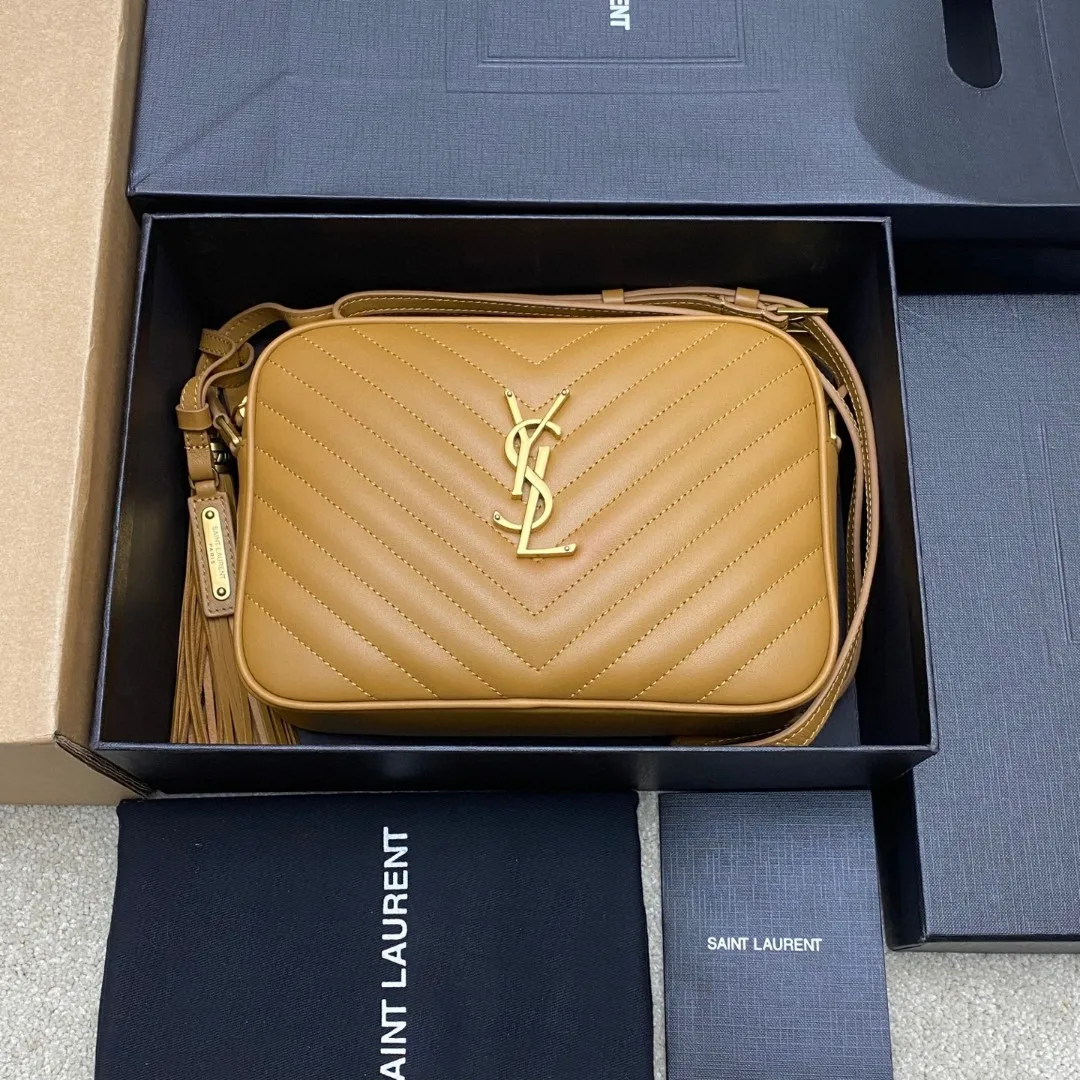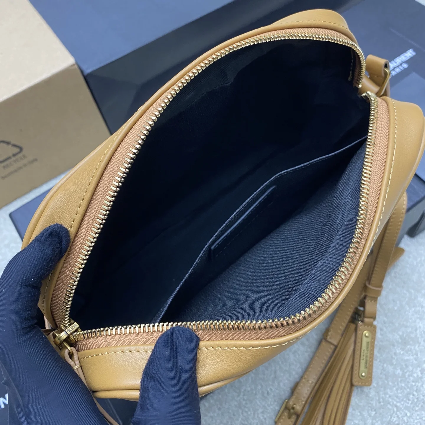 焦糖平纹/金全新升级版 强烈种草Y家LOU BAG爆款相机包 比老版本后面多了一个小口袋 自重超级轻巧的款式 容量惊人原厂ZP皮 细腻高级 皮质手感都超级棒简约的包身有Y家经典Logo作为点缀 肩带可以调节 流苏吊坠可以取下 轻便百搭