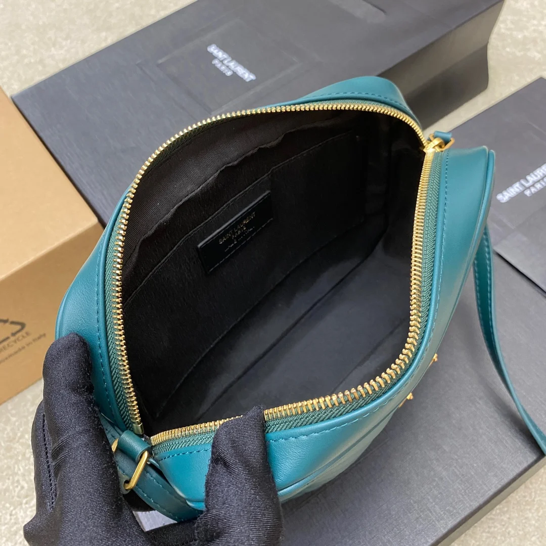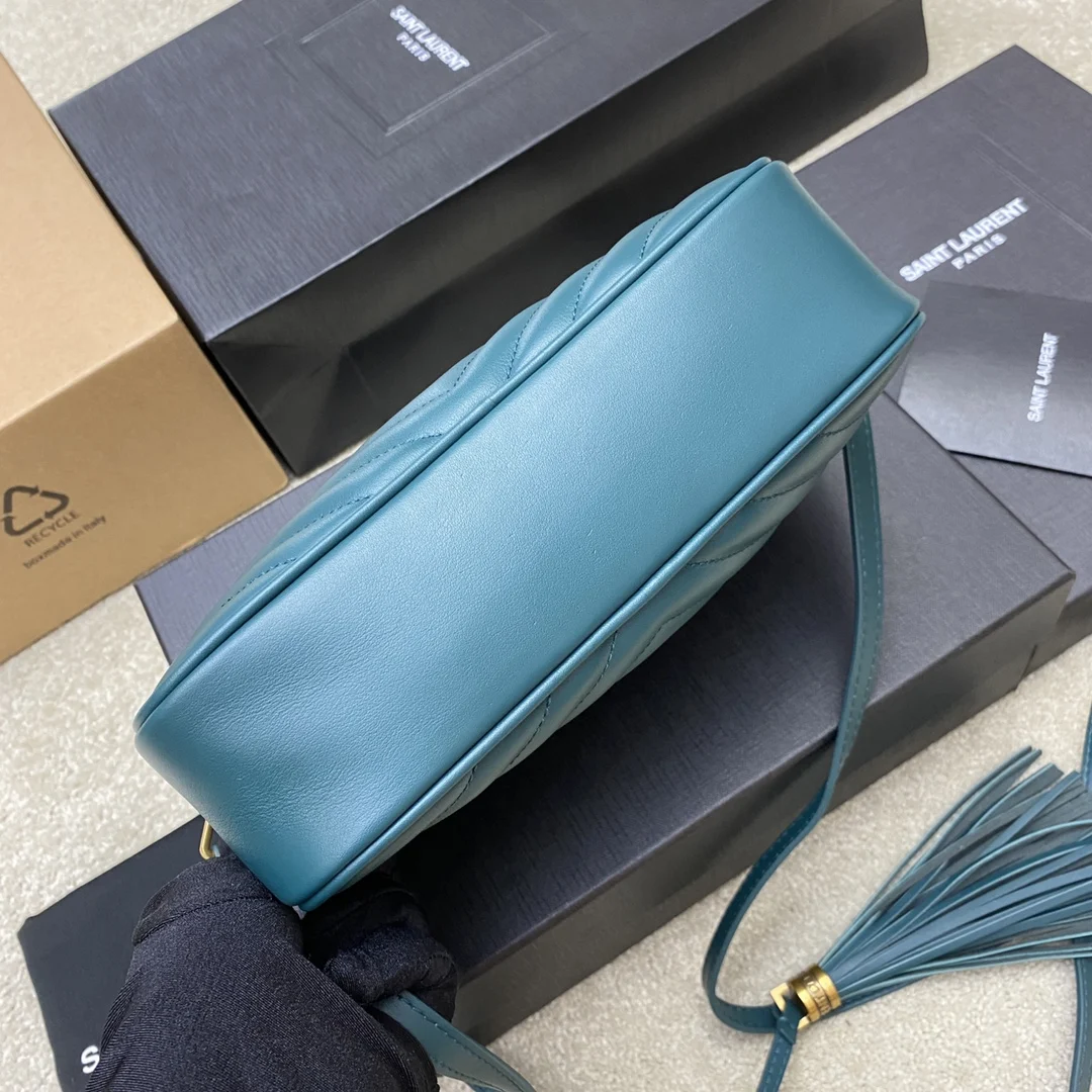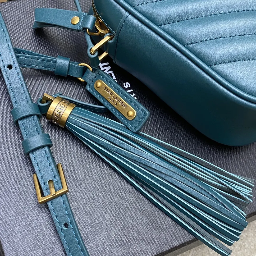 松石绿平纹/金全新升级版 强烈种草Y家LOU BAG爆款相机包 比老版本后面多了一个小口袋 自重超级轻巧的款式 容量惊人原厂ZP皮 细腻高级 皮质手感都超级棒简约的包身有Y家经典Logo作为点缀 肩带可以调节 流苏吊坠可以取下 轻便百搭