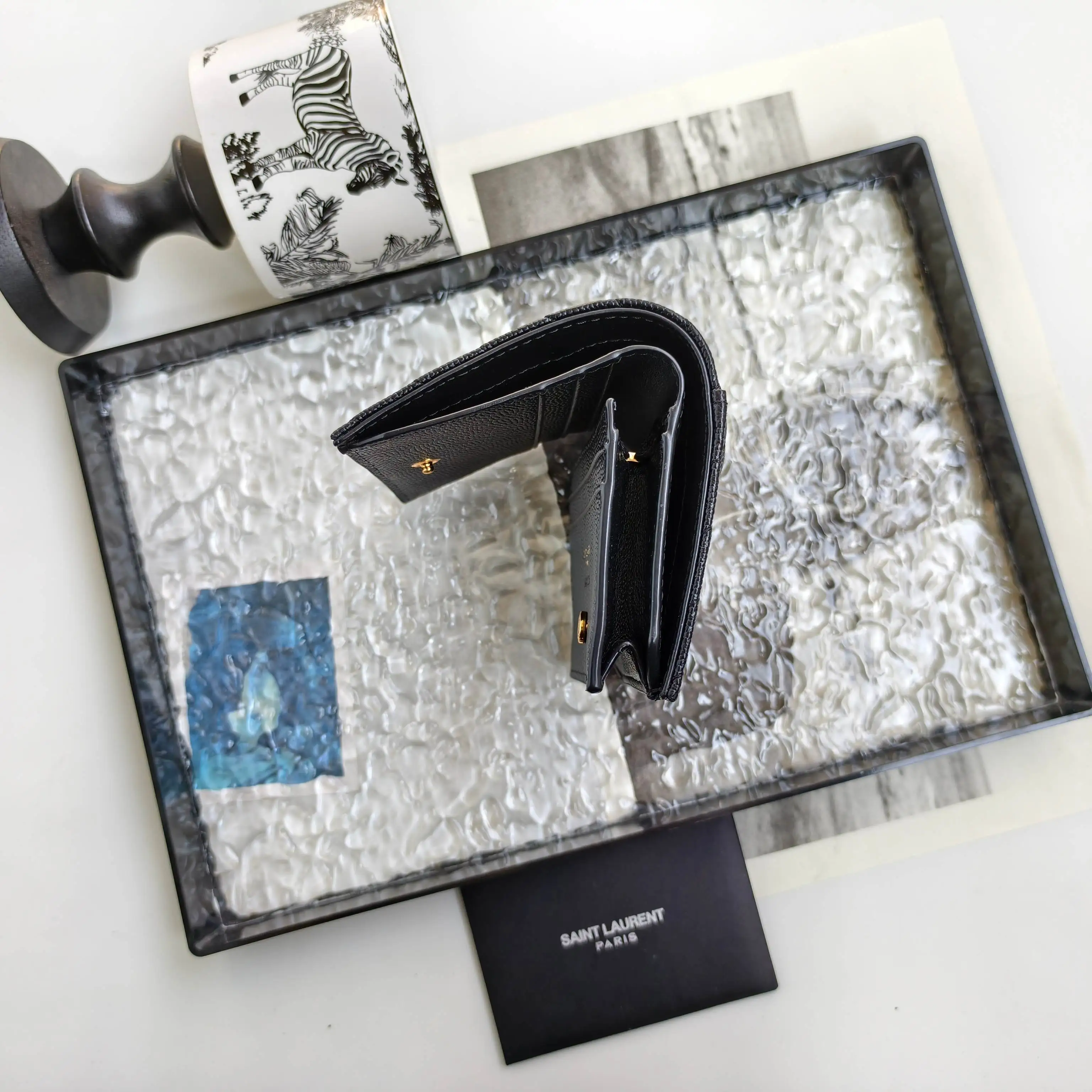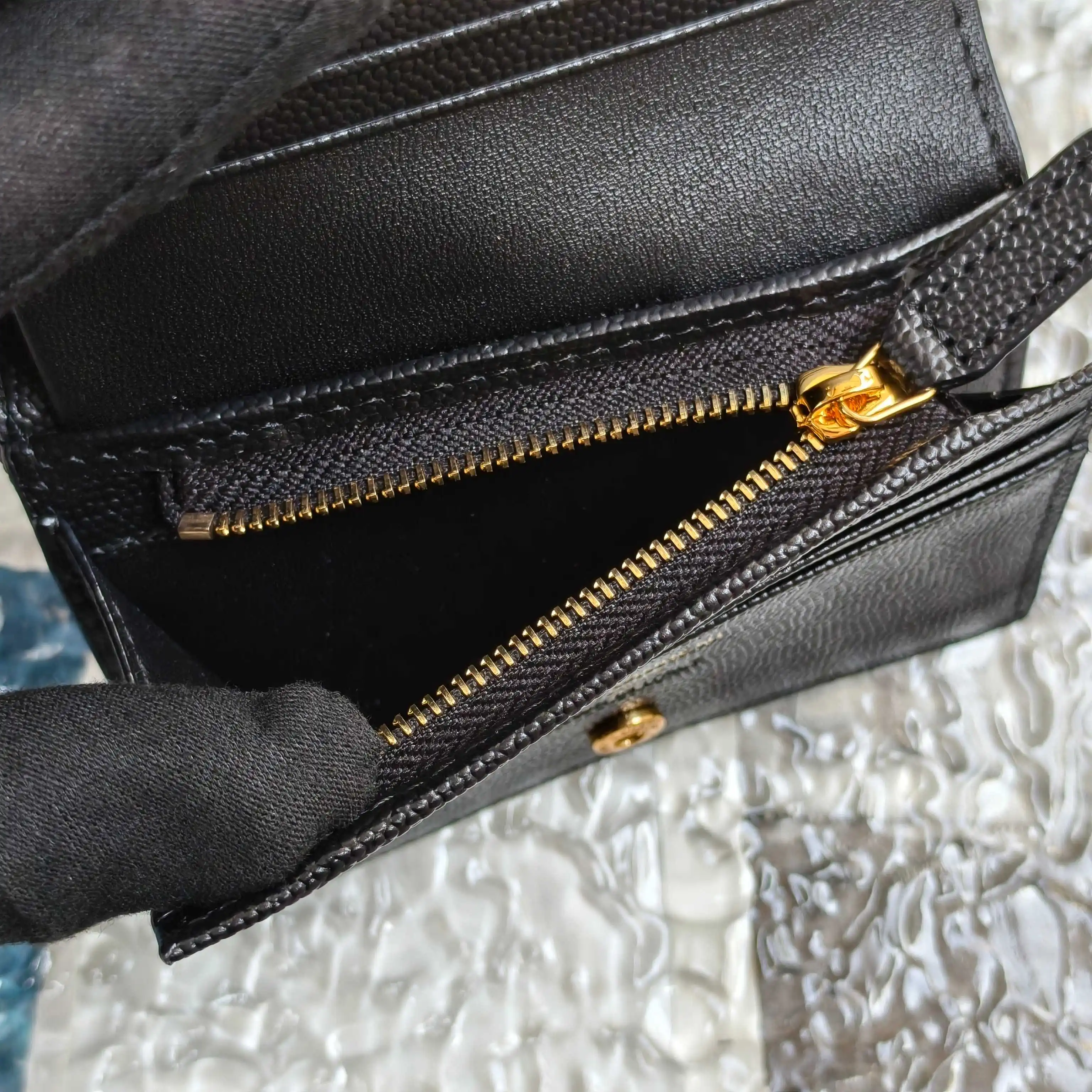 Y家短夹 正品开发 进口牛皮压鱼子酱 一个中央隔层 一个纸币隔层 六个卡片槽 一个拉链零袋 尺寸不大 用处不少 小巧玲珑 超级实用