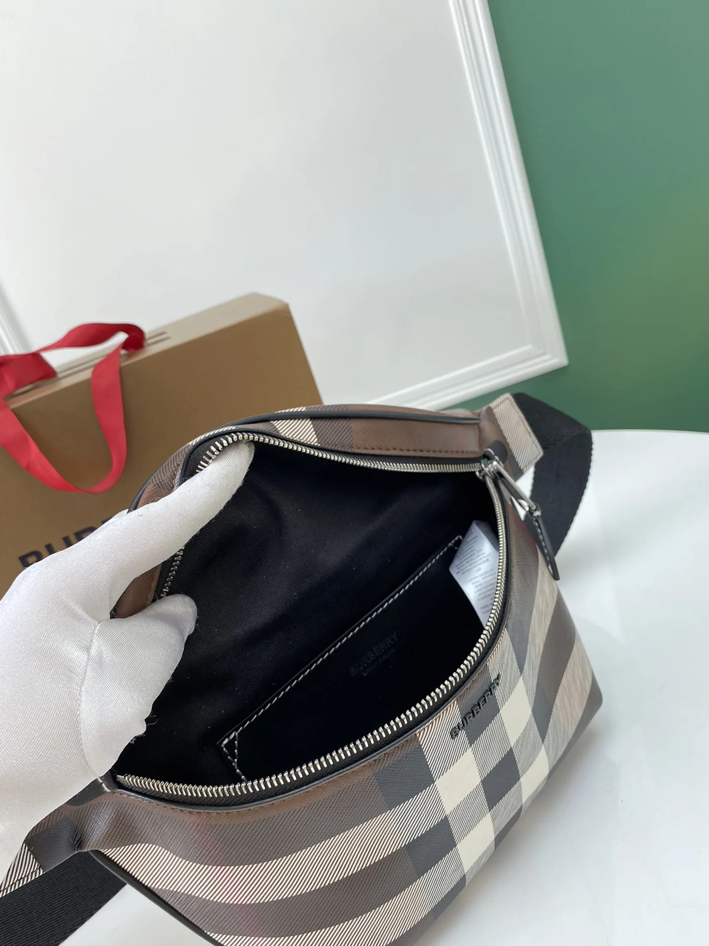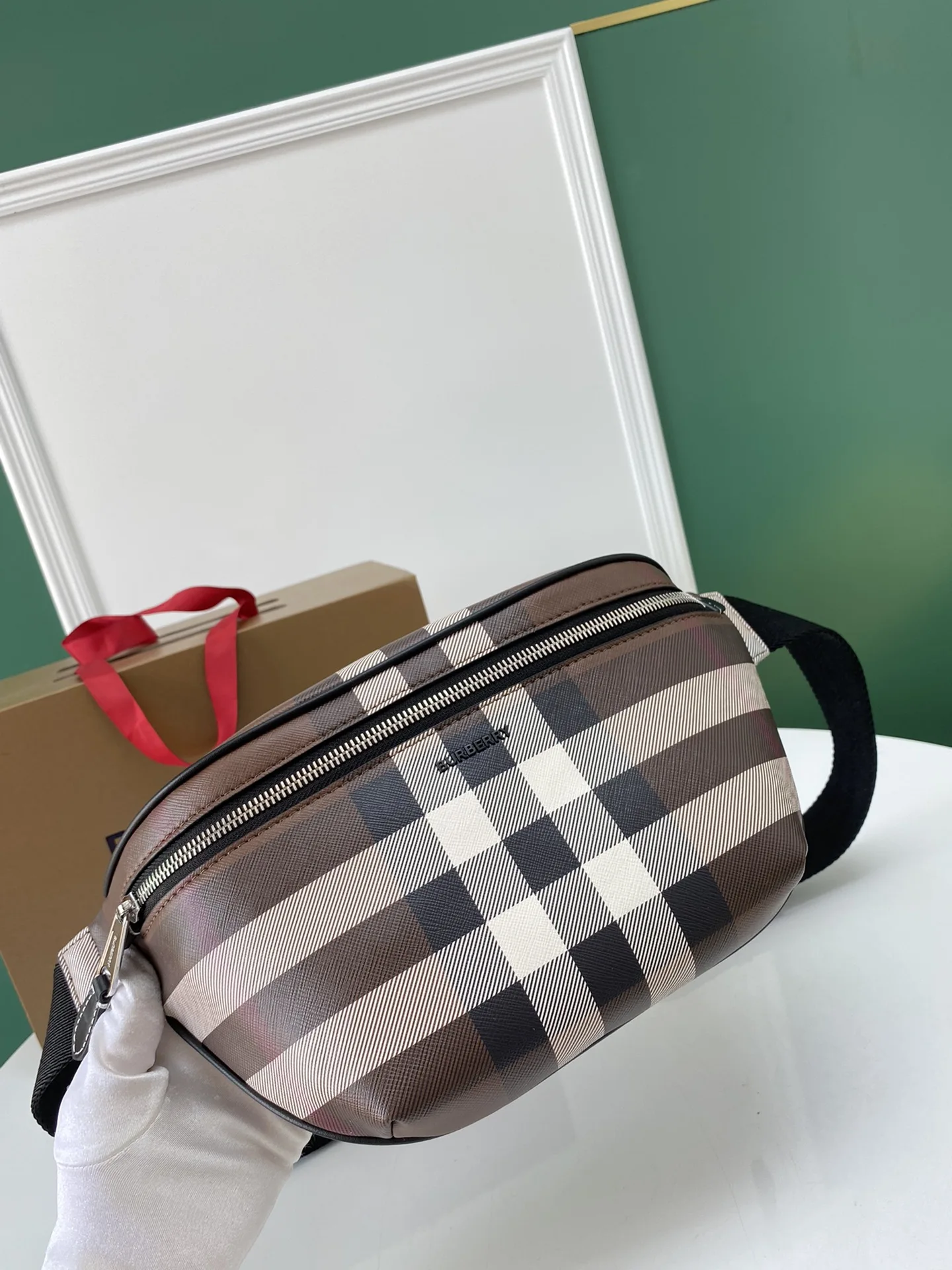 顶级 bur最新桦木棕格纹腰包 呈现标志性格纹设计 装饰皮革边饰及品牌徽标 可用背带斜挎或系于腰部 尺寸:37.5 x 8 x17型号5591
