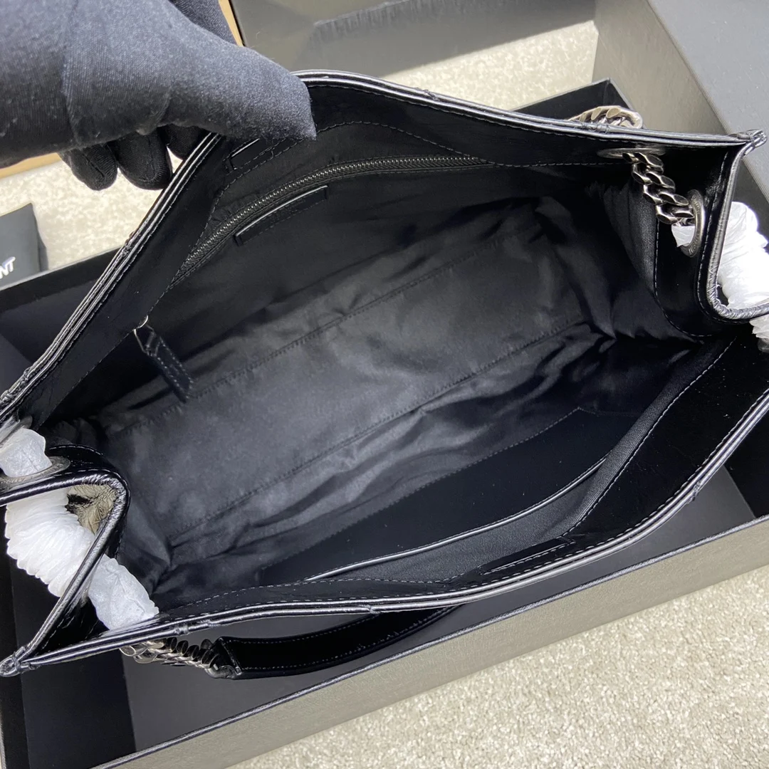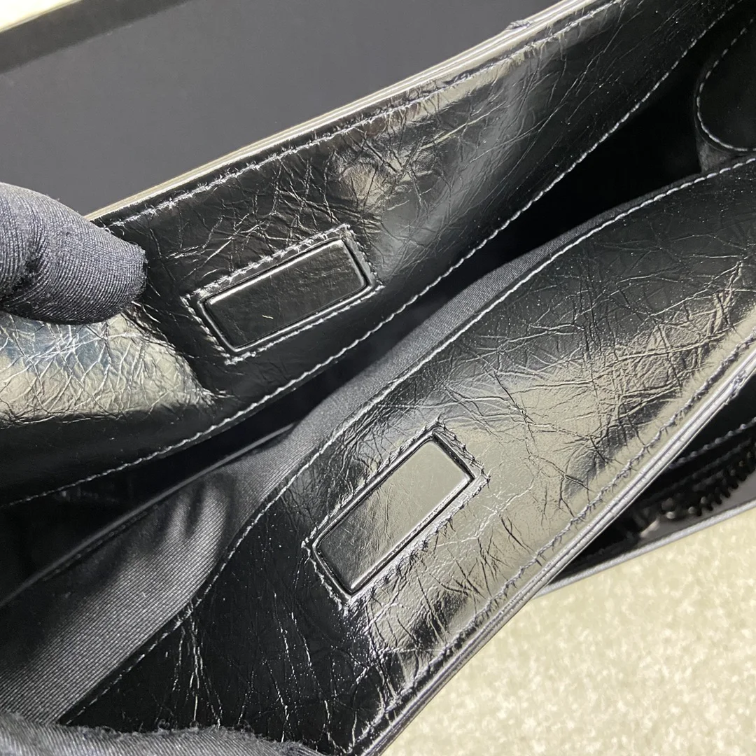 油蜡黑/银原厂皮 意大利进口抓皱油蜡牛皮 五金是全牛皮包裹 工艺十分精湛 包袋中间有磁吸扣 保障了包包使用的安全性 内里有一拉链隔层及敞口插槽设计可放手机及零卡片 方便拿取 不会出现因为是大包而出现找不到东西的情况 包包自重非常轻 容量又足够大 公文包 旅行包 购物袋 妈妈包随意切换 实用性爆表