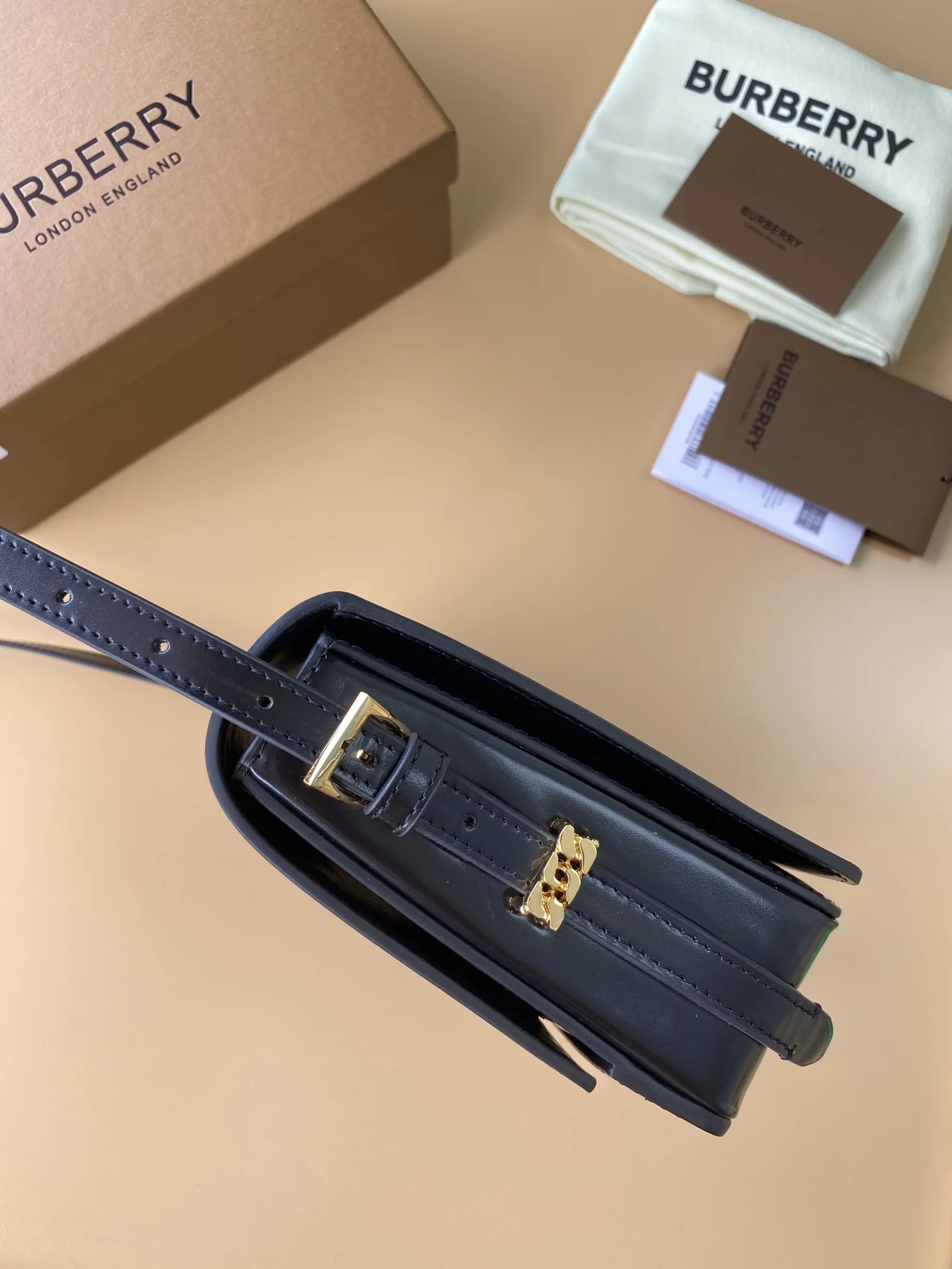 顶级 B家挺括的肩背款 Grace - 格雷丝包 精选意大利鞣制皮革制成 装饰品牌 Horseferry 印花与精美链条细节 随心变换为斜背包 或卸下背带缔造手拿包造型 19.5 x 7 x 16cm型号595155