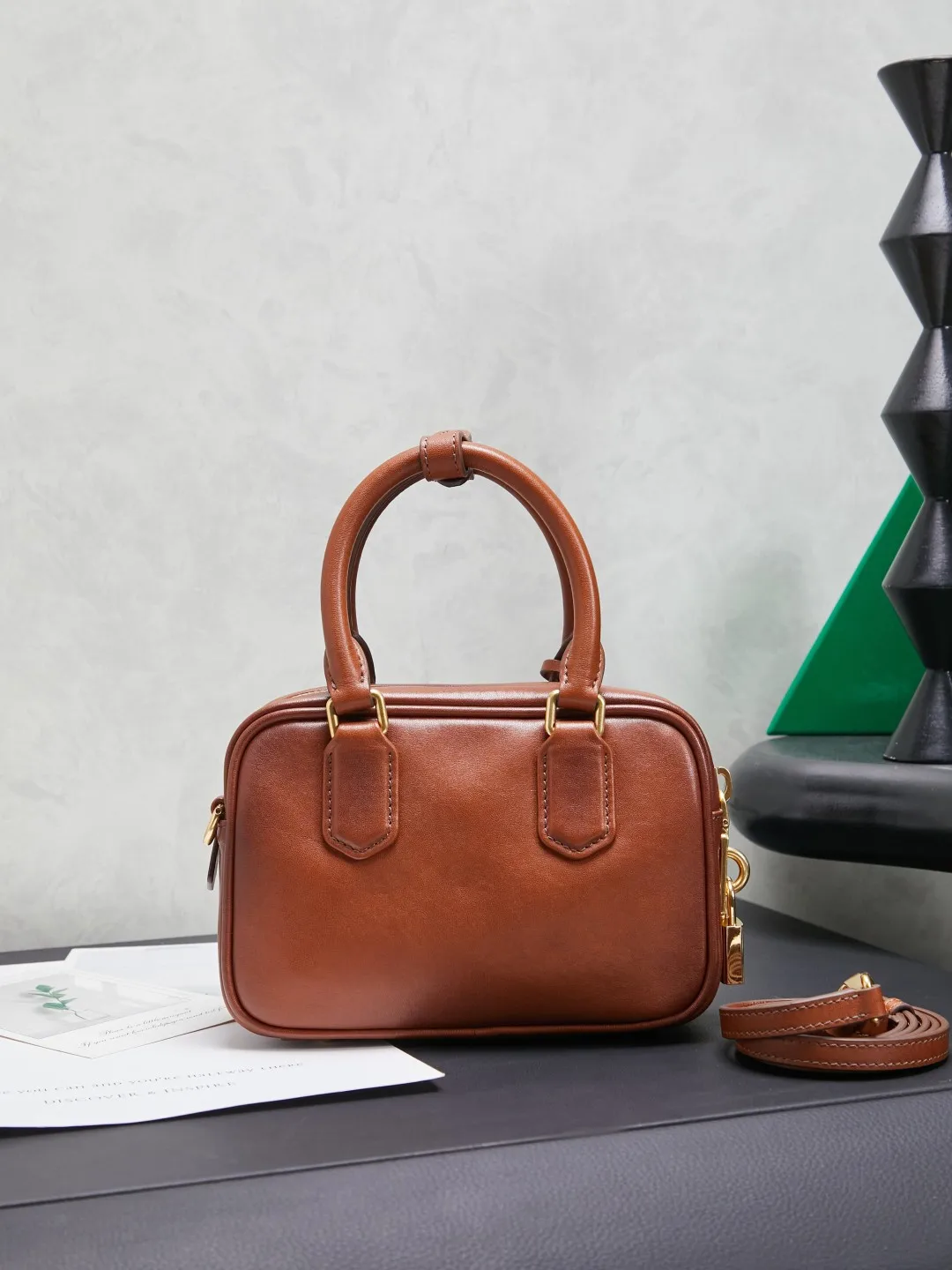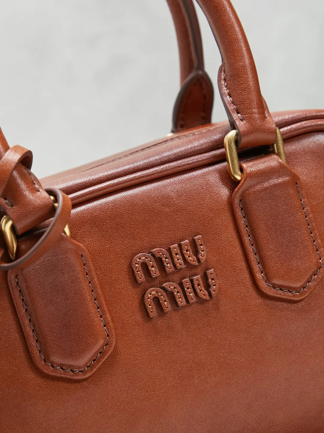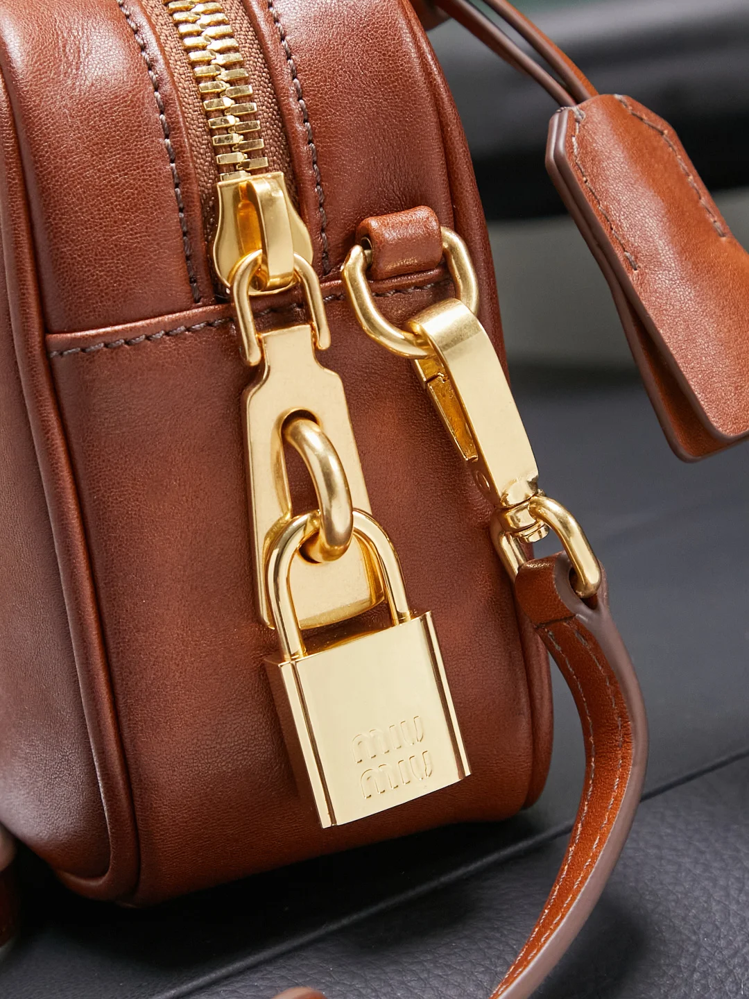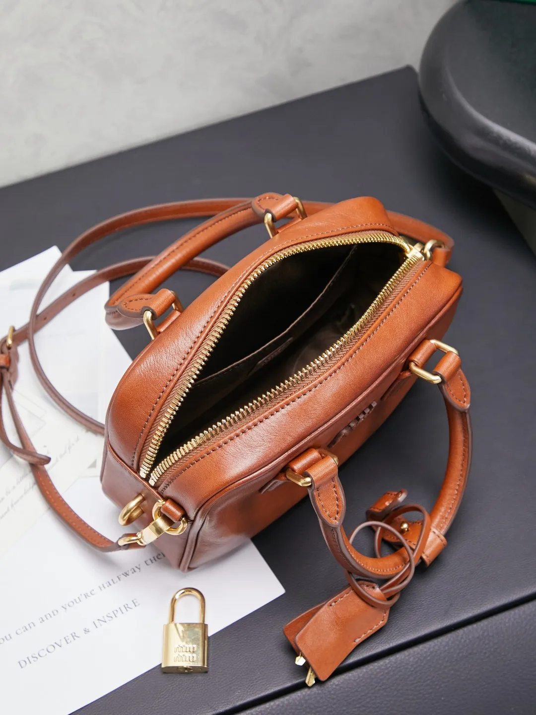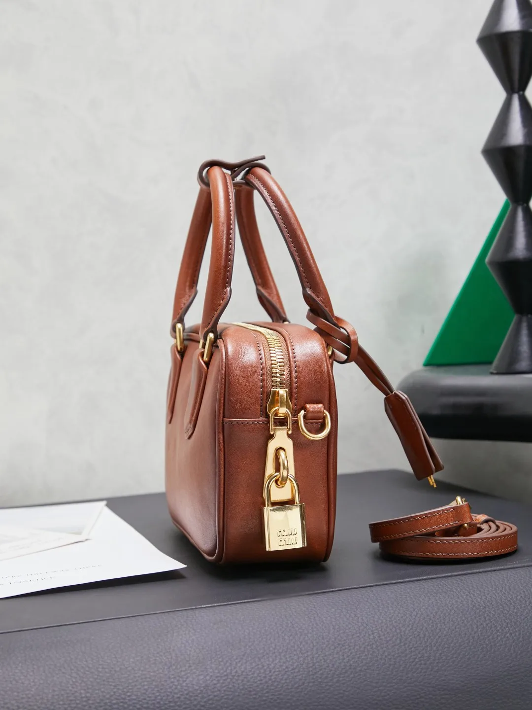 5BB123 MiuMiu新品too pretty保龄球手袋 采用进口小牛皮 复古磨砂五金 保留了应有的俏皮感 包型整体硬挺有型 充满个性 时髦复古感拉满 妥妥的个性大女主 可手提可斜挎 多种风格随意切换 经典干邑色 一年四季都可以完美搭配 尺寸 19X13X6CM