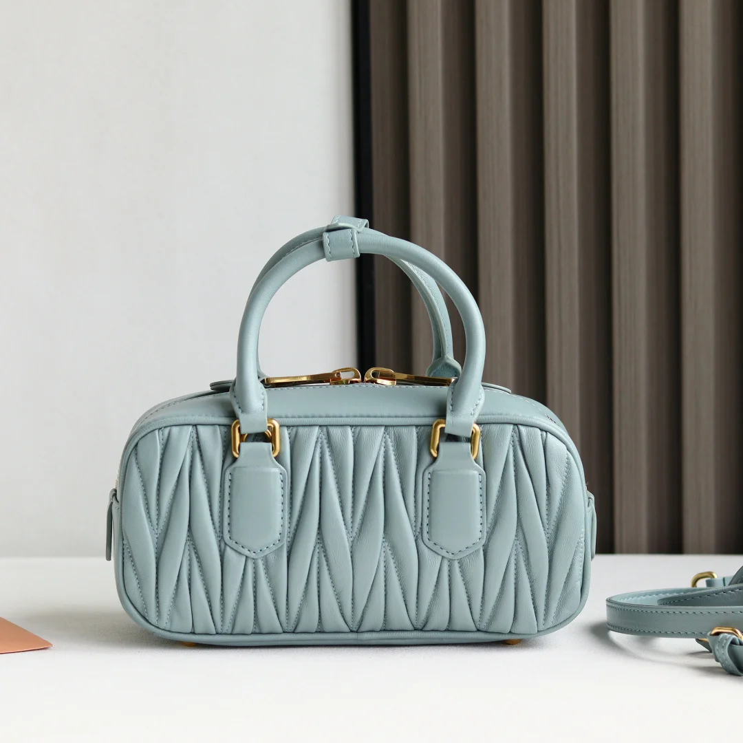 配全套包装 特级五金原厂皮 Arcadie Matelasse羊皮革小号22cm保龄球手提包/斜挎包