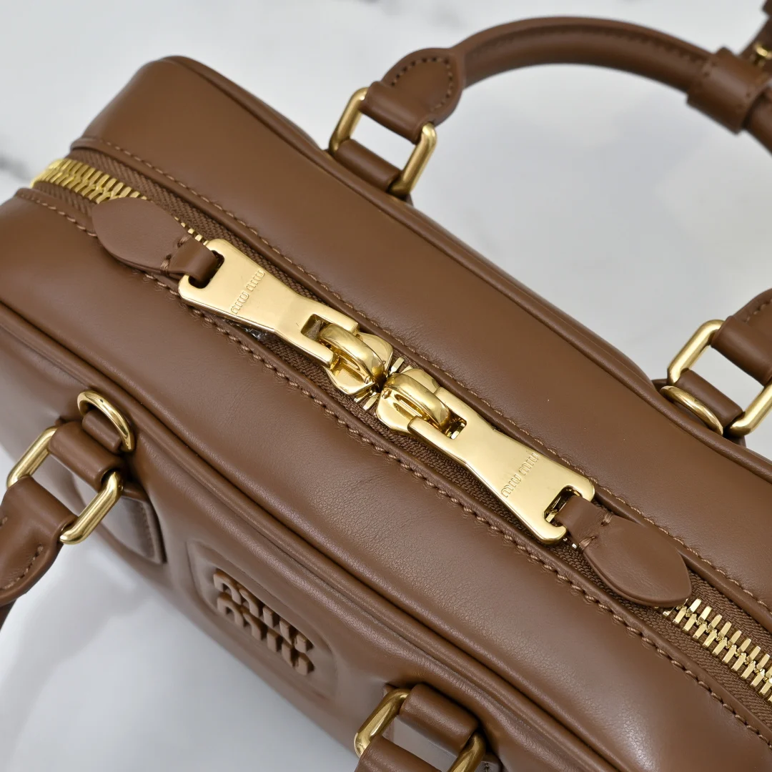 5BB142 Miu家新款保龄球包包 官网主推 今年绝对式 顶级进口小牛皮 Miu家独具风格Matelasse图案 包身精致立体有型 正面刻字徽标与皮革颜色相呼应 可拆卸可调节皮革长肩带 棉质缎面衬里 配拉链式口袋 众多明星网红同款 尺寸22X10.5X7.5Cm 配原版包装