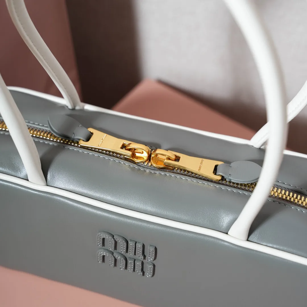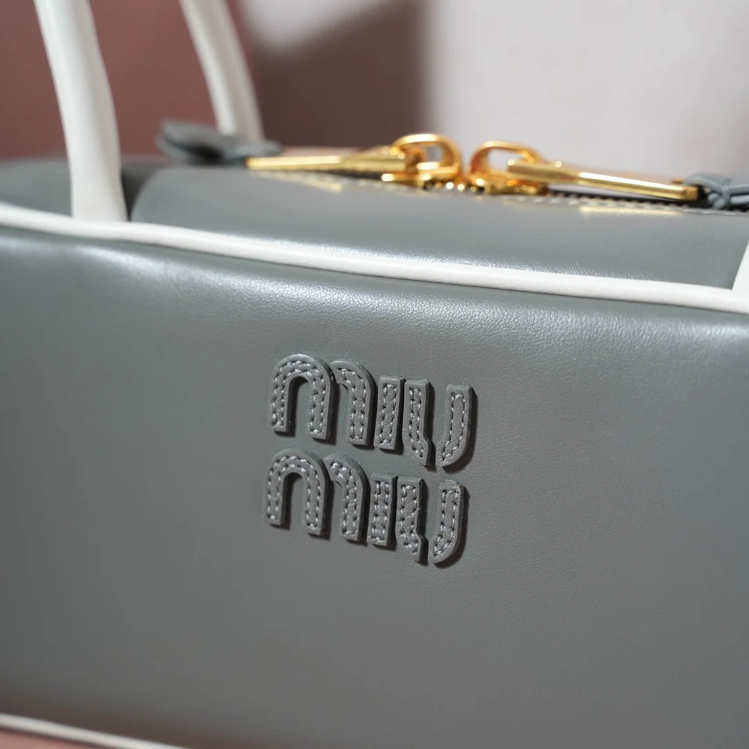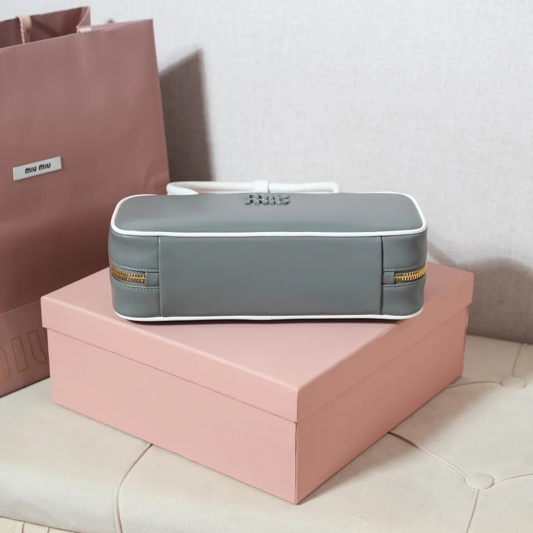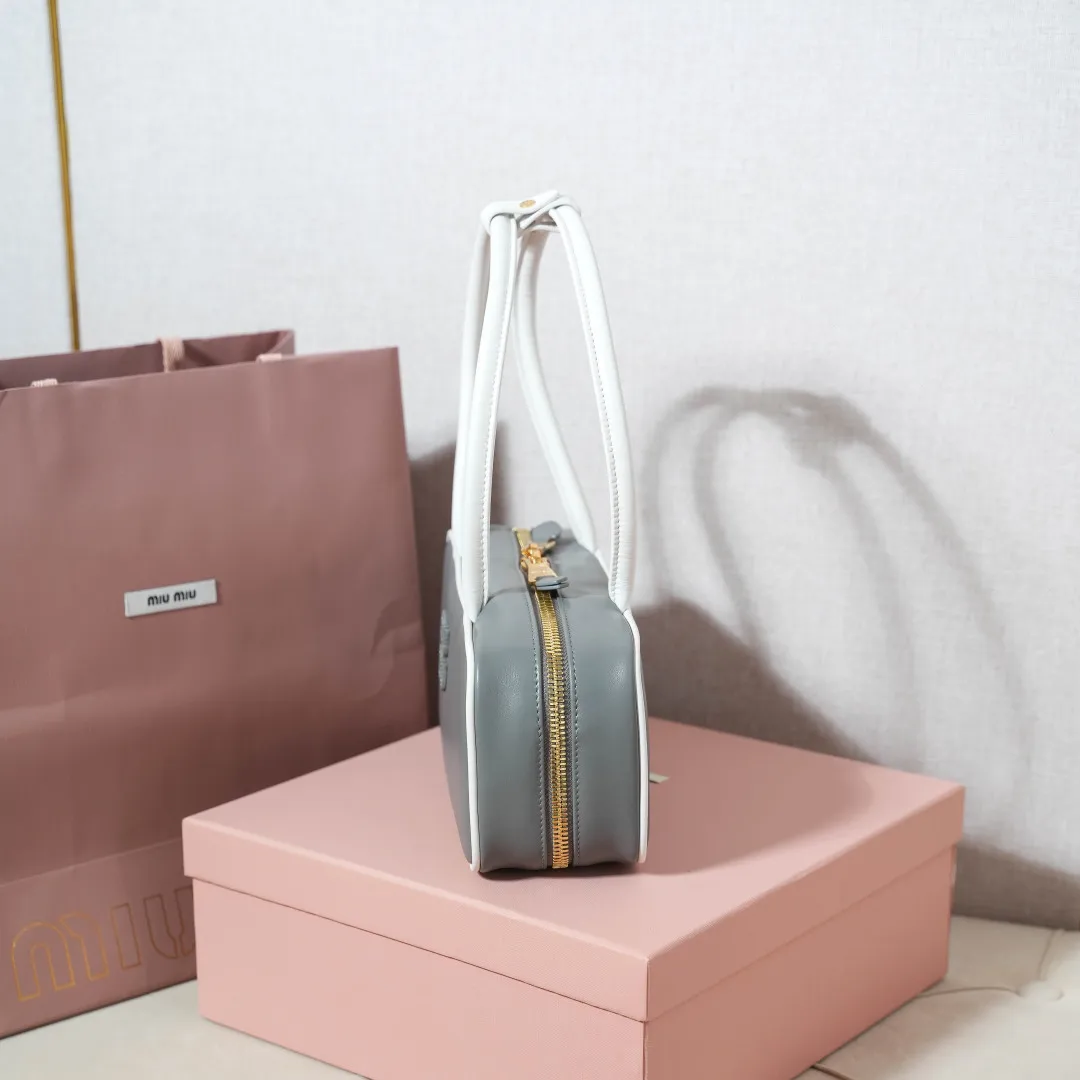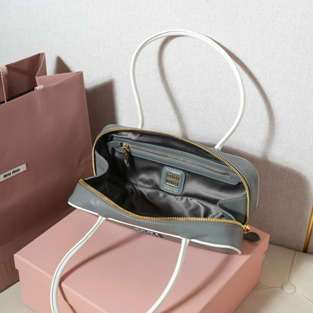 5BB173 Miu新品保龄球 最新双色搭配设计 采用超柔软小牛皮材质 大胆创新的设计完美诠释了Miu不拘一格 潇洒随意包容的人生态度 这款包包很酷 定格精致的多功能设计 融合男装和女装素 随性慵懒 自然洒脱 充满个性 全新的帆布衬里 火遍全网不是没道理的 各大时尚搏主明星都爱背它 尺寸 28X12X9cm
