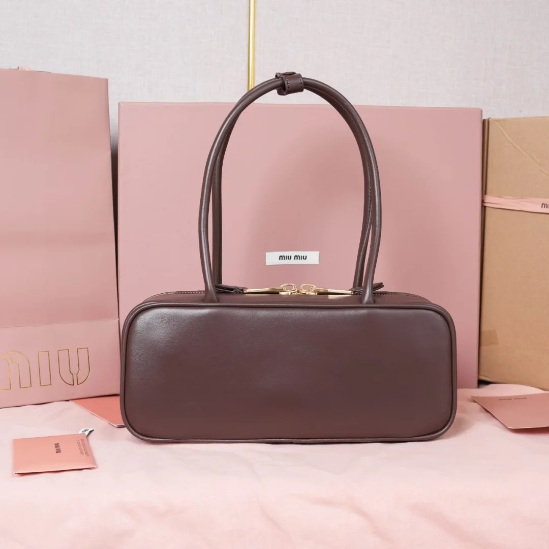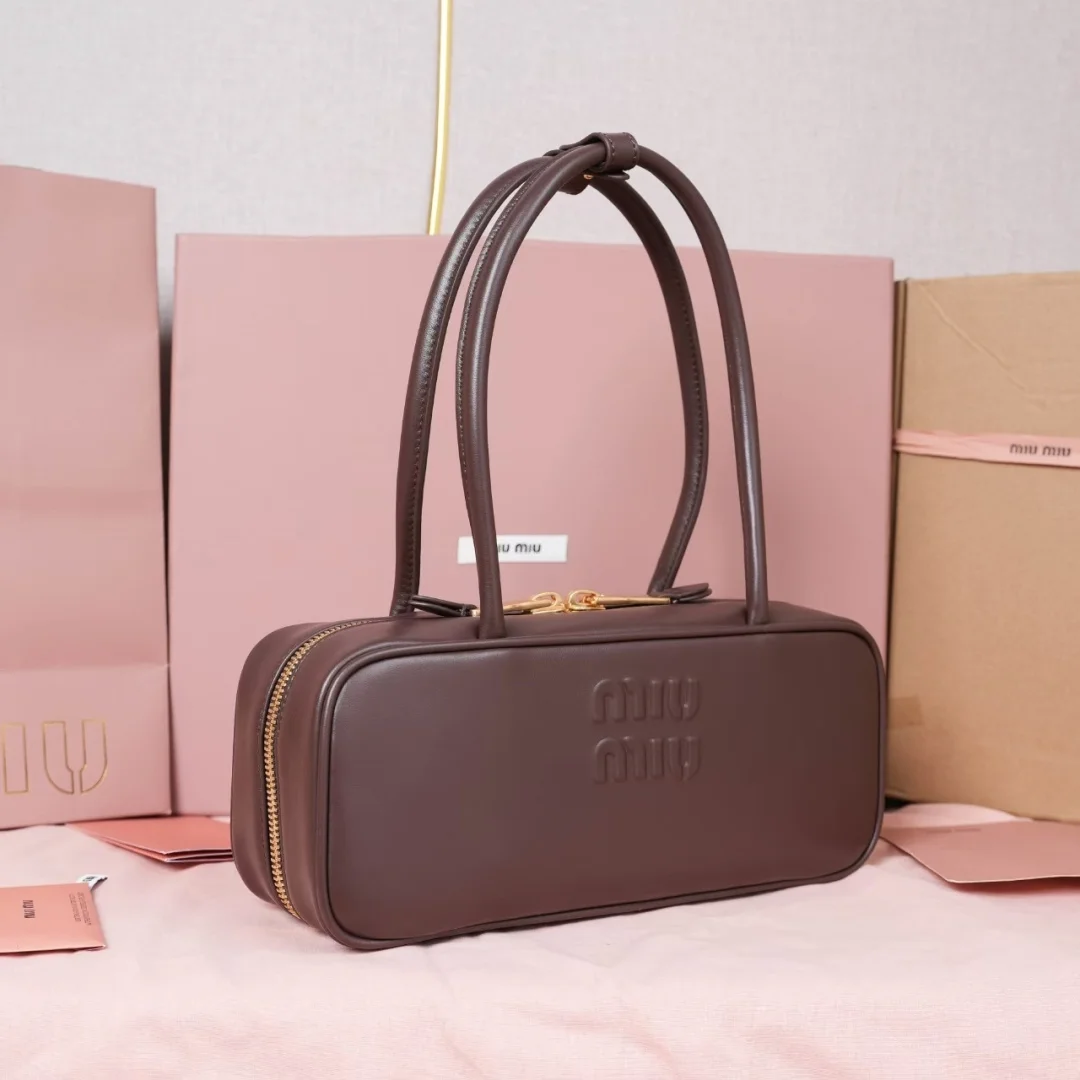 5BB173 Miu新尺寸长手柄保龄球 采用超柔软小牛皮材质 搭配别致饰品挂件 大胆创新的设计完美诠释了Miu不拘一格 潇洒随意包容的人生态度 这款包包很酷 定格精致的多功能设计 融合男装和女装素 随性慵懒 自然洒脱 充满个性 上班通勤 逛街旅游都是绝佳选择 火遍全网不是没道理的 各大时尚搏主明星都爱背它 尺寸 28X12X8cm