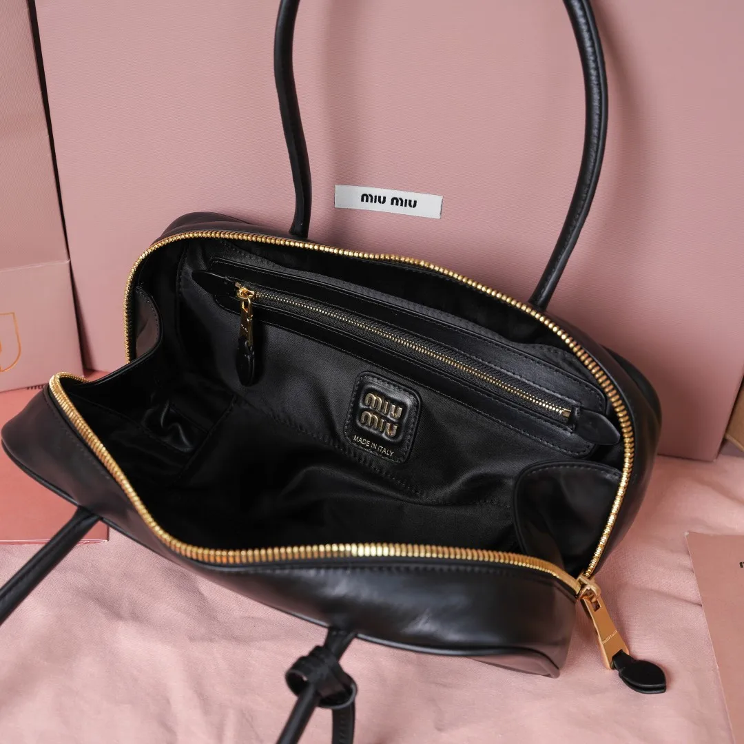 5BB173 Miu新尺寸长手柄保龄球 采用超柔软小牛皮材质 搭配别致饰品挂件 大胆创新的设计完美诠释了Miu不拘一格 潇洒随意包容的人生态度 这款包包很酷 定格精致的多功能设计 融合男装和女装素 随性慵懒 自然洒脱 充满个性 上班通勤 逛街旅游都是绝佳选择 火遍全网不是没道理的 各大时尚搏明星都爱背它 尺寸 28X12X8cm