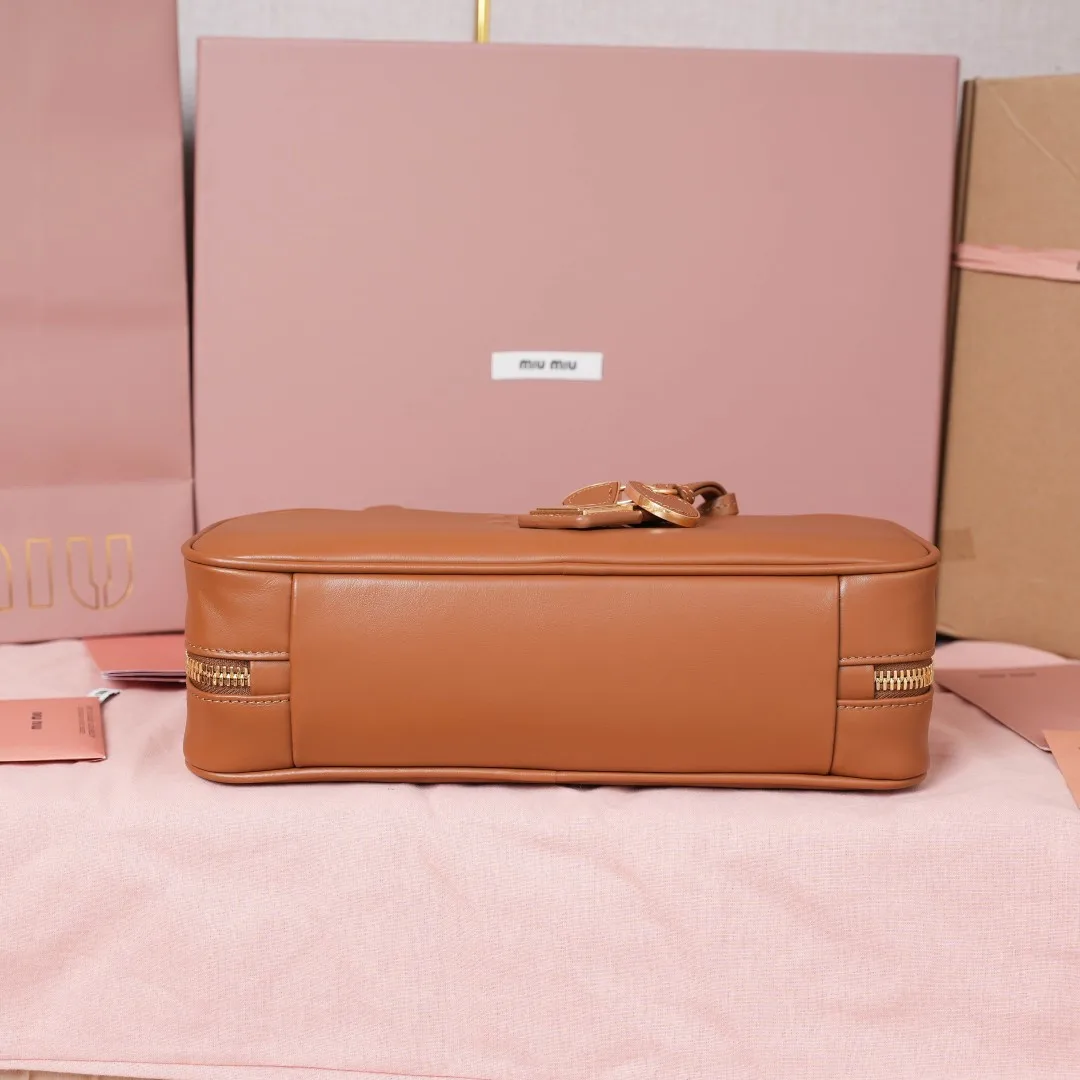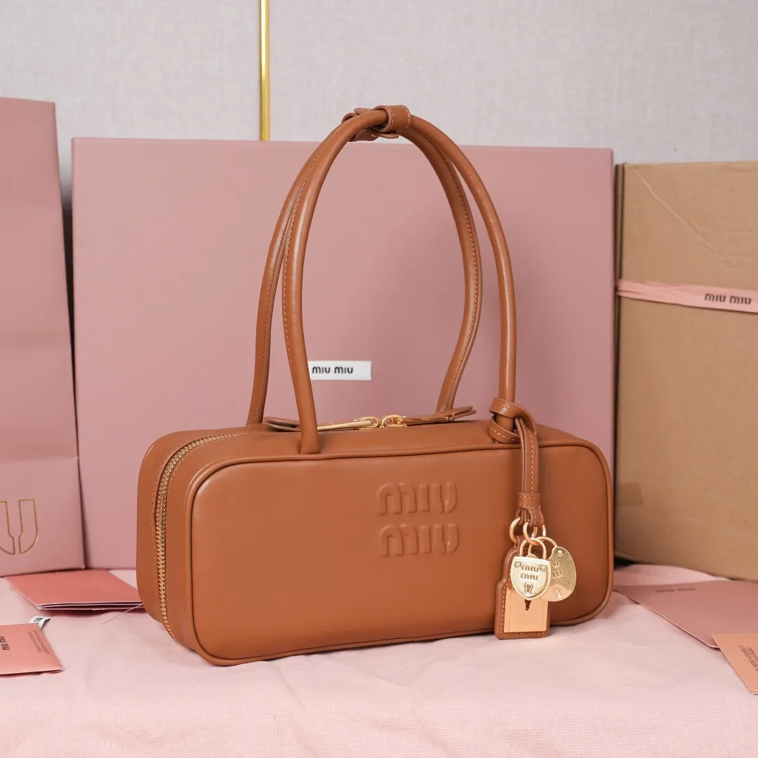 5BB173 Miu新尺寸长手柄保龄球 采用超柔软小牛皮材质 搭配别致饰品挂件 大胆创新的设计完美诠释了Miu不拘一格 潇洒随意包容的人生态度 这款包包很酷 定格精致的多功能设计 融合男装和女装素 随性慵懒 自然洒脱 充满个性 上班通勤 逛街旅游都是绝佳选择 火遍全网不是没道理的 各大时尚搏主明星都爱背它 尺寸 28X12X8cm