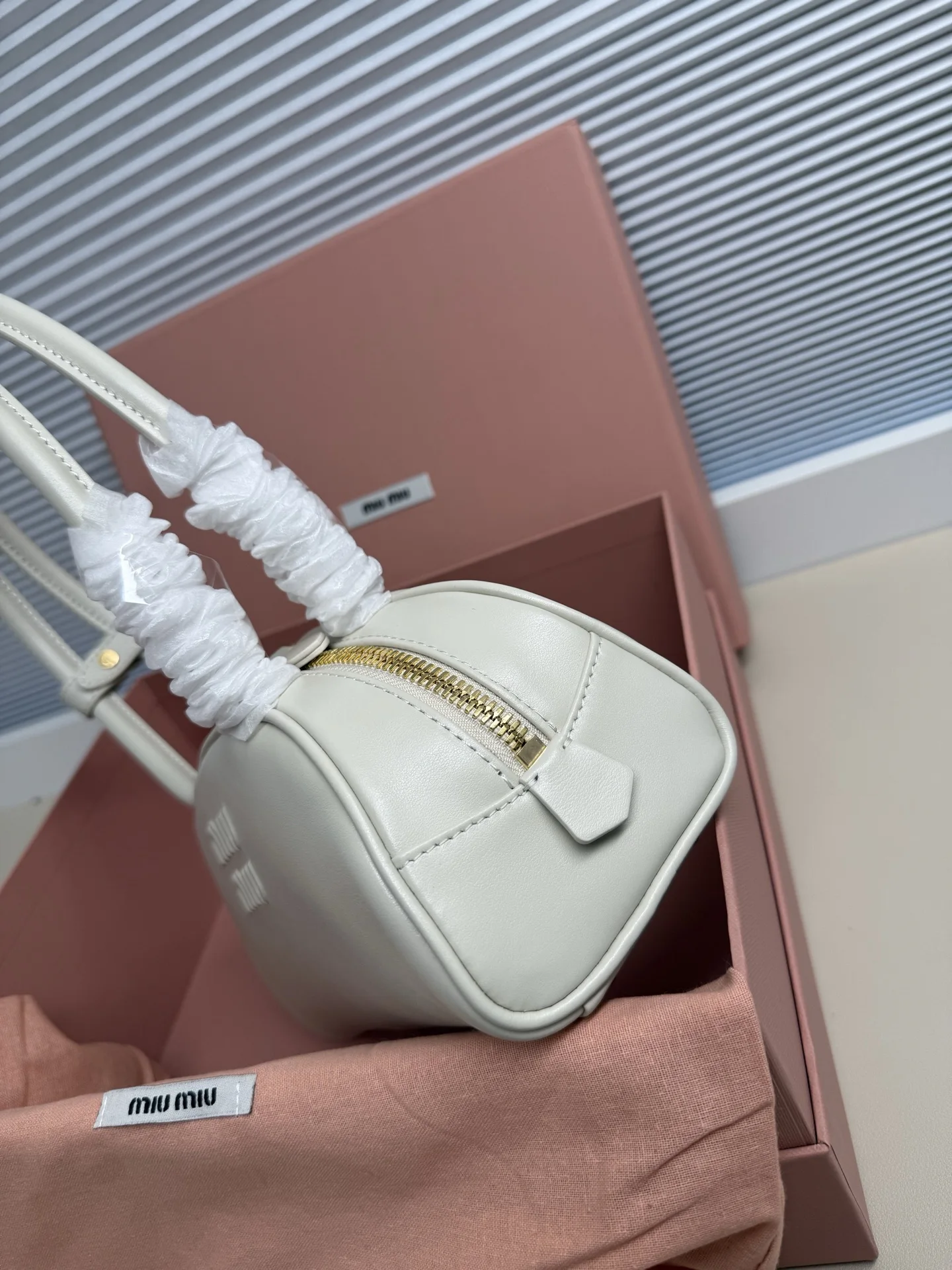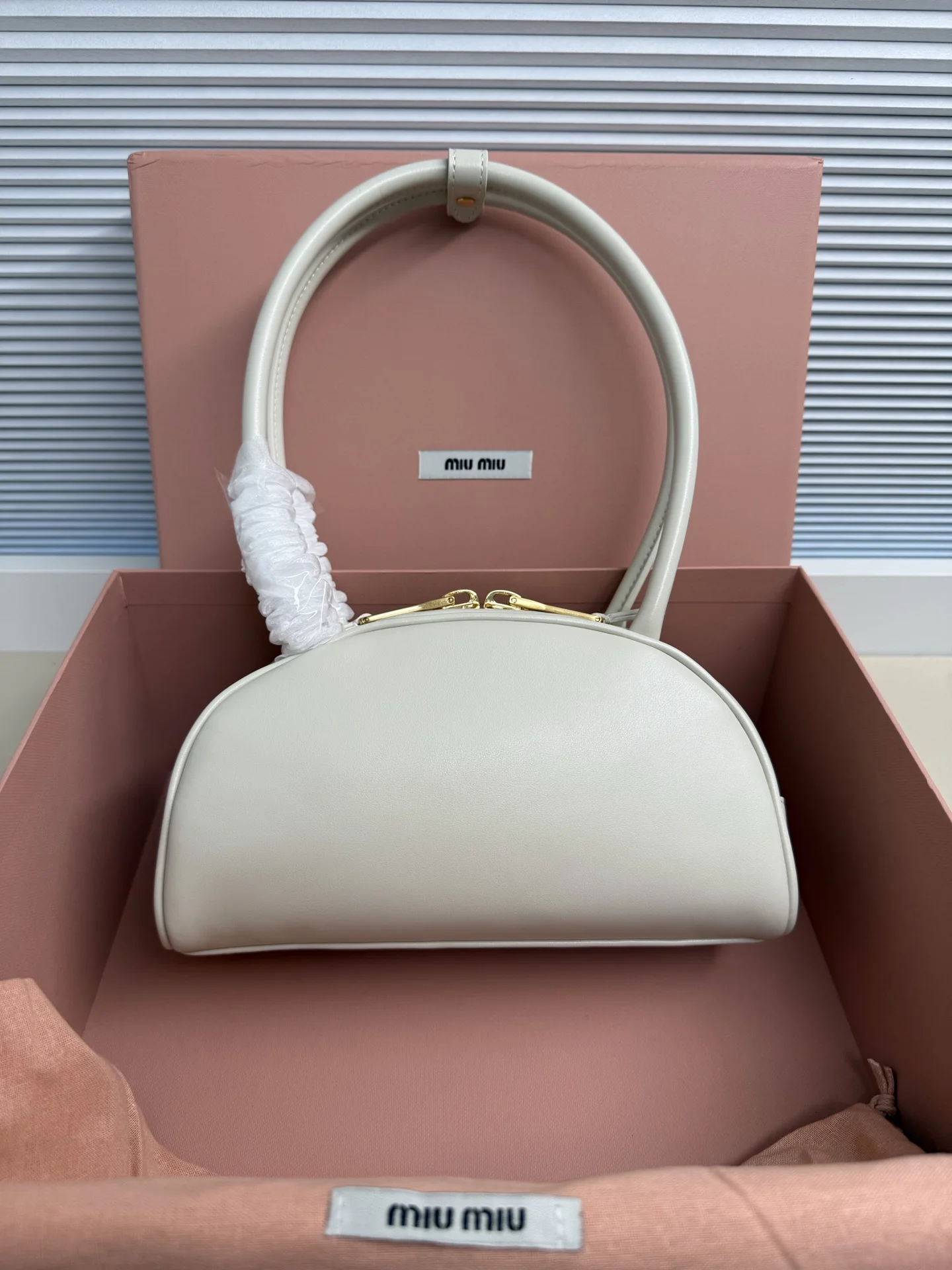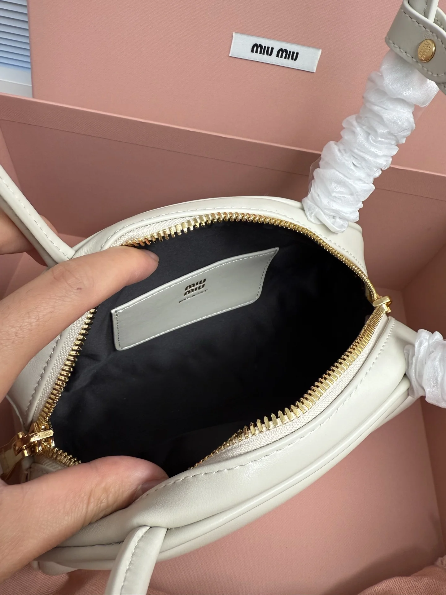 Miu家秀款饺子包 官网主推 今年绝对爆款式 采用进口小牛皮 时尚半圆设计 包身精致立体有型 风格百变 适配度很高 日常出行怎么搭都好看 正面标志性金属logo标 可拆卸可调节皮革长肩带 棉质缎面衬里拉链袋和贴袋 众多明星网红同款 小号5BB192 尺寸10x23x11,5cm