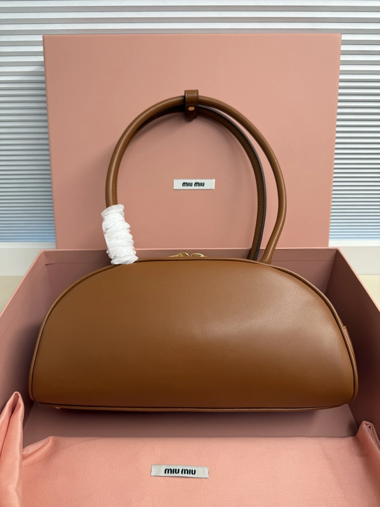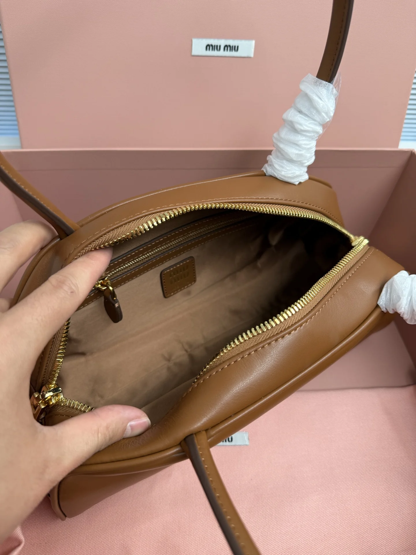 Miu家秀款饺子包 官网主推 今年绝对爆款式 采用进口小牛皮 时尚半圆设计 包身精致立体有型 风格百变 适配度很高 日常出行怎么搭都好看 正面标志性金属logo标 可拆卸可调节皮革长肩带 棉质缎面衬里拉链袋和贴袋 众多明星网红同款 大号5BB193 尺寸13,5x30x13cm