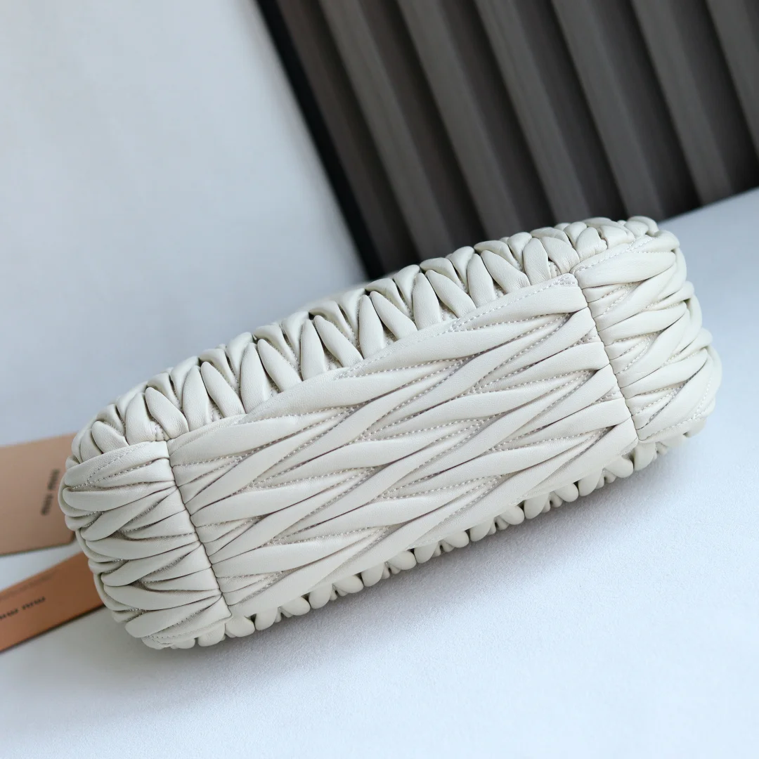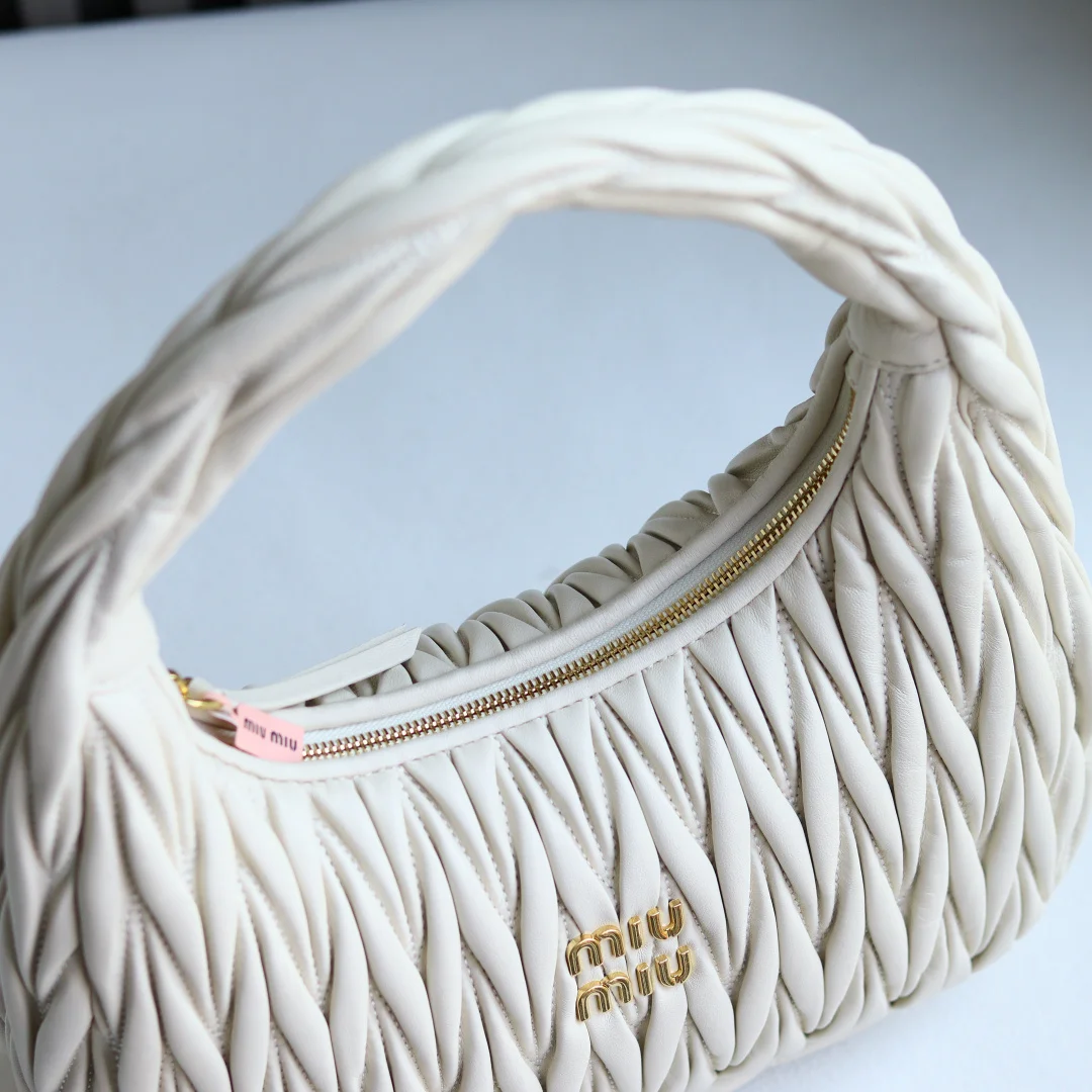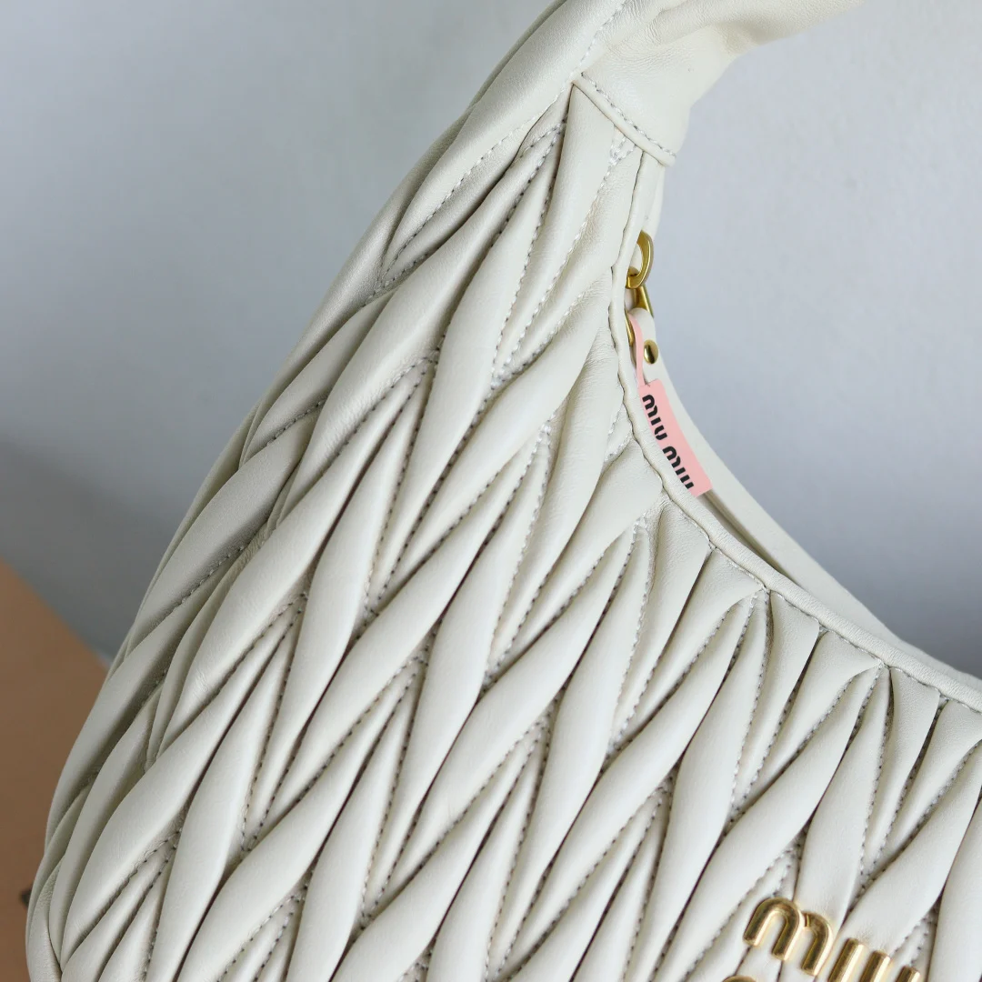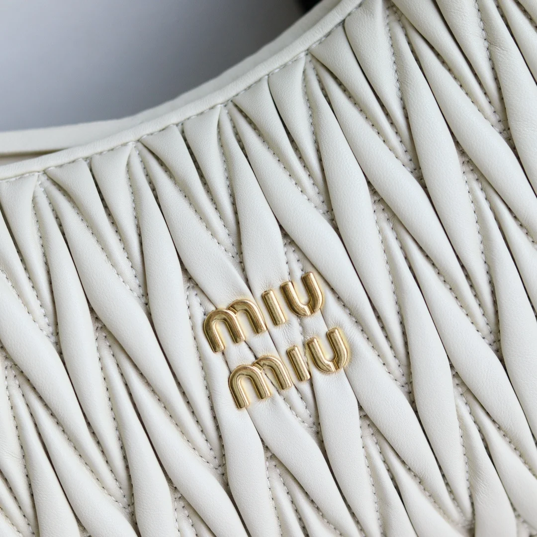 MiuMiu新品MiuWander手袋采用进口小羊皮经典品牌标志性Matelasse纹理绣花 复古磨砂五金 利用圆孤的曲线 保留了应有的俏皮感 包型整体硬挺有型 充满个性 可甜可盐 容量可光 各大时尚搏主几乎人手一个 尺寸 29 X 24 X 10 型号 5BC108 配原版包装