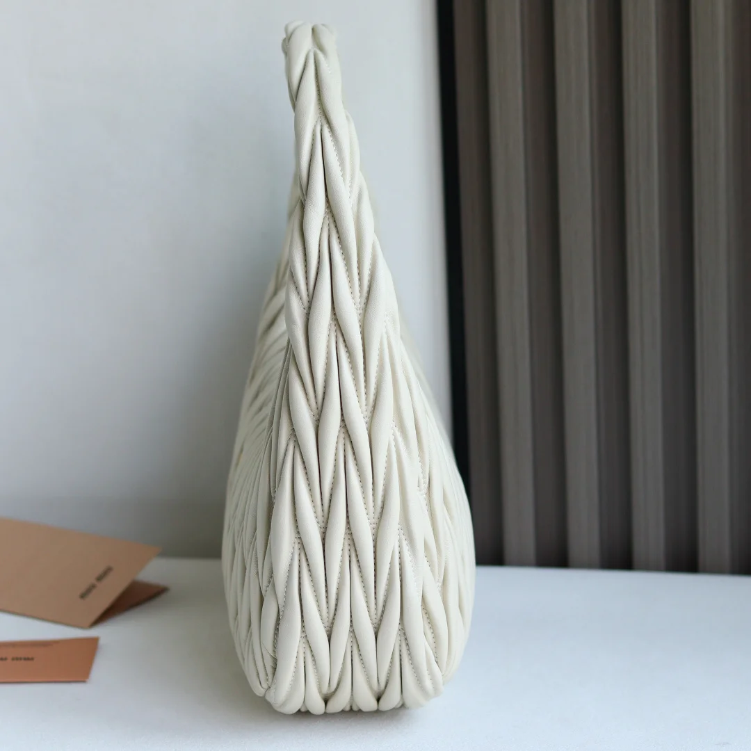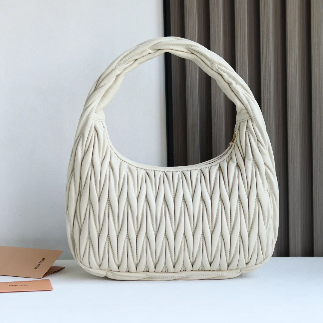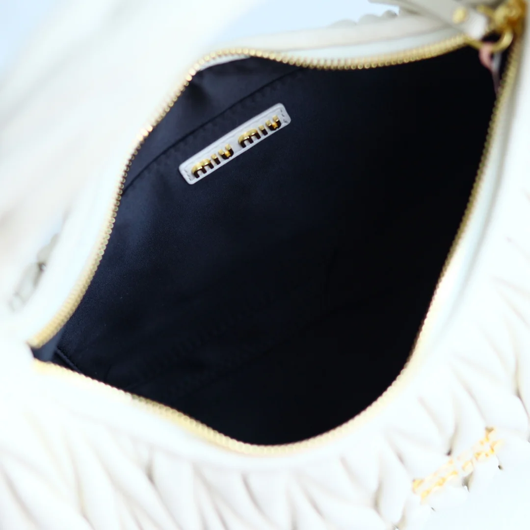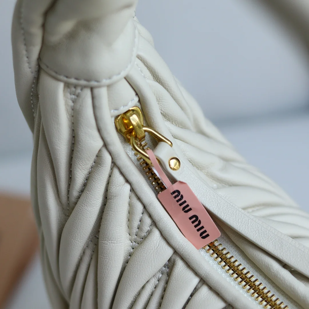 MiuMiu新品MiuWander手袋采用进口小羊皮经典品牌标志性Matelasse纹理绣花 复古磨砂五金 利用圆孤的曲线 保留了应有的俏皮感 包型整体硬挺有型 充满个性 可甜可盐 容量可光 各大时尚搏主几乎人手一个 尺寸 29 X 24 X 10 型号 5BC108 配原版包装