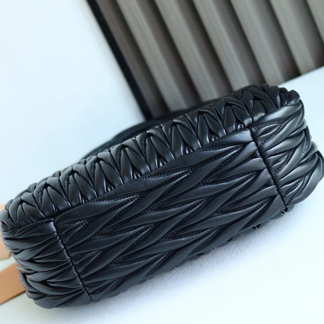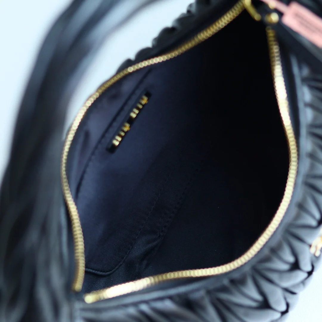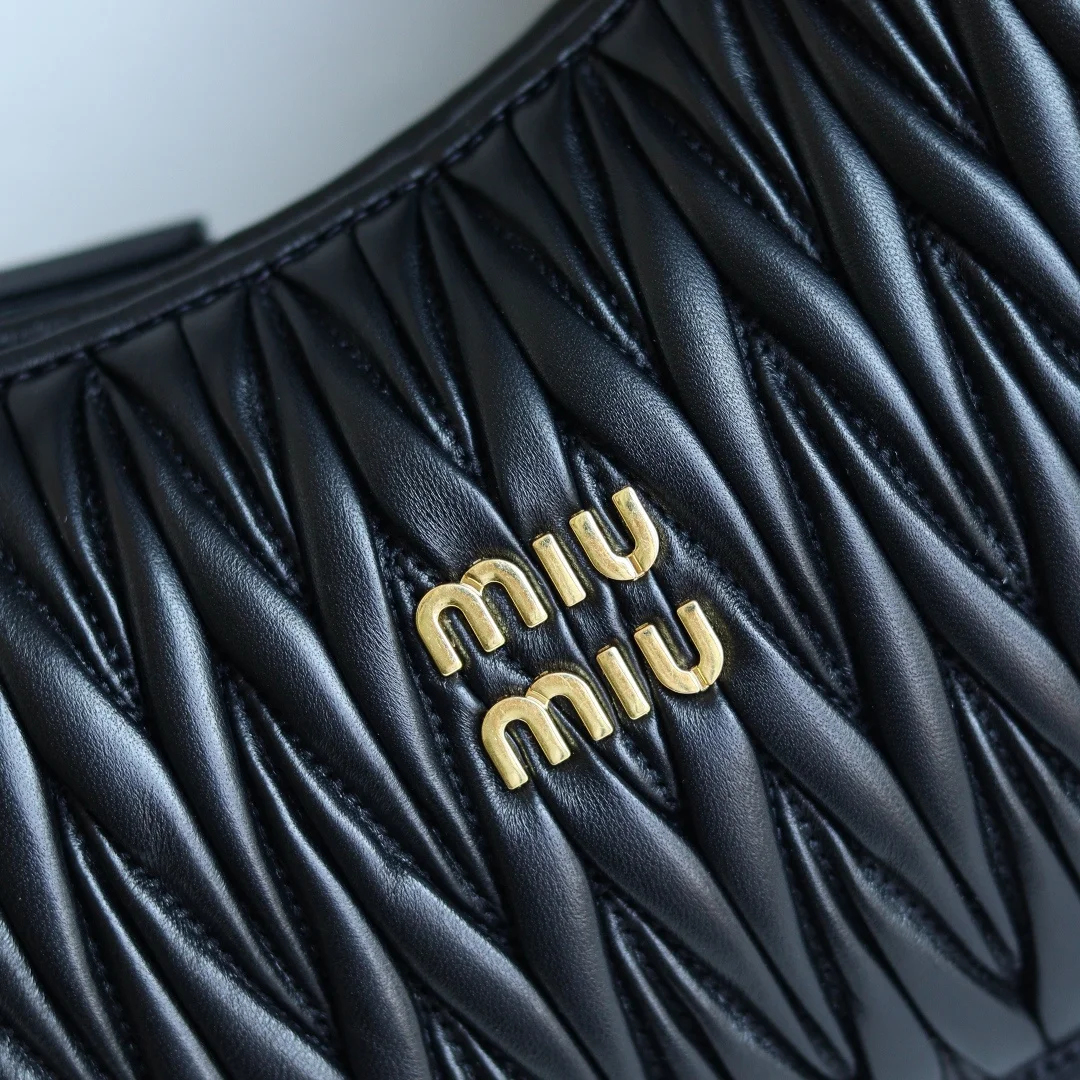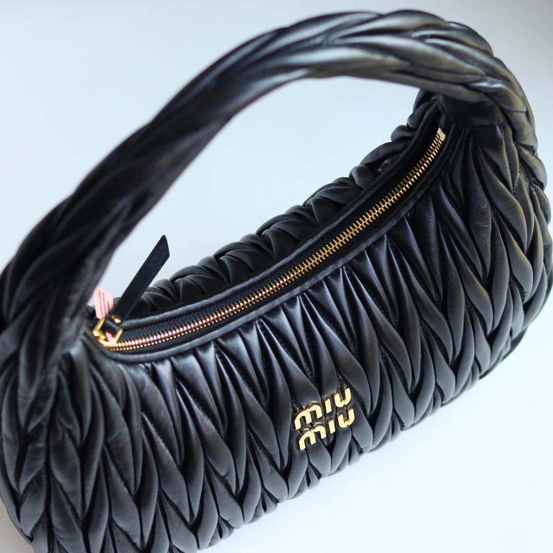 MiuMiu新品MiuWander手袋采用进口小羊皮经典品牌标志性Matelasse纹理绣花 复古磨砂五金 利用圆孤的曲线 保留了应有的俏皮感 包型整体硬挺有型 充满个性 可甜可盐 容量可光 各大时尚搏主几乎人手一个 尺寸 29 X 24 X 10 型号 5BC108 配原版包装