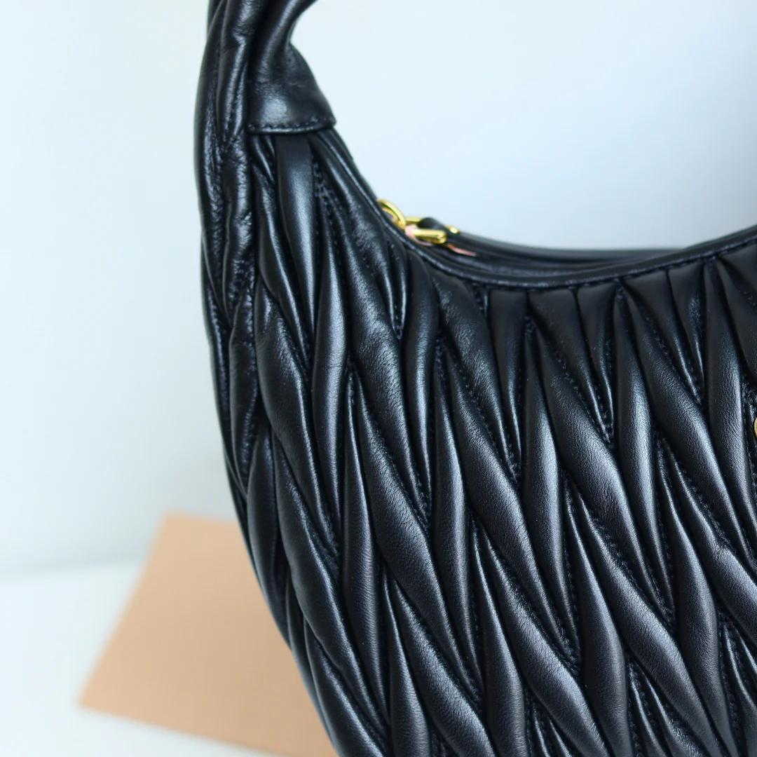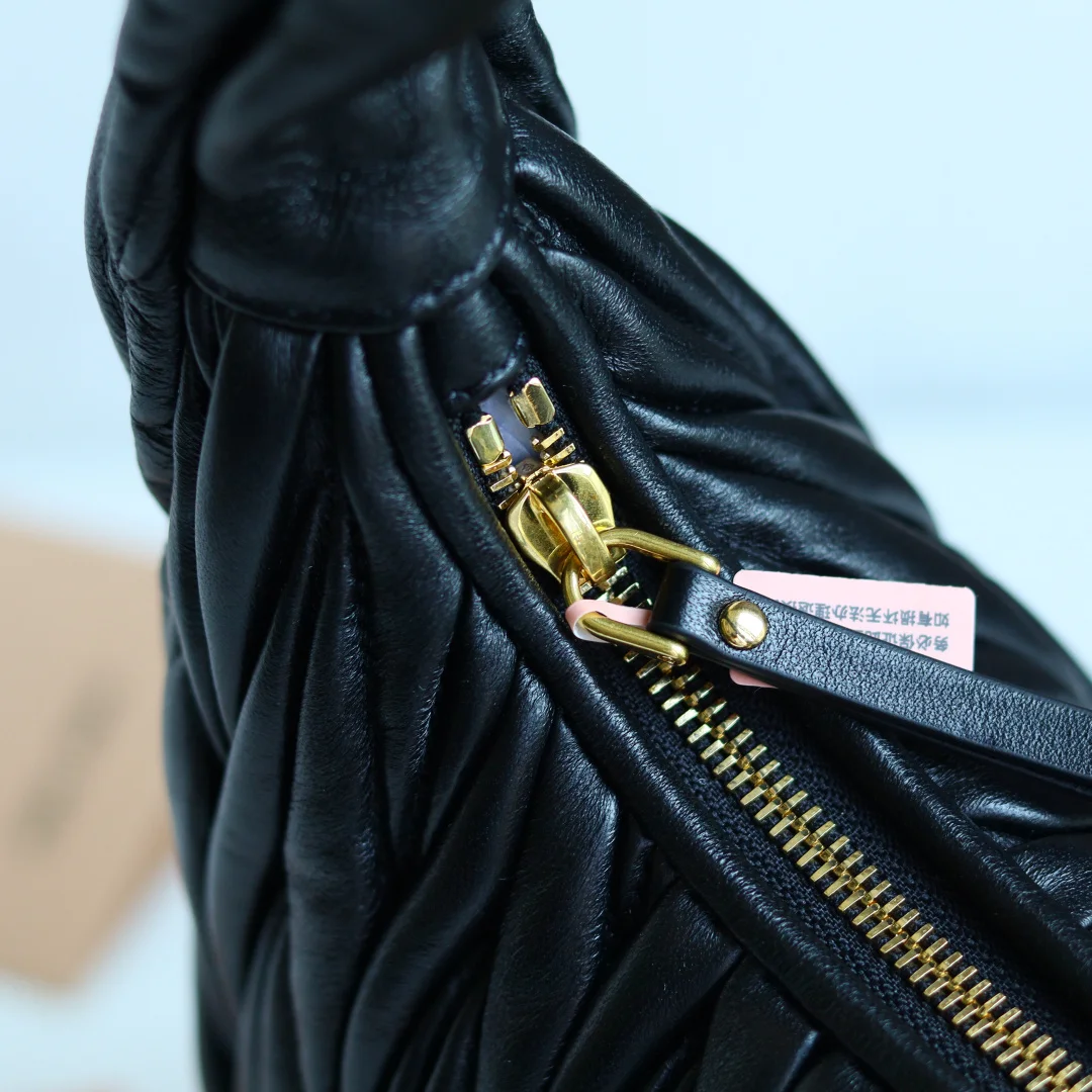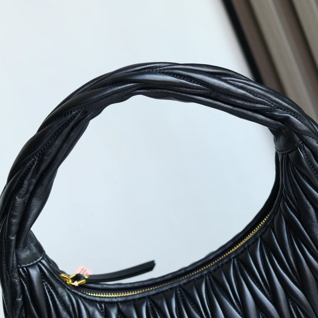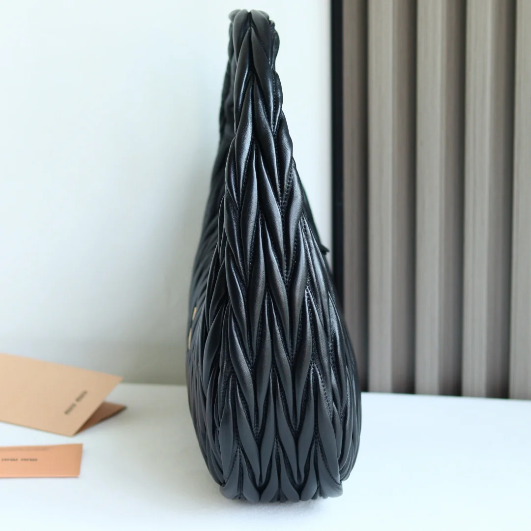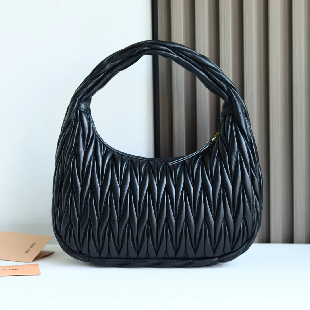 MiuMiu新品MiuWander手袋采用进口小羊皮经典品牌标志性Matelasse纹理绣花 复古磨砂五金 利用圆孤的曲线 保留了应有的俏皮感 包型整体硬挺有型 充满个性 可甜可盐 容量可光 各大时尚搏主几乎人手一个 尺寸 29 X 24 X 10 型号 5BC108 配原版包装