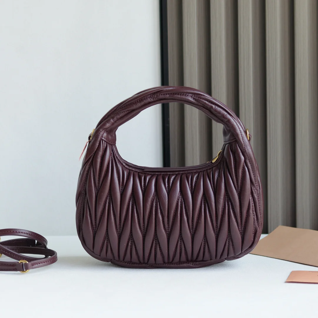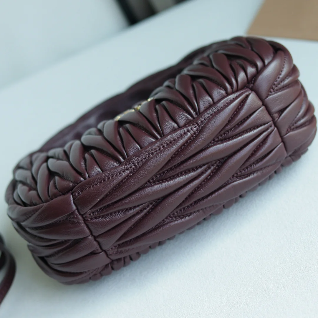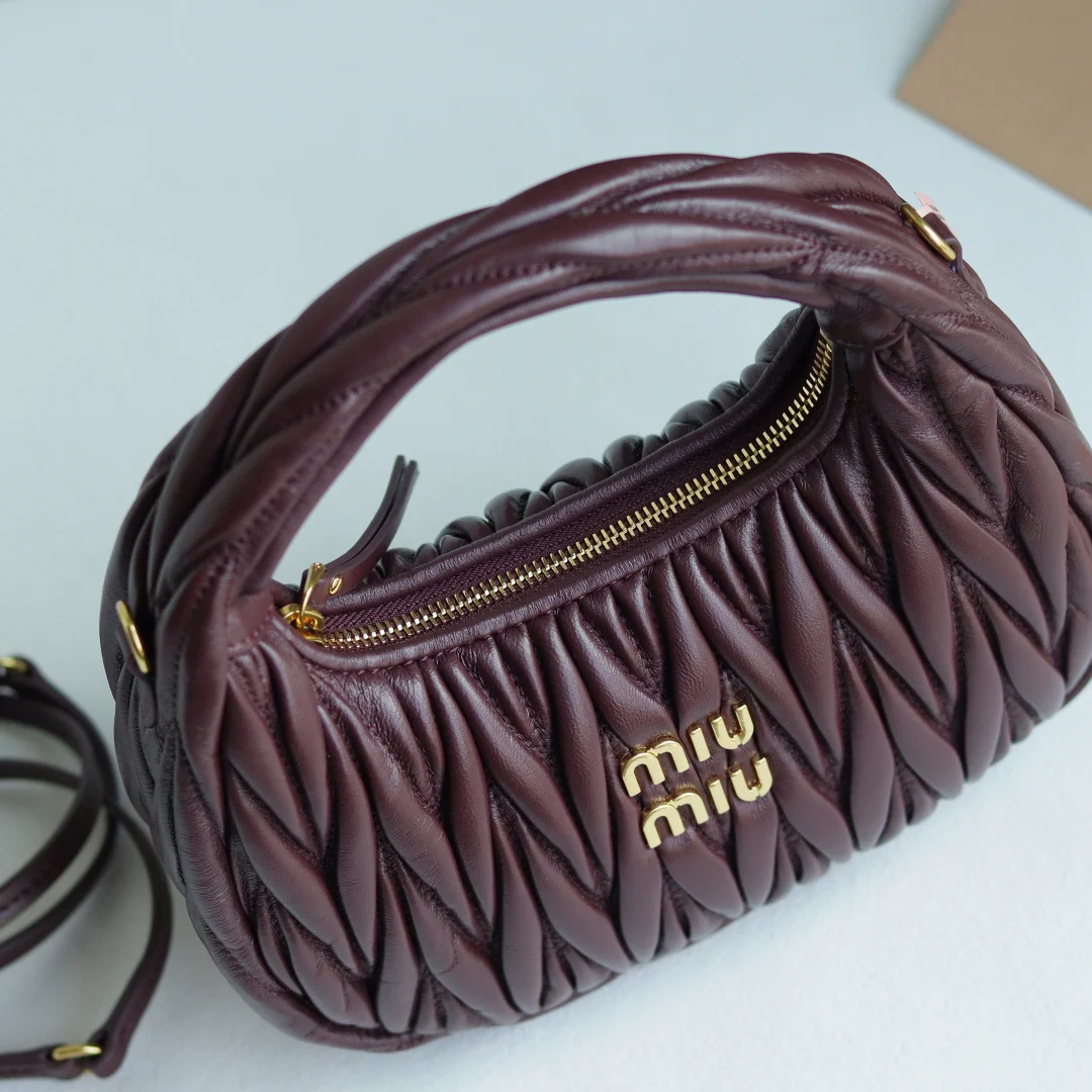 M家 型号 5BC125 MiuWander手袋采用进口小羊皮经典品牌标志性Matelasse纹理绣花 复古磨砂五金 利用圆孤的曲线 保留了应有的俏皮感 包型整体硬挺有型 充满个性 可甜可盐 容量可光 各大时尚搏主几乎人手一个 颜色多多等 尺寸 23X13X7 配原版包装