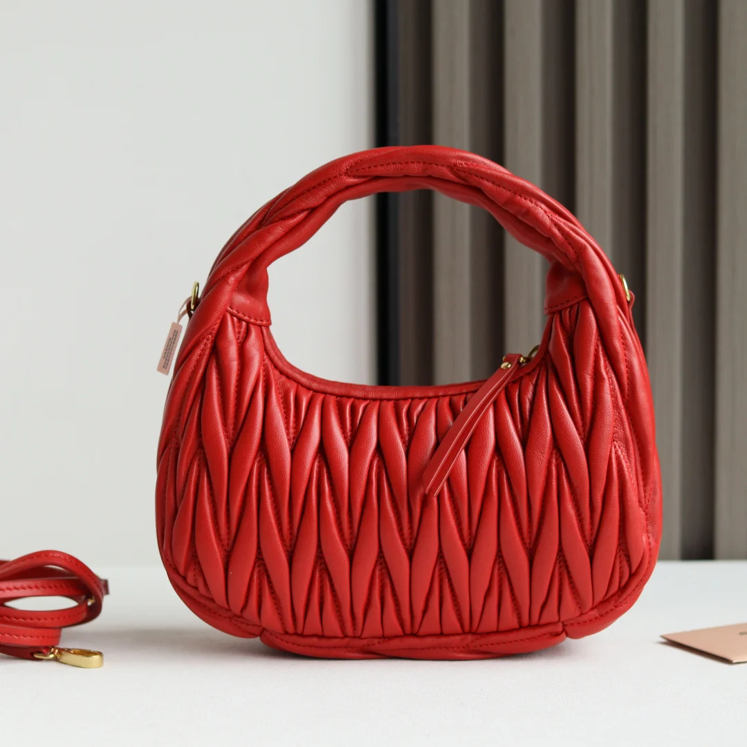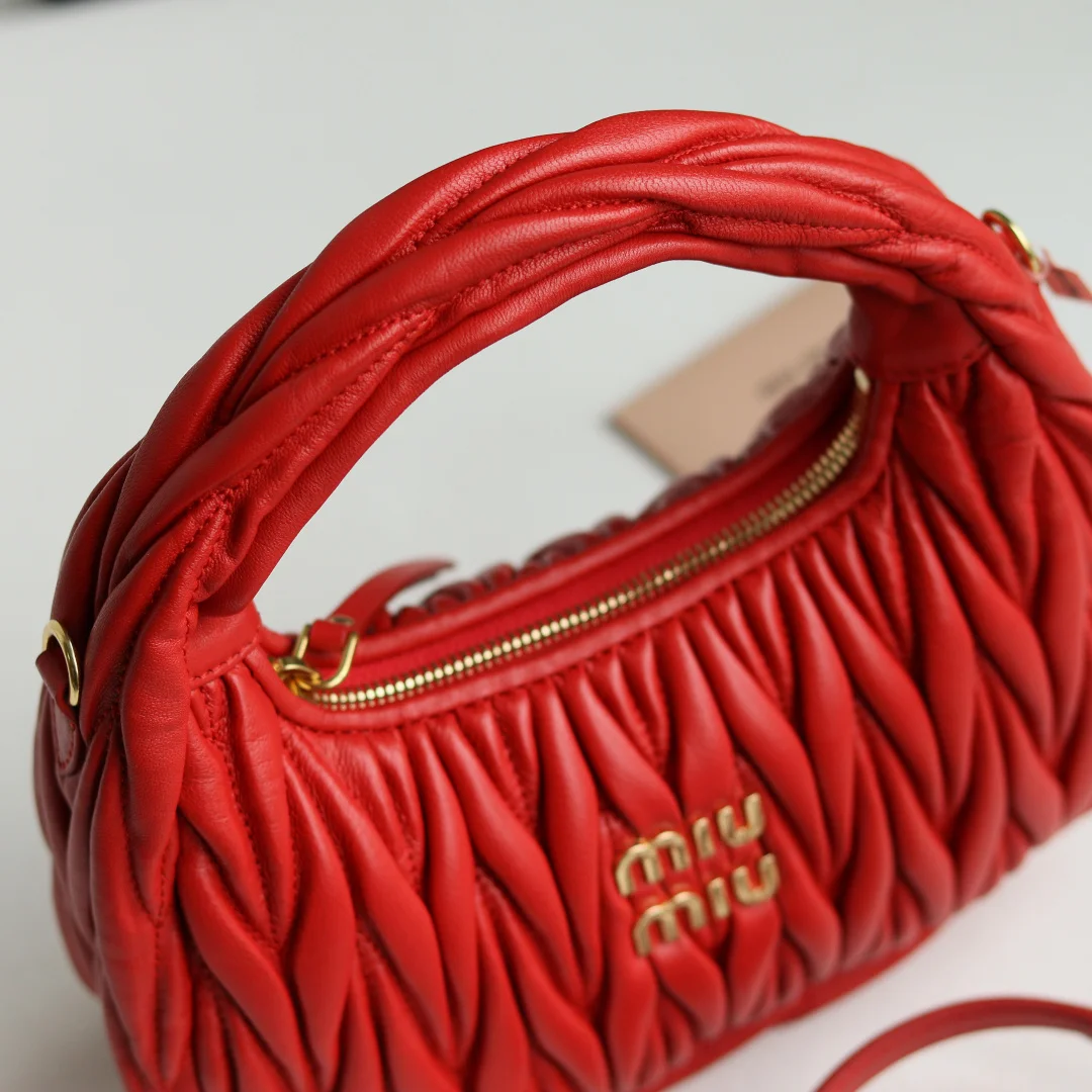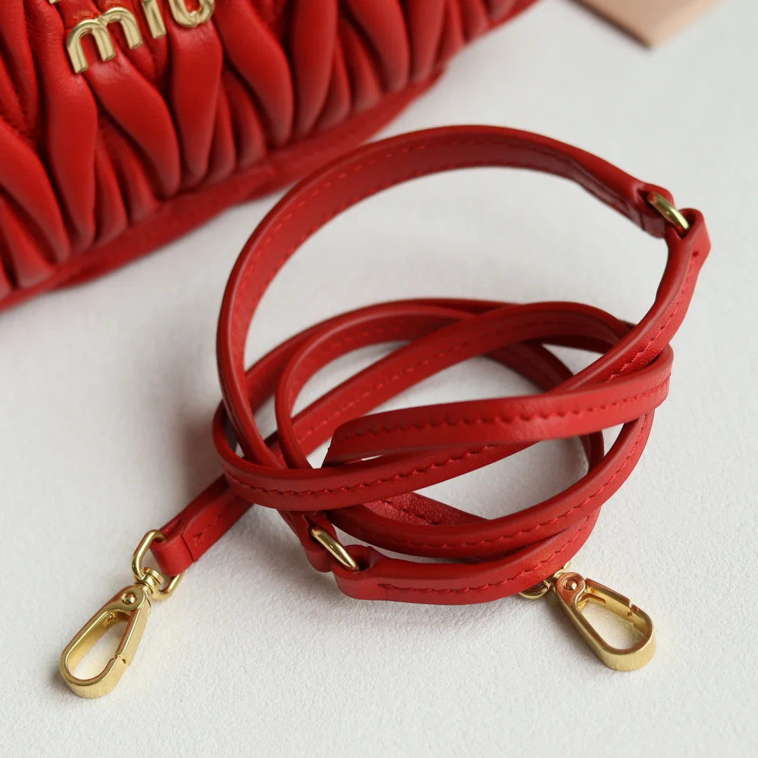 M家 型号 5BC125 MiuWander手袋采用进口小羊皮经典品牌标志性Matelasse纹理绣花 复古磨砂五金 利用圆孤的曲线 保留了应有的俏皮感 包型整体硬挺有型 充满个性 可甜可盐 容量可光 各大时尚搏主几乎人手一个 颜色多多等 尺寸 23X13X7 配原版包装