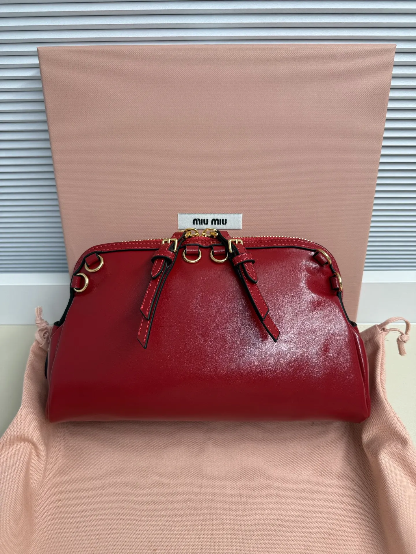 5BF131 Miu新品特色款式贝壳双肩包 精致细腻光泽小牛皮 简约线条结合时装秀的灵感和现代女性气质 在风格实验和精致多样性之间取得了平衡 手袋有多种佩戴方式 单肩 手拿 斜挎 双肩 呈现百搭复古风格 延续 miu不拘一格 大胆创新 慵懒不鞍却又自然洒脱的风格 个性鲜明 能驾驭各种风格 上班通勤外出逛街都是绝佳选择