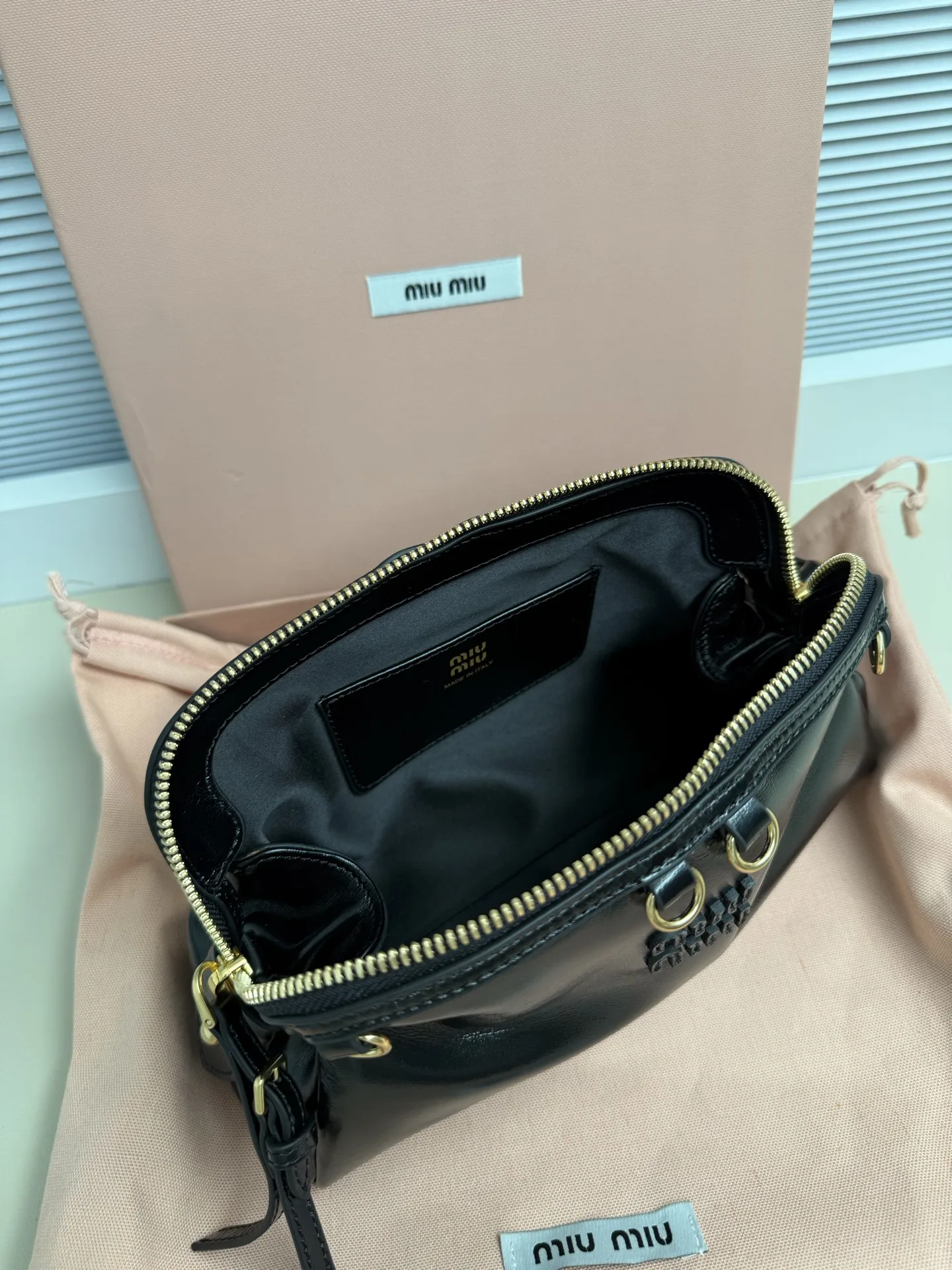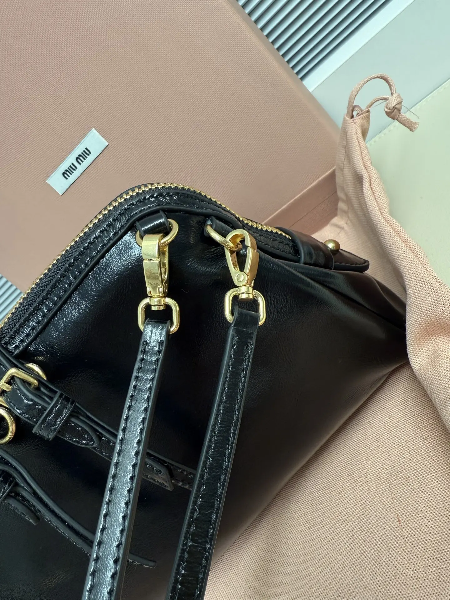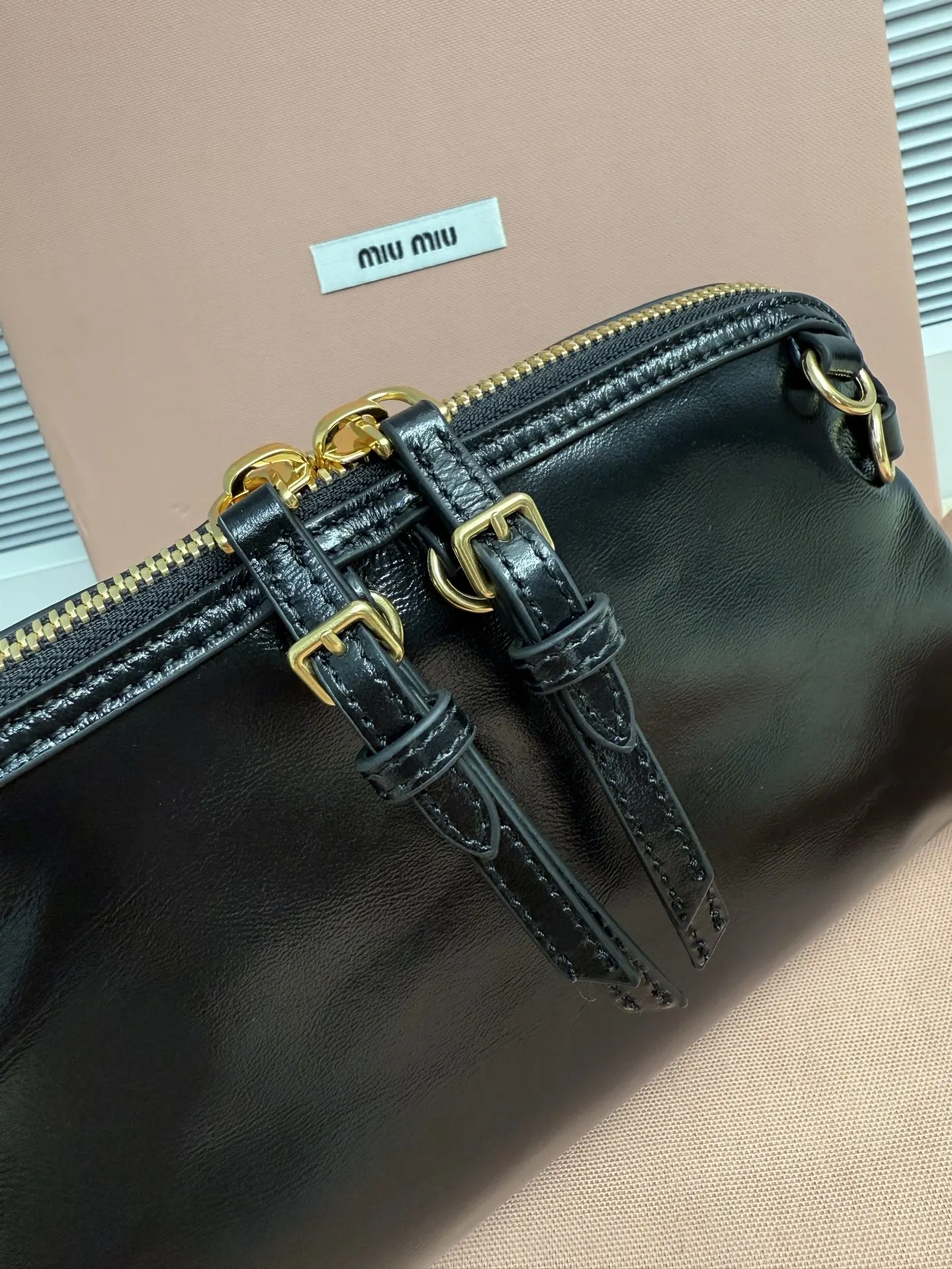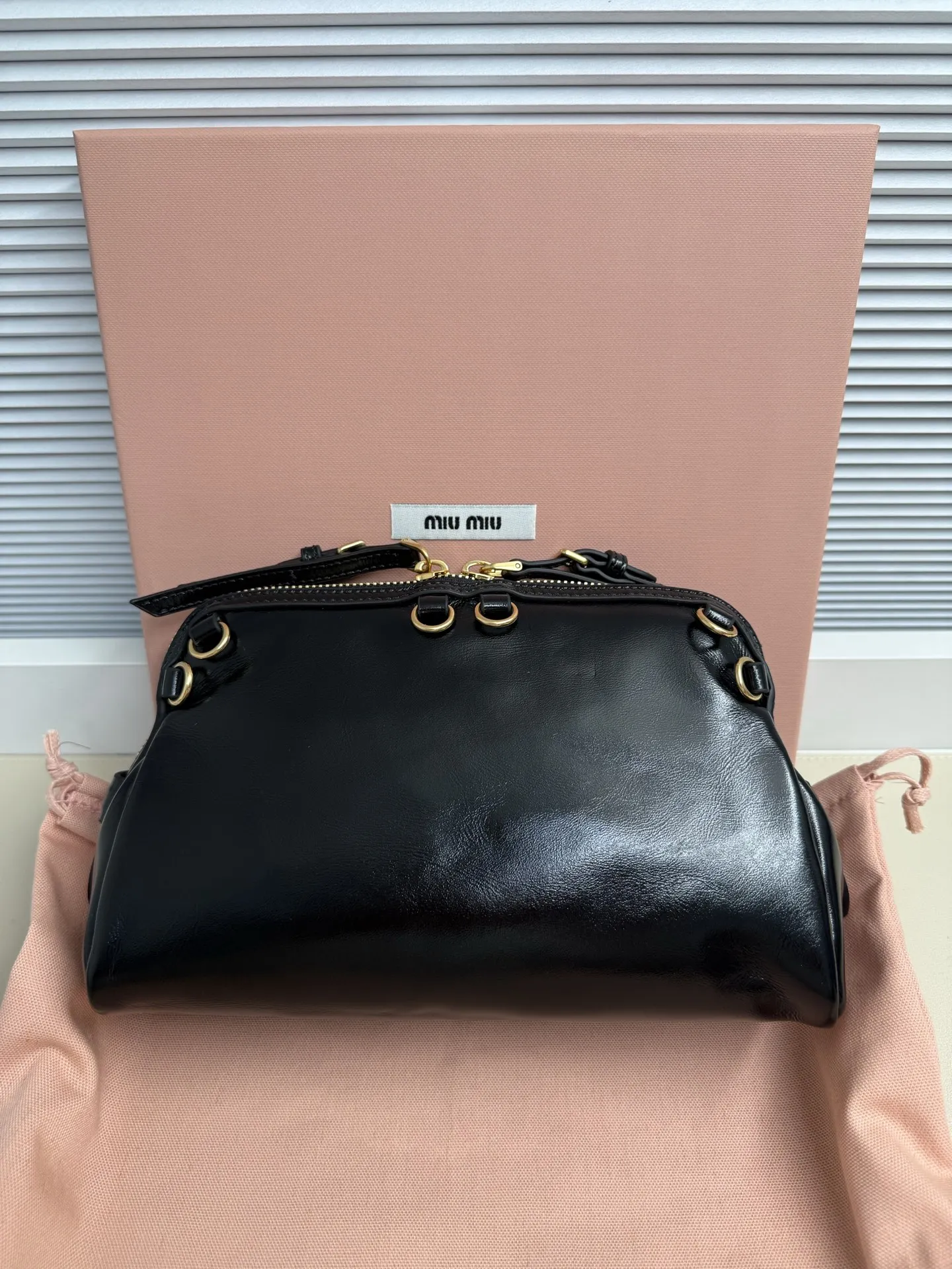 5BF131 Miu新品特色款式贝壳双肩包 精致细腻光泽小牛皮 简约线条结合时装秀的灵感和现代女性气质 在风格实验和精致多样性之间取得了平衡 手袋有多种佩戴方式 单肩 手拿 斜挎 双肩 呈现百搭复古风格 延续 miu不拘一格 大胆创新 慵懒不鞍却又自然洒脱的风格 个性鲜明 能驾驭各种风格 上班通勤外出逛街都是绝佳选择