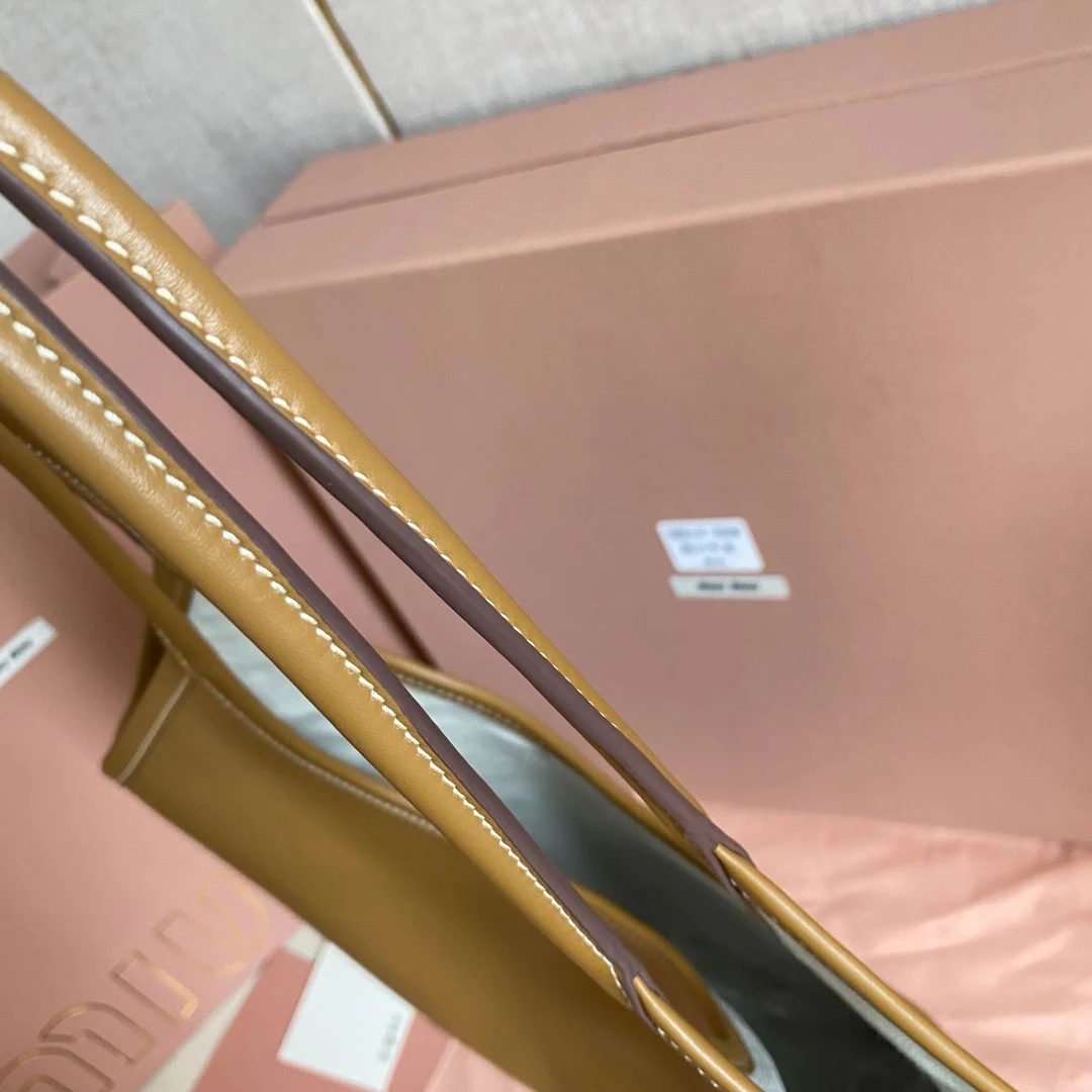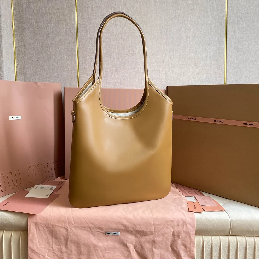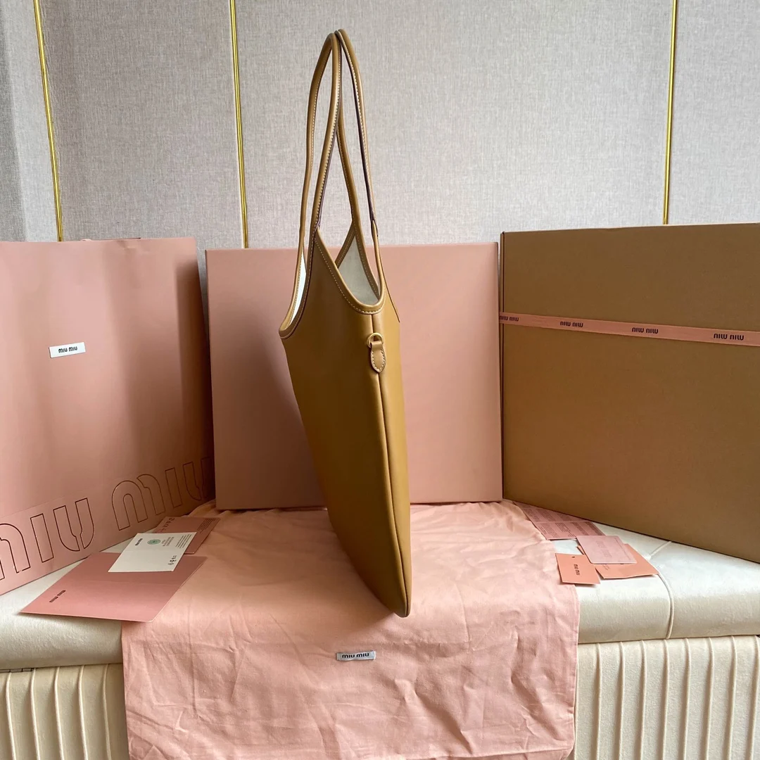 5BG231 Miu家新款伊势丹限定托特包 官网主推 今年绝对式 顶级进口小牛皮 皮面细腻光滑柔软 质感高级 包身软而不塌 气质随性慵懒 容量超大 日常出街背它回头率百分百 手工缝制皮面Logo标志 内里全新麻布里 配拉链式口袋 尺寸35 X 40Cm